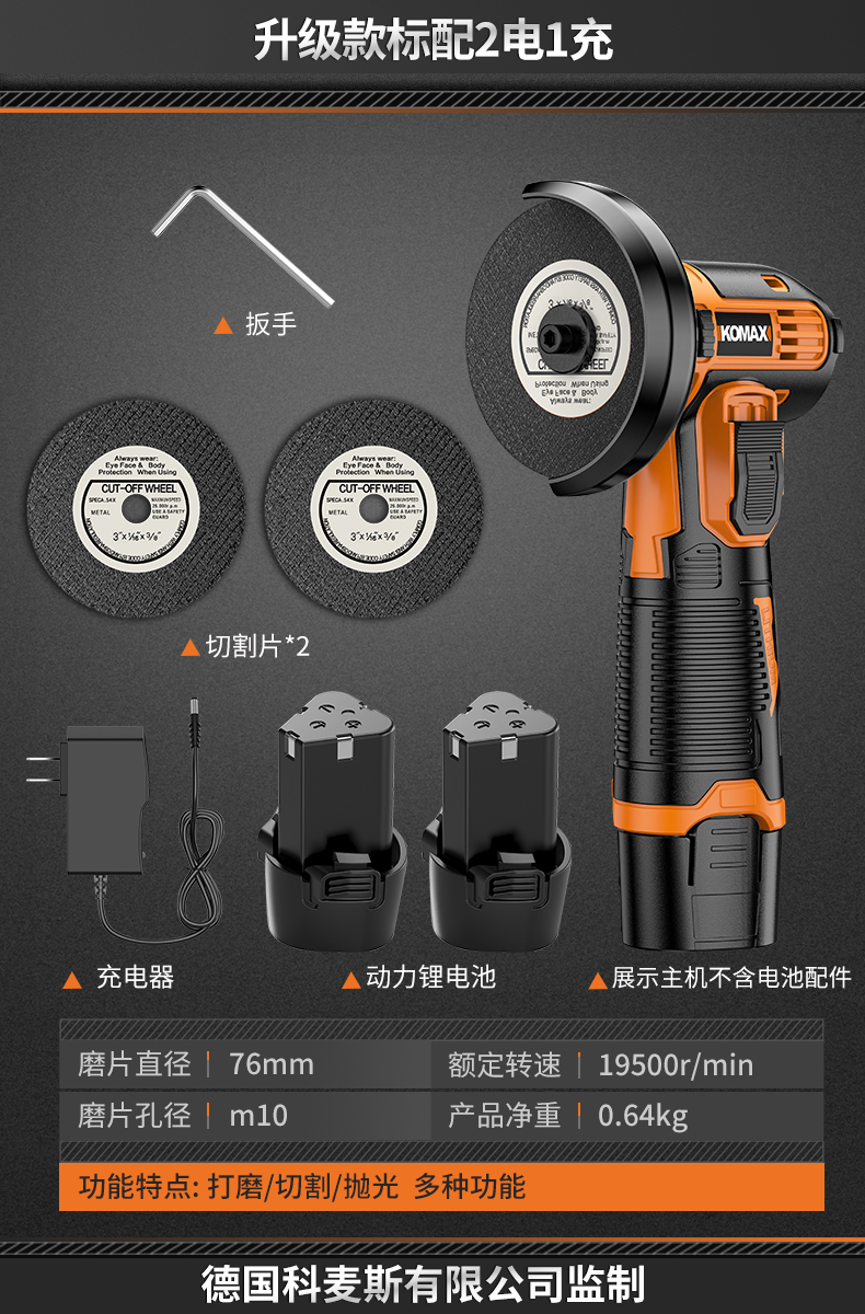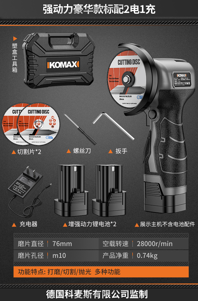• 6단 속도 조절, 배터리 2개, 충전 1개 + 커팅 디스크 2개 + 그라인딩 휠 디스크 2개 + 고급 구성