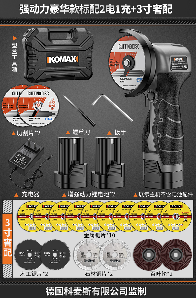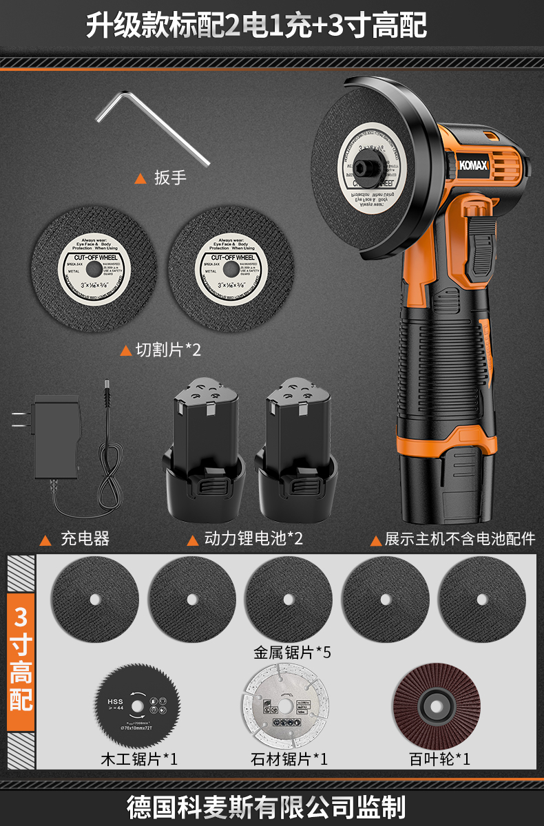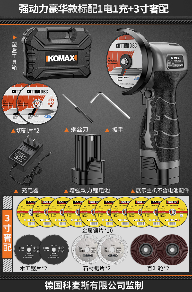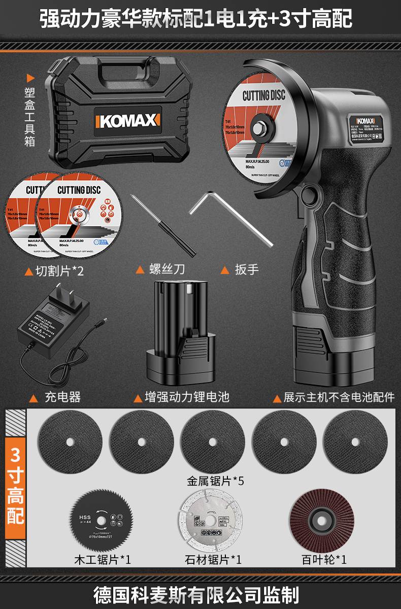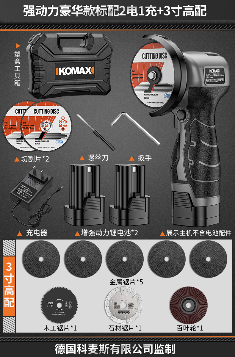 • 강력한 파워 럭셔리 모델에는 배터리 1개, 충전 1개 + 고급 구성 3inch 가 기본으로 제공됩니다.