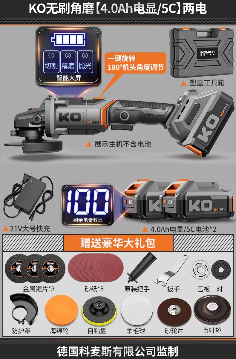 • KO 브러시리스 앵글 그라인더 [4.0Ah 전자 디스플레이/5C] 배터리 2개