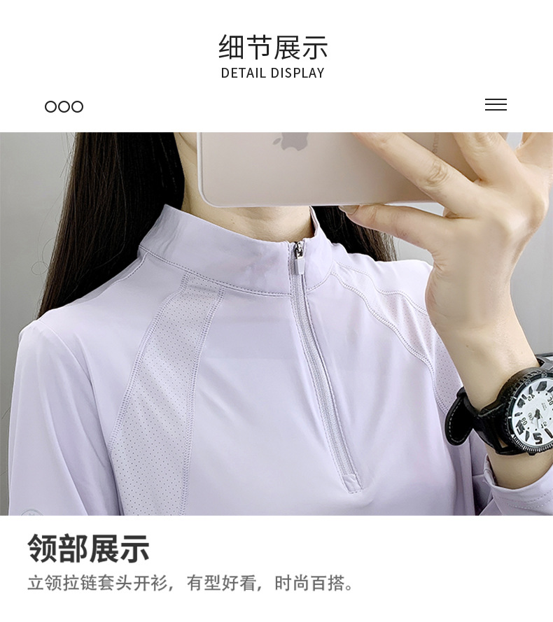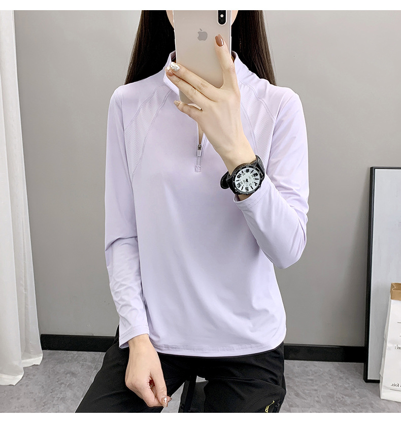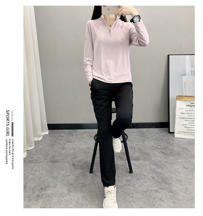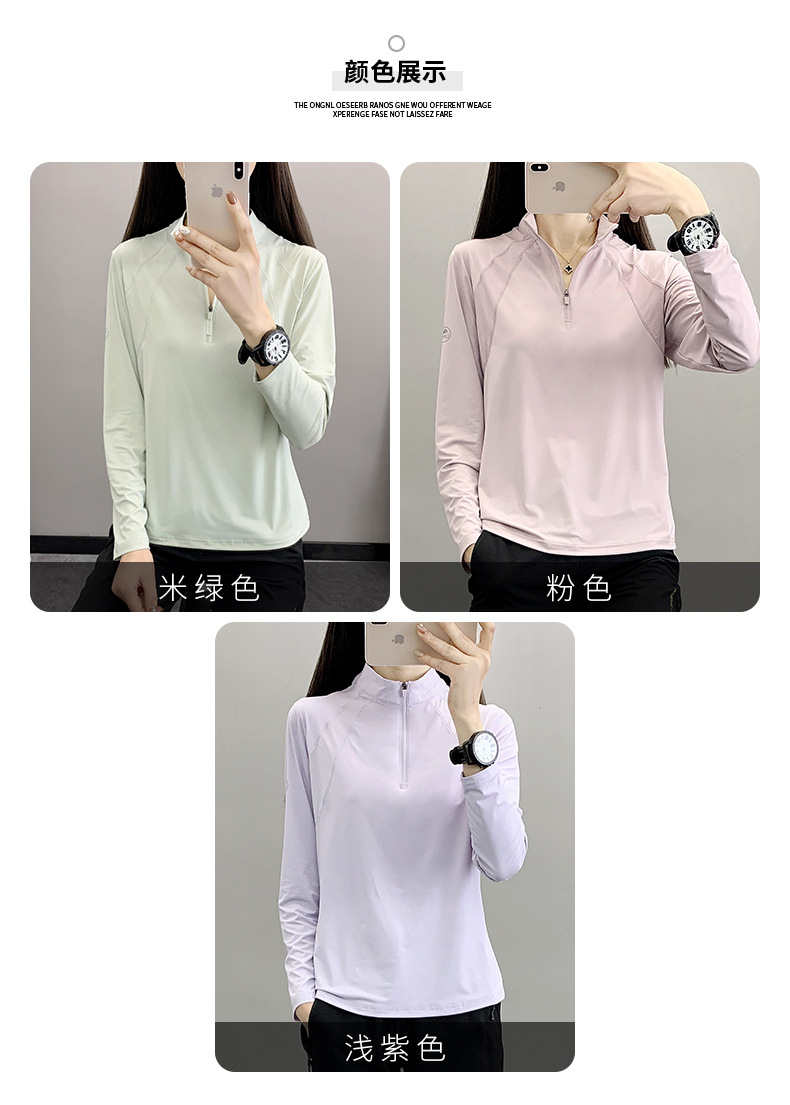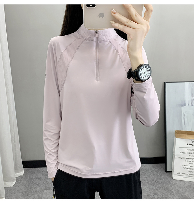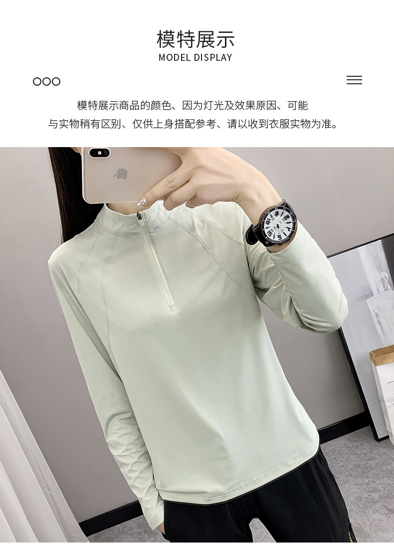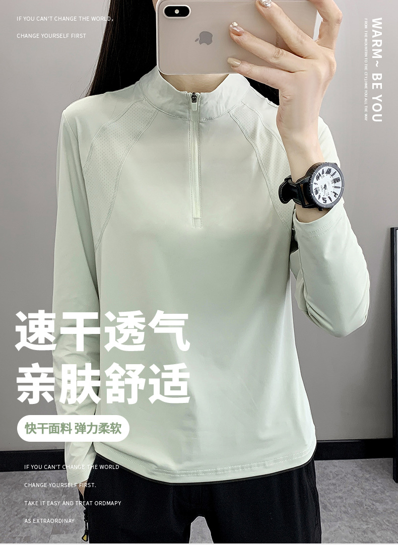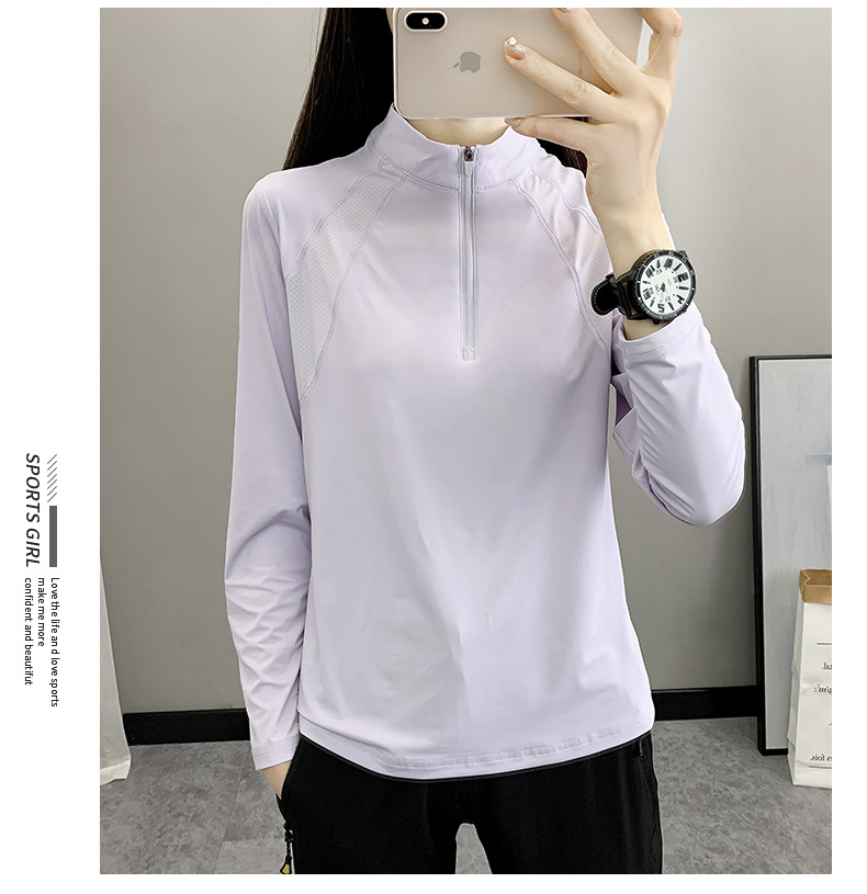야외 스포츠 빠른 건조 티셔츠 봄과 가을 여름 빛 탄성 스포츠 통기성 여성 긴팔 선 스크린 수직 칼라가있는 빠른 건조 탑스토어 가기