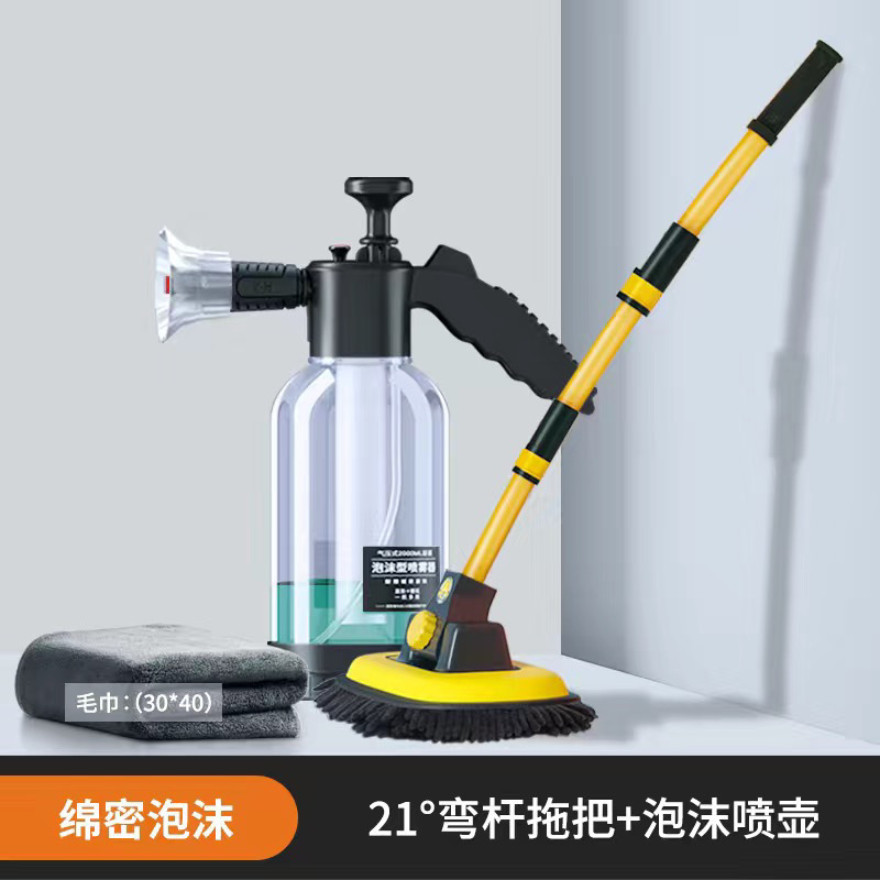 • 검정색과 노란색 걸레 + 세차액 + 수건 + 스펀지