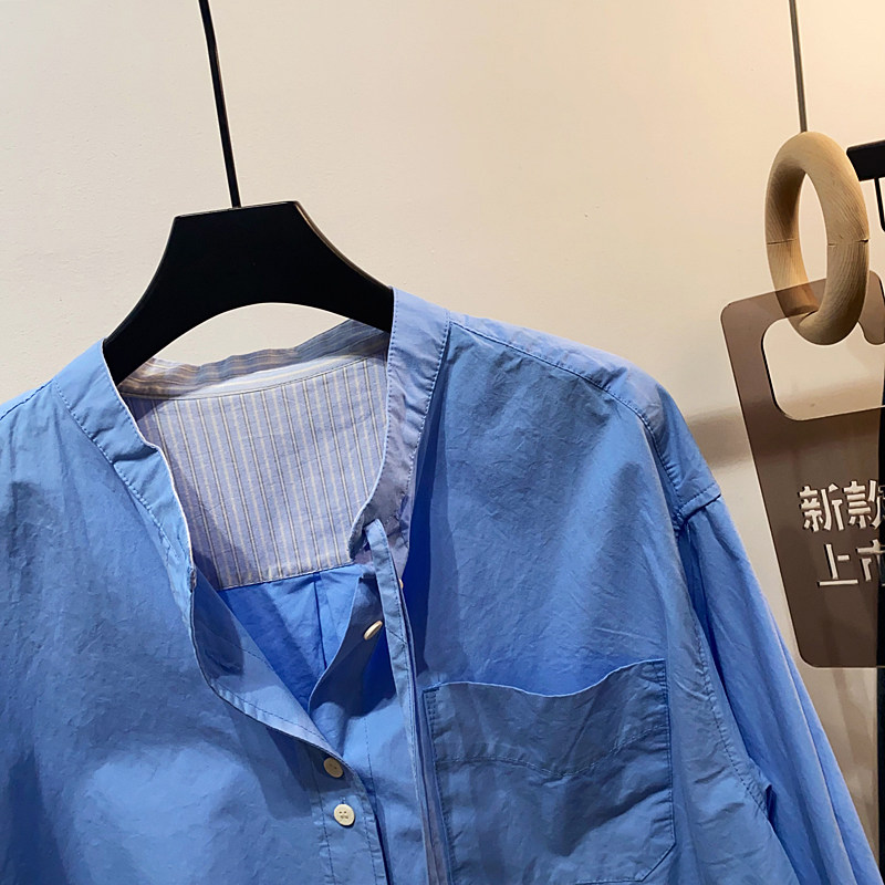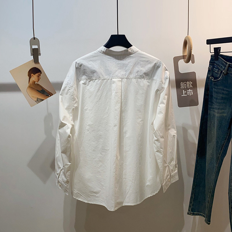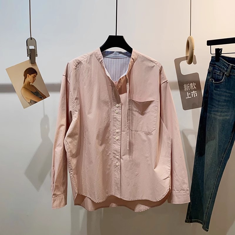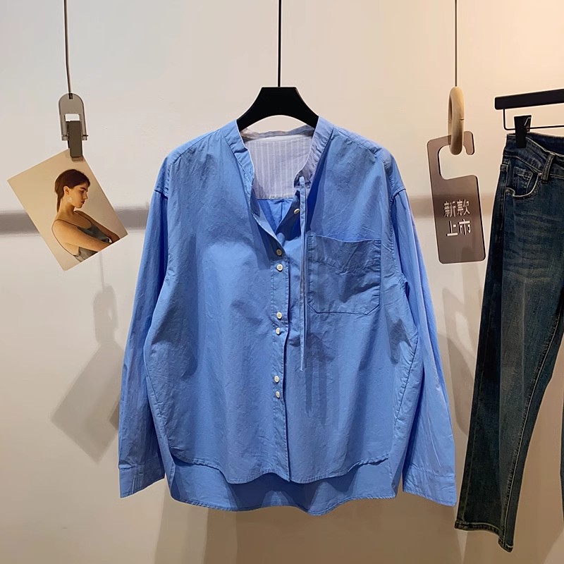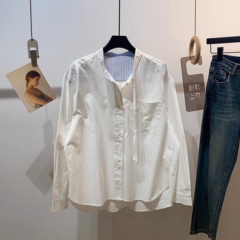 한국식 레이스 업 보우 칼라 셔츠 여자 봄 · 가을 새 느슨한 캐주얼 연령 감소 올매치 탑스토어 가기