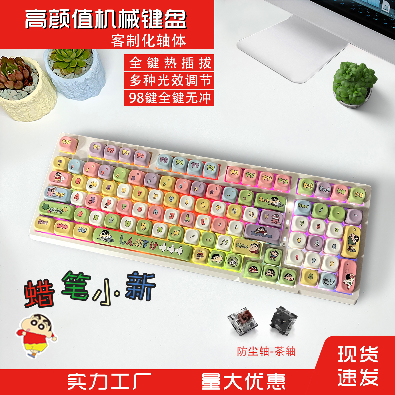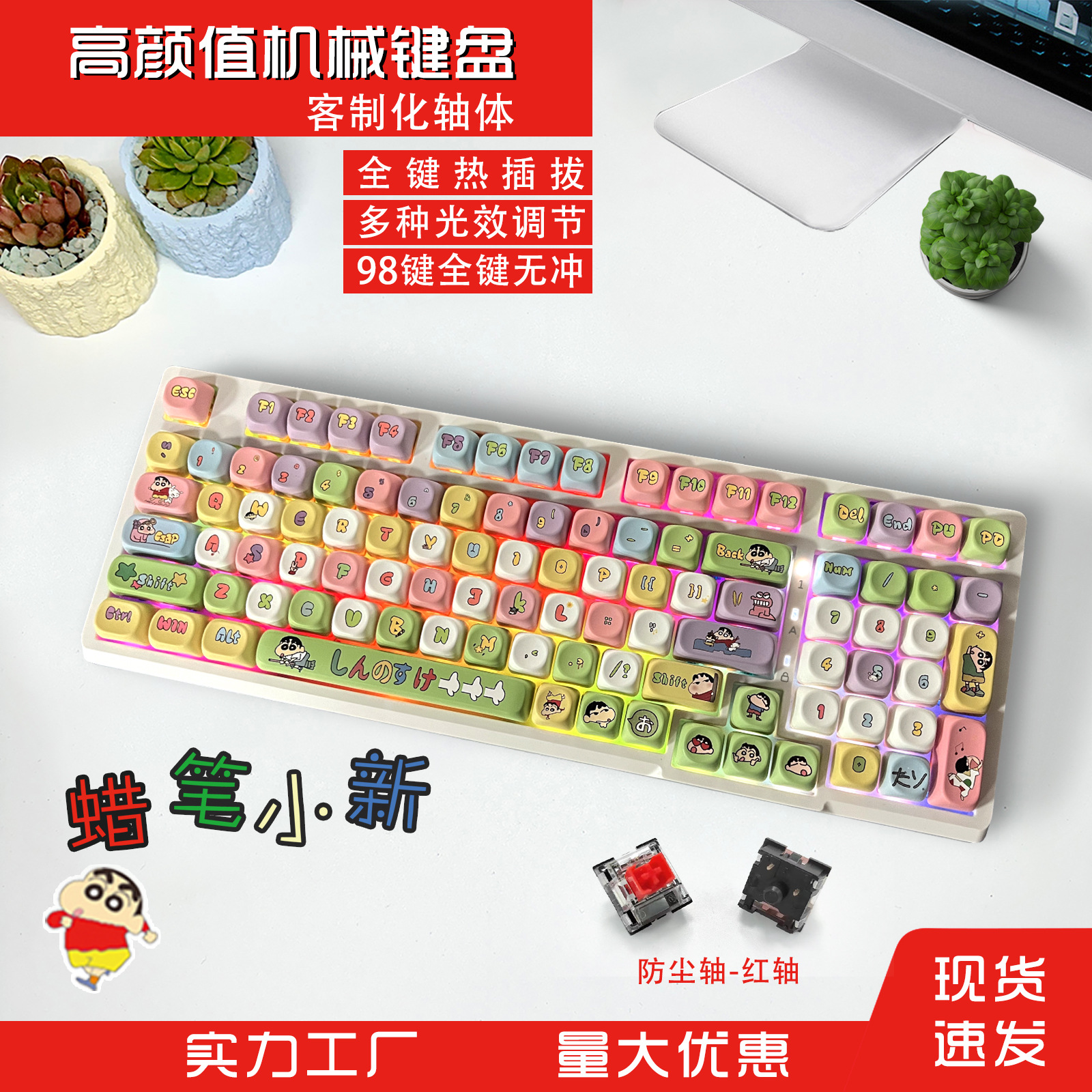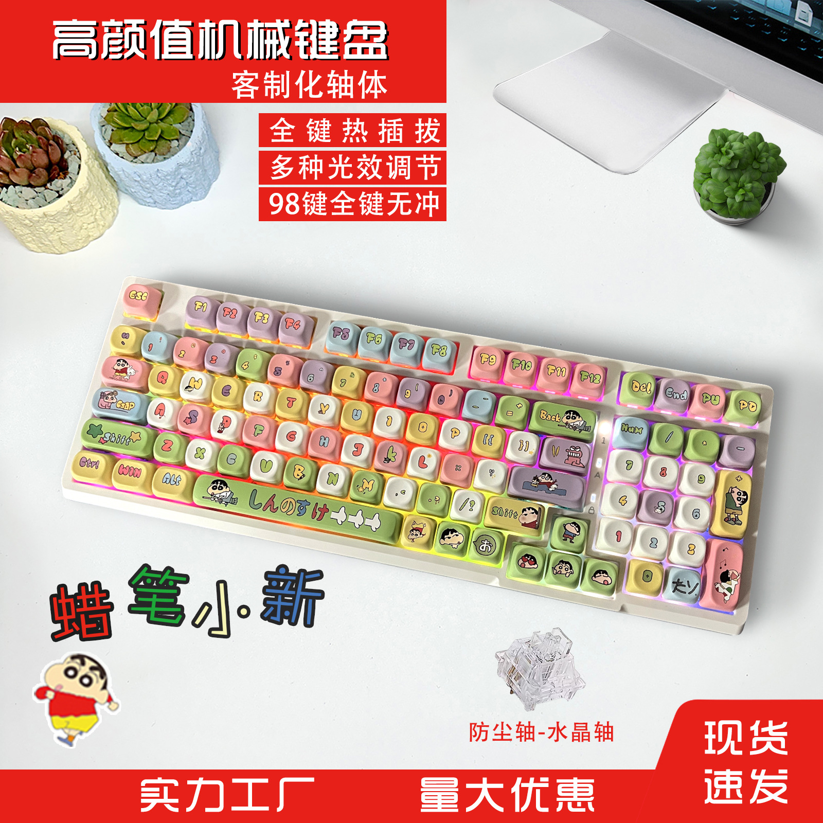 무선 기계 키보드 맞춤형 크레용 작은 새 캡 98 키 음소거 핫 플러그 샤프트 귀여운 사무실 게임 사용자 정의