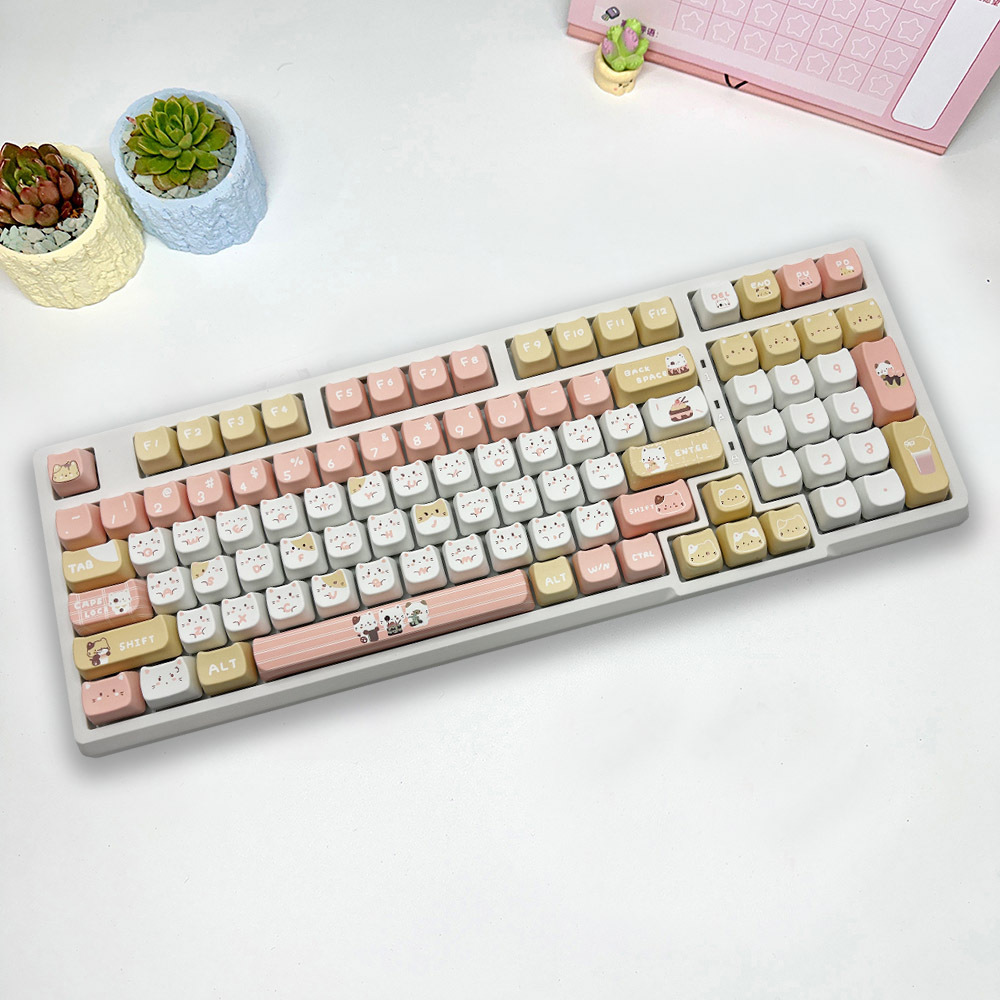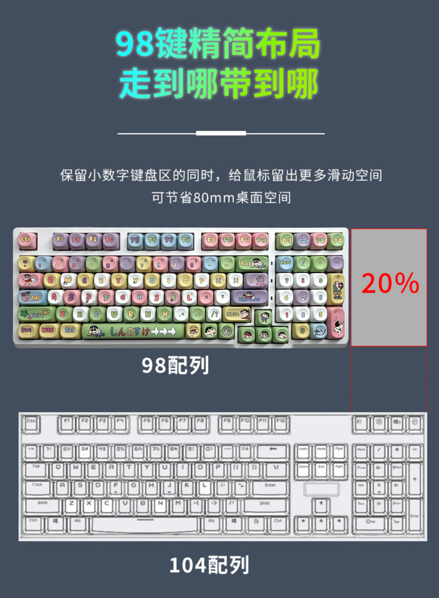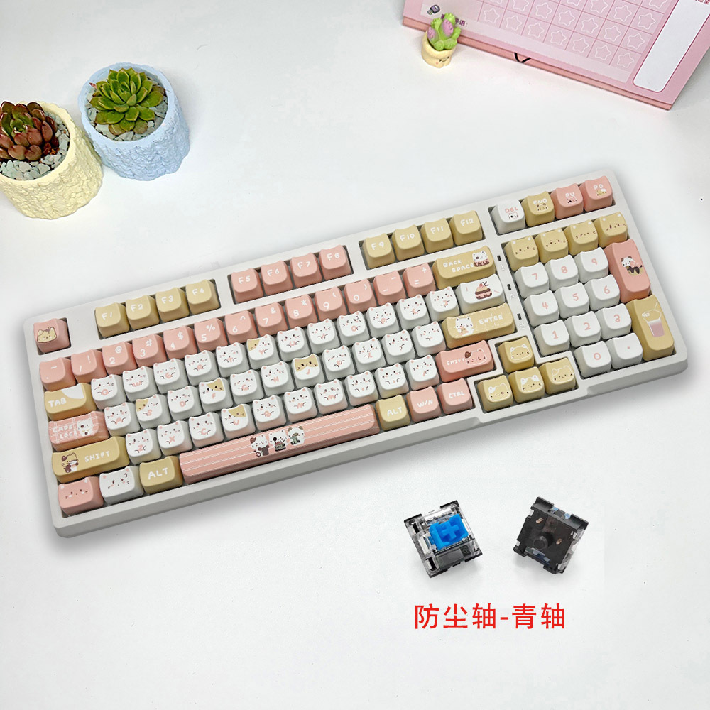 무선 기계 키보드 맞춤형 크레용 작은 새 캡 98 키 음소거 핫 플러그 샤프트 귀여운 사무실 게임 사용자 정의