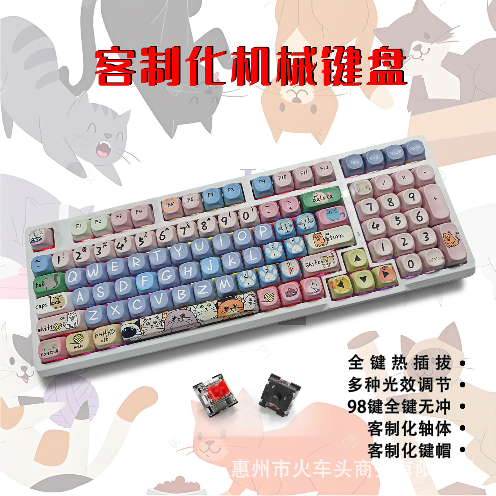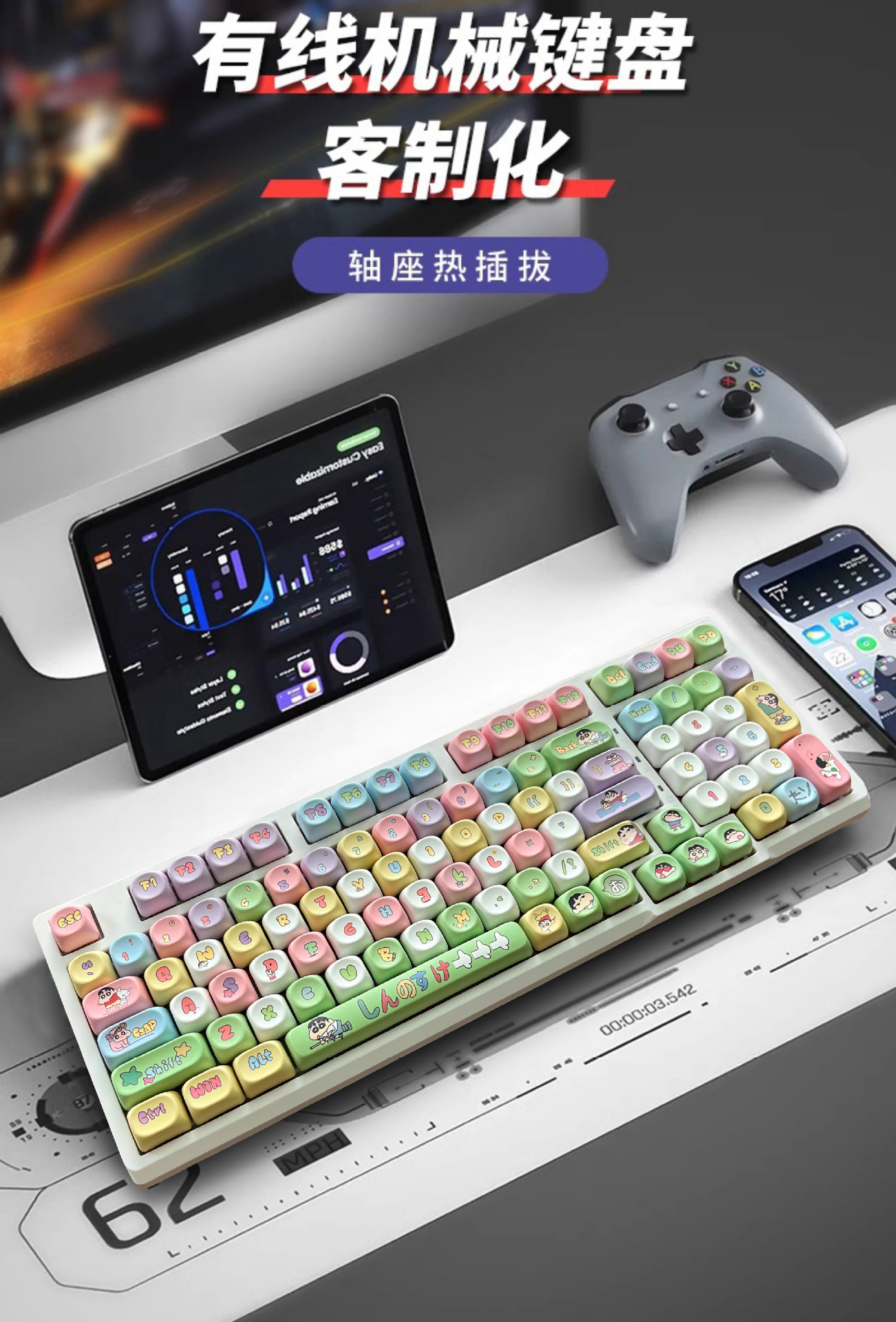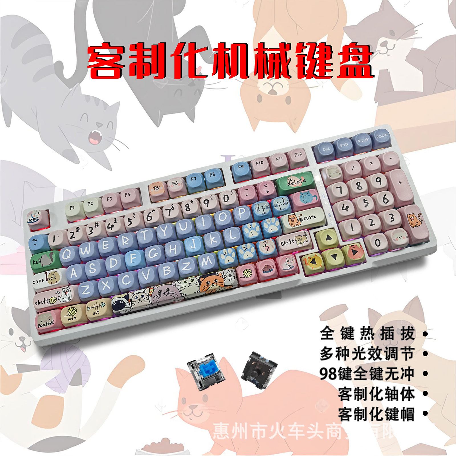 무선 기계 키보드 맞춤형 크레용 작은 새 캡 98 키 음소거 핫 플러그 샤프트 귀여운 사무실 게임 사용자 정의스토어 가기