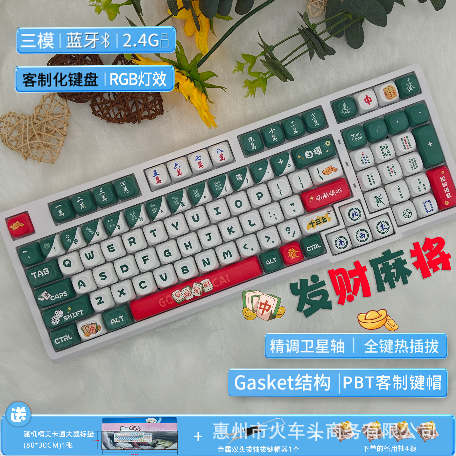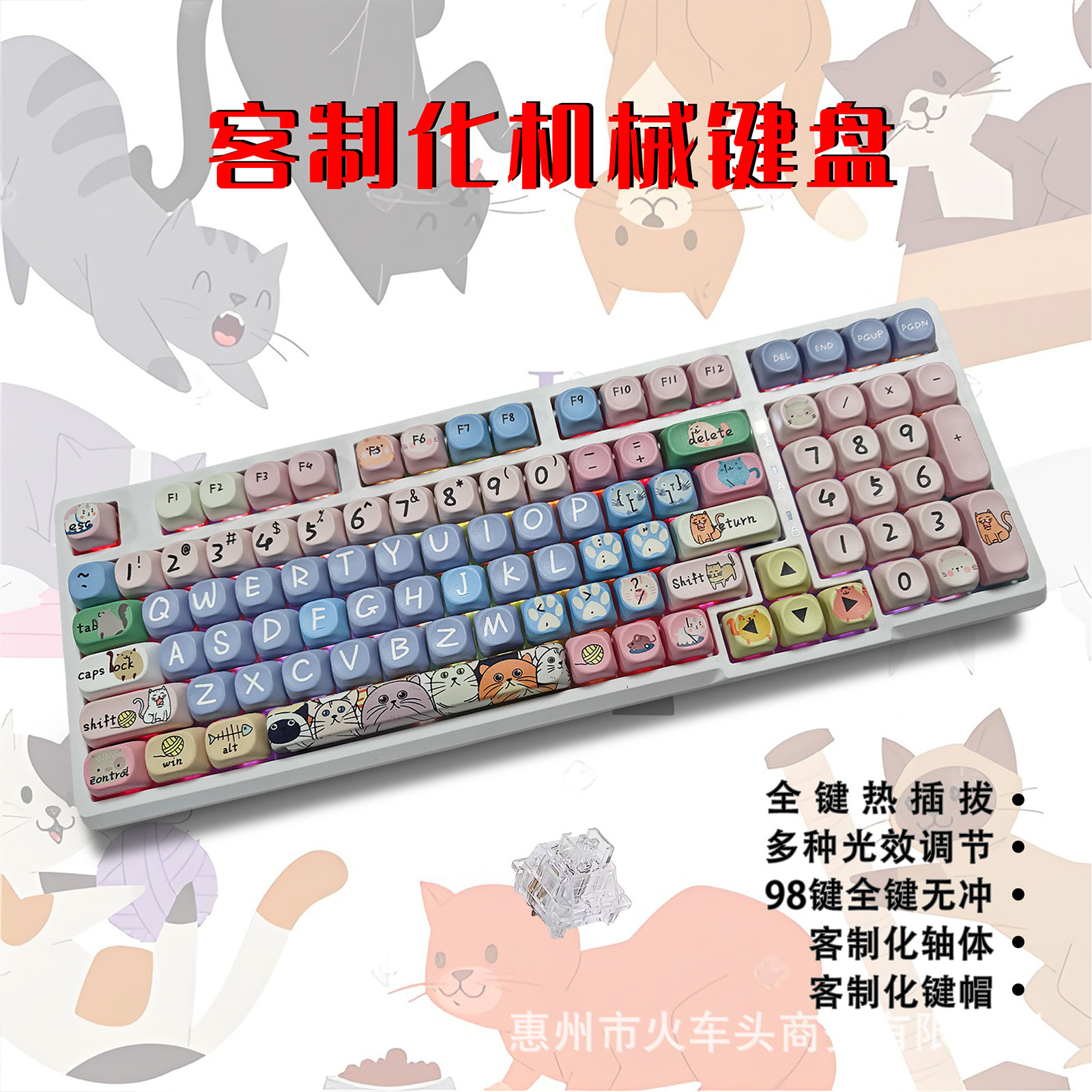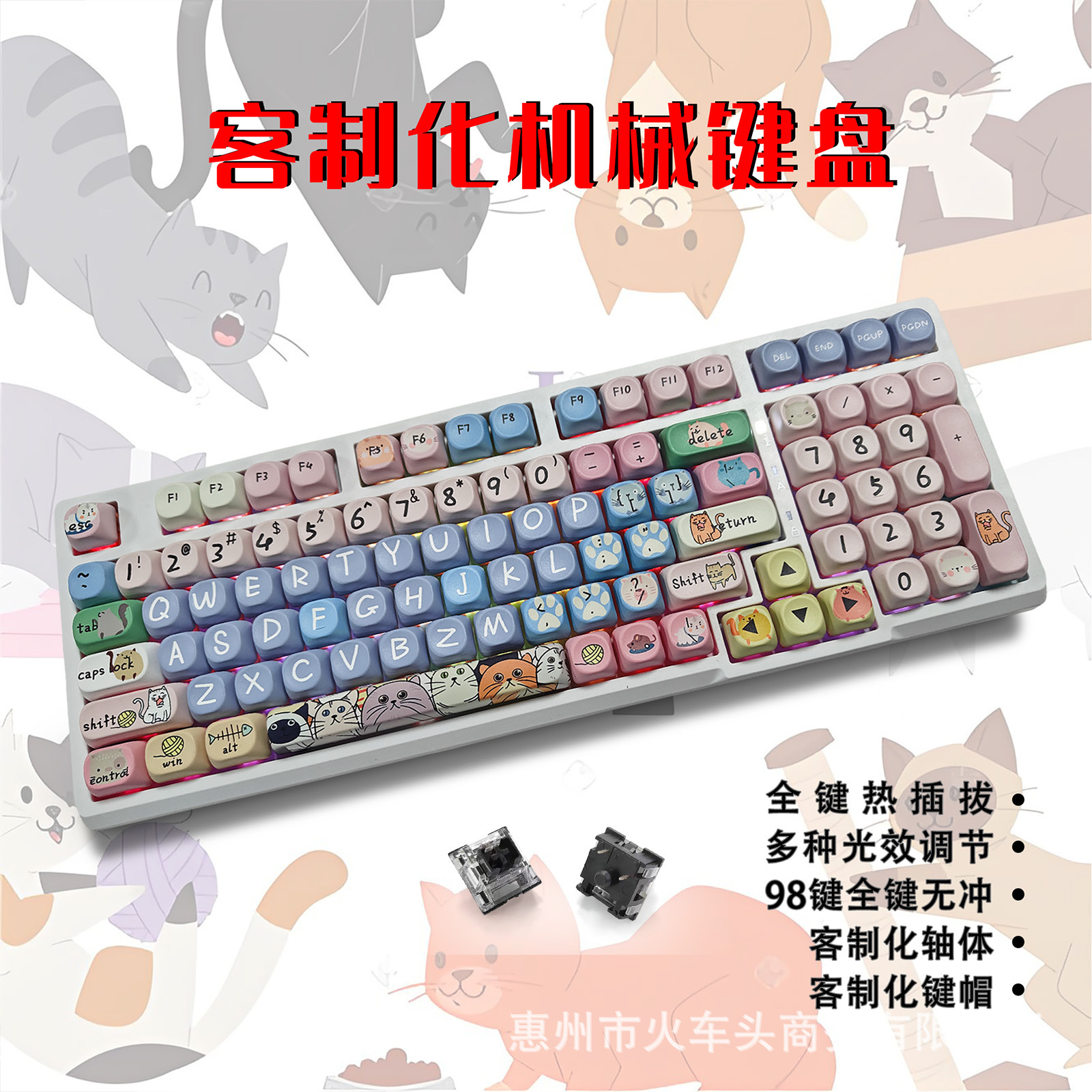 무선 기계 키보드 맞춤형 크레용 작은 새 캡 98 키 음소거 핫 플러그 샤프트 귀여운 사무실 게임 사용자 정의스토어 가기