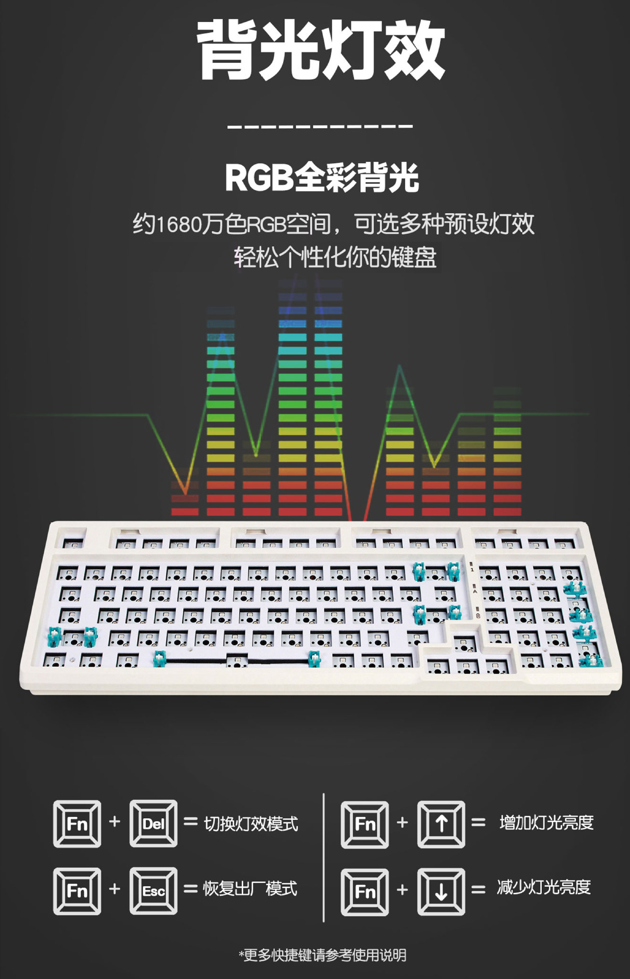 • 키캡이 없는 녹색 샤프트/빨간색 샤프트/검정색 샤프트(하나 선택)가 포함된 무선 K98 흰색 키트