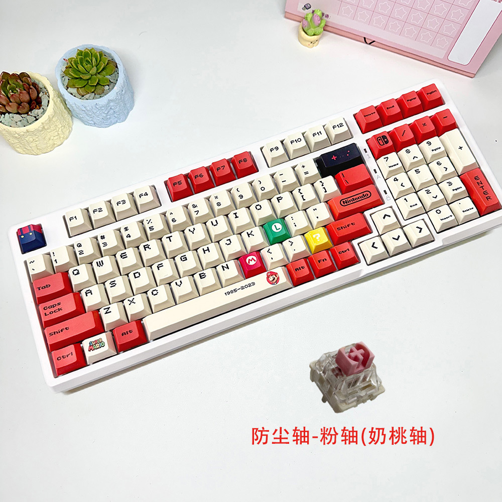 • 키캡이 없는 핑크 샤프트/크리스탈 샤프트/노란색 샤프트(하나 선택)가 포함된 유선 K98 흰색 키트