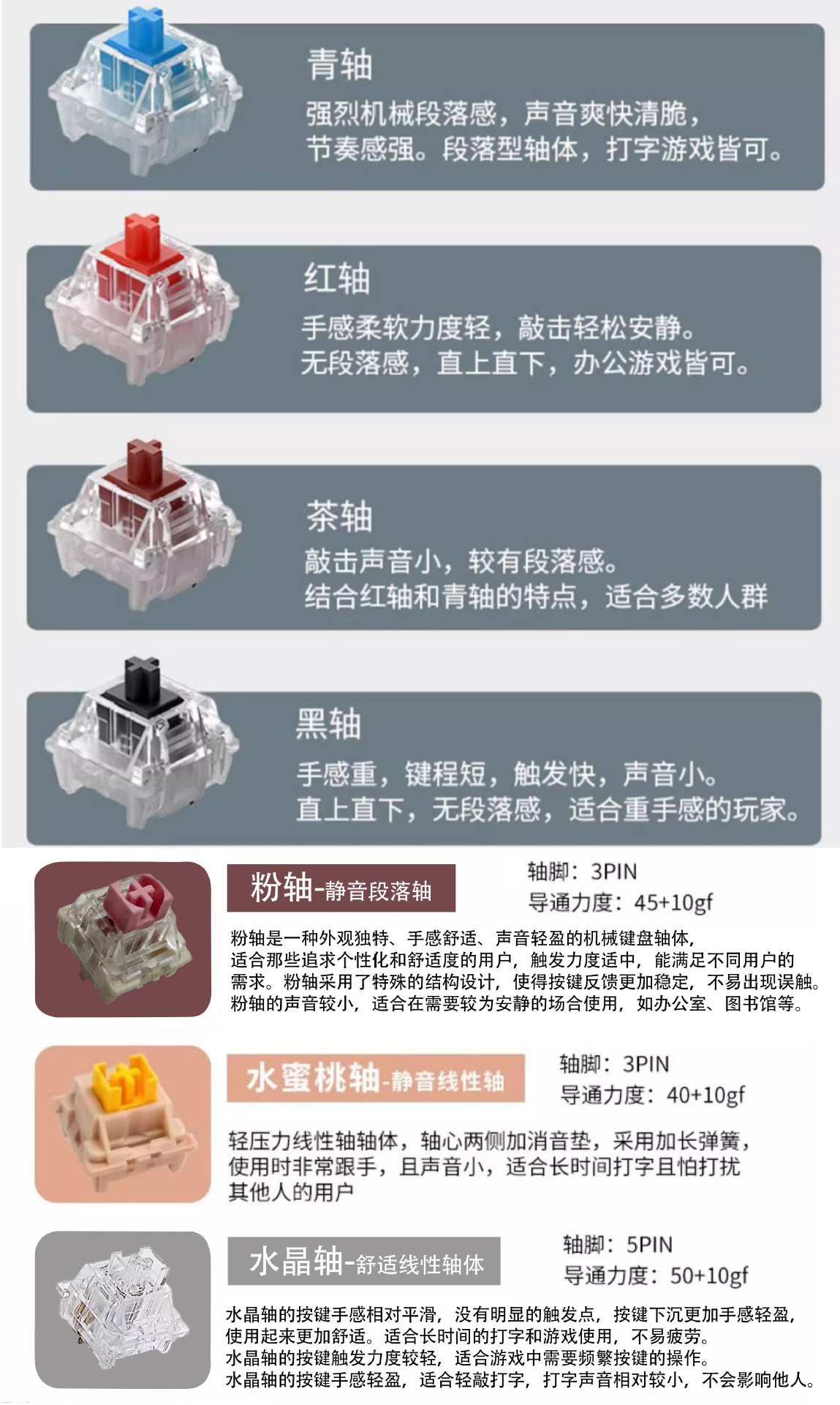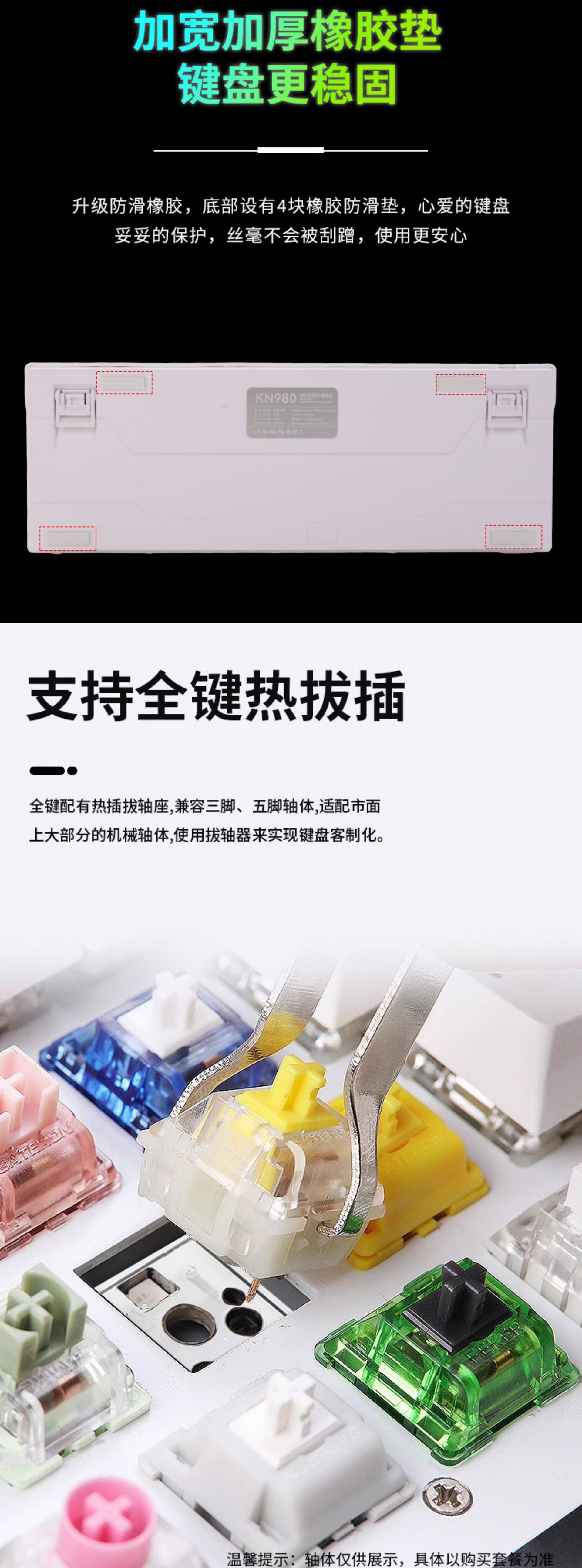 • 키캡이 없는 녹색 샤프트/빨간색 샤프트/검정색 샤프트(하나 선택)가 포함된 유선 K98 흰색 키트