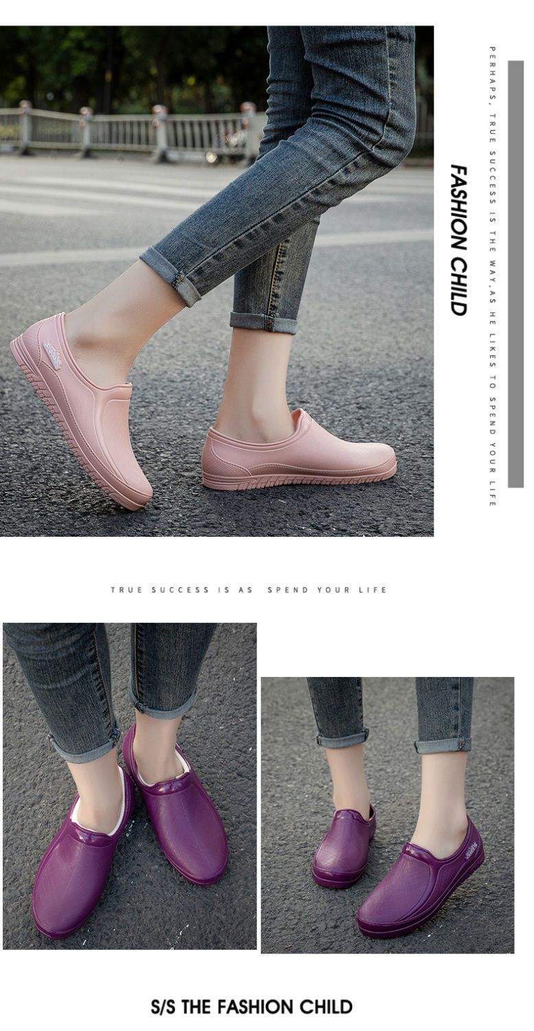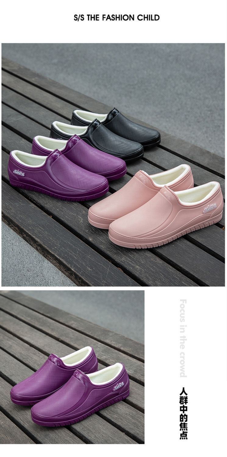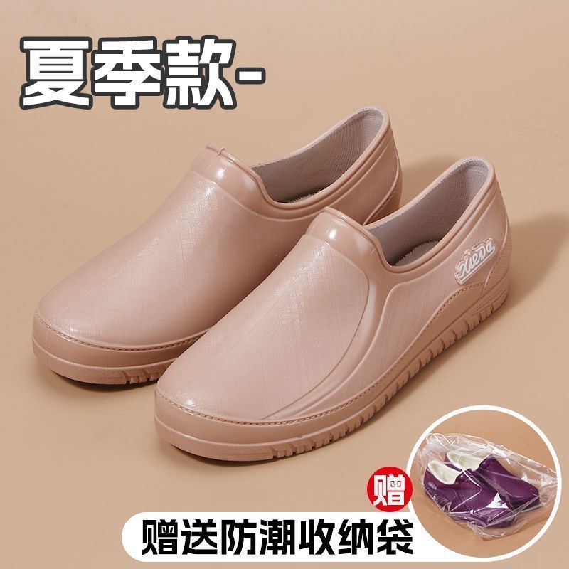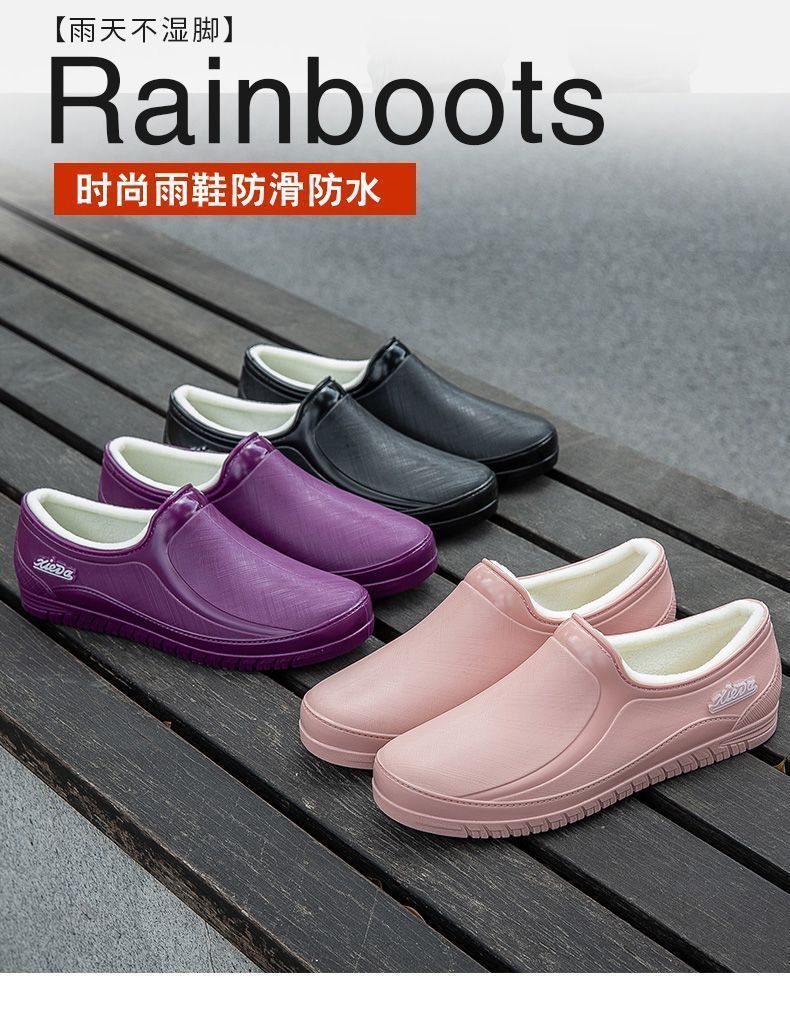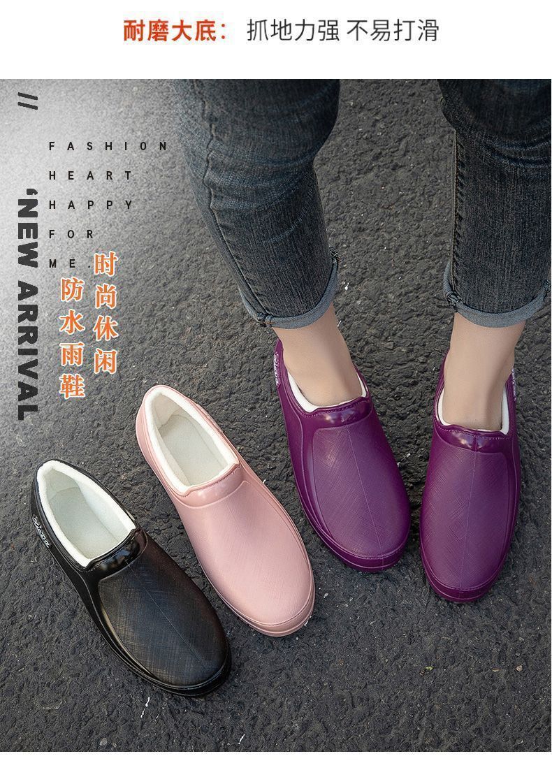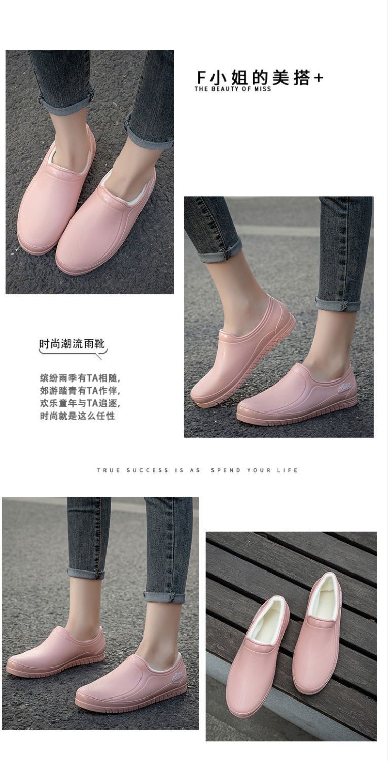 얕은 입 장화 여성용 저가형 봄 및 가을 여성용 장화 기모 냉방성 주방 미끄럼 방지 방수 내마모성 여성용 짧은 장화
