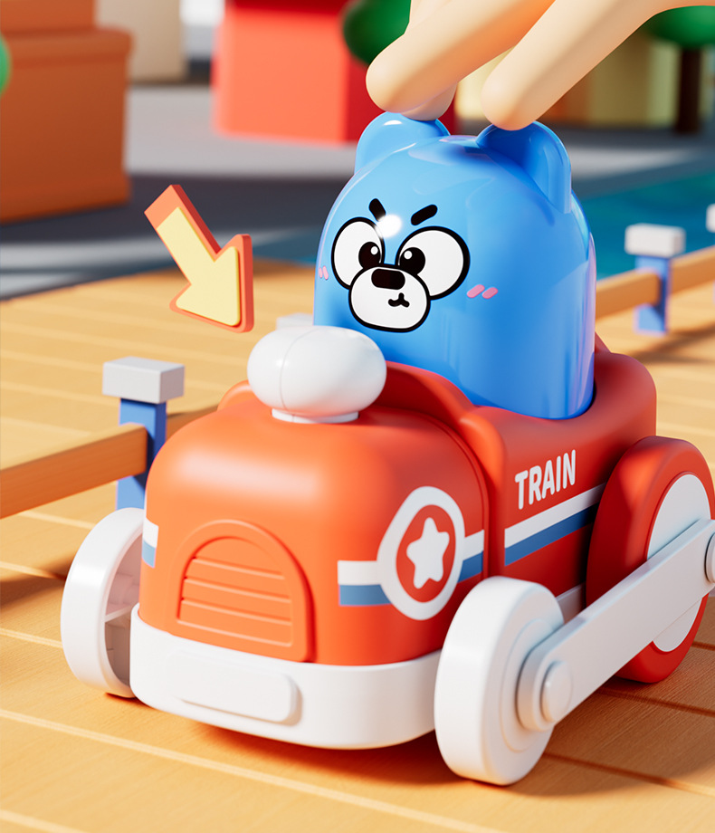어린이 관성 프레스 만화 귀여운 재미 작은 기차 동물 모델링 아기 교육 머리 운동 장난감 자동차