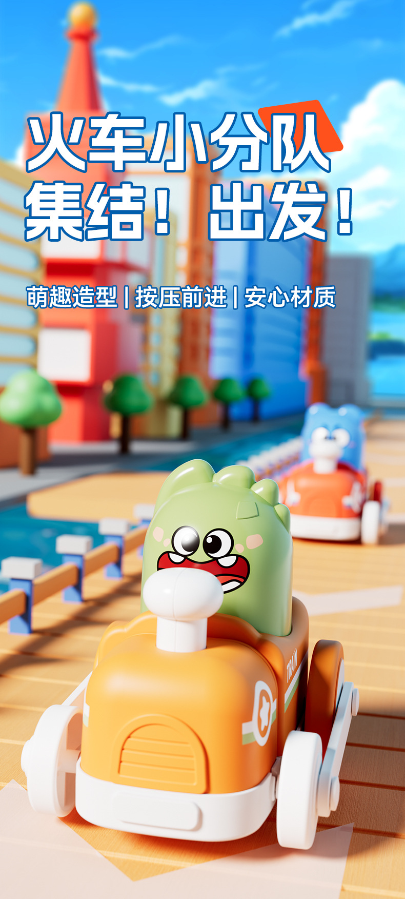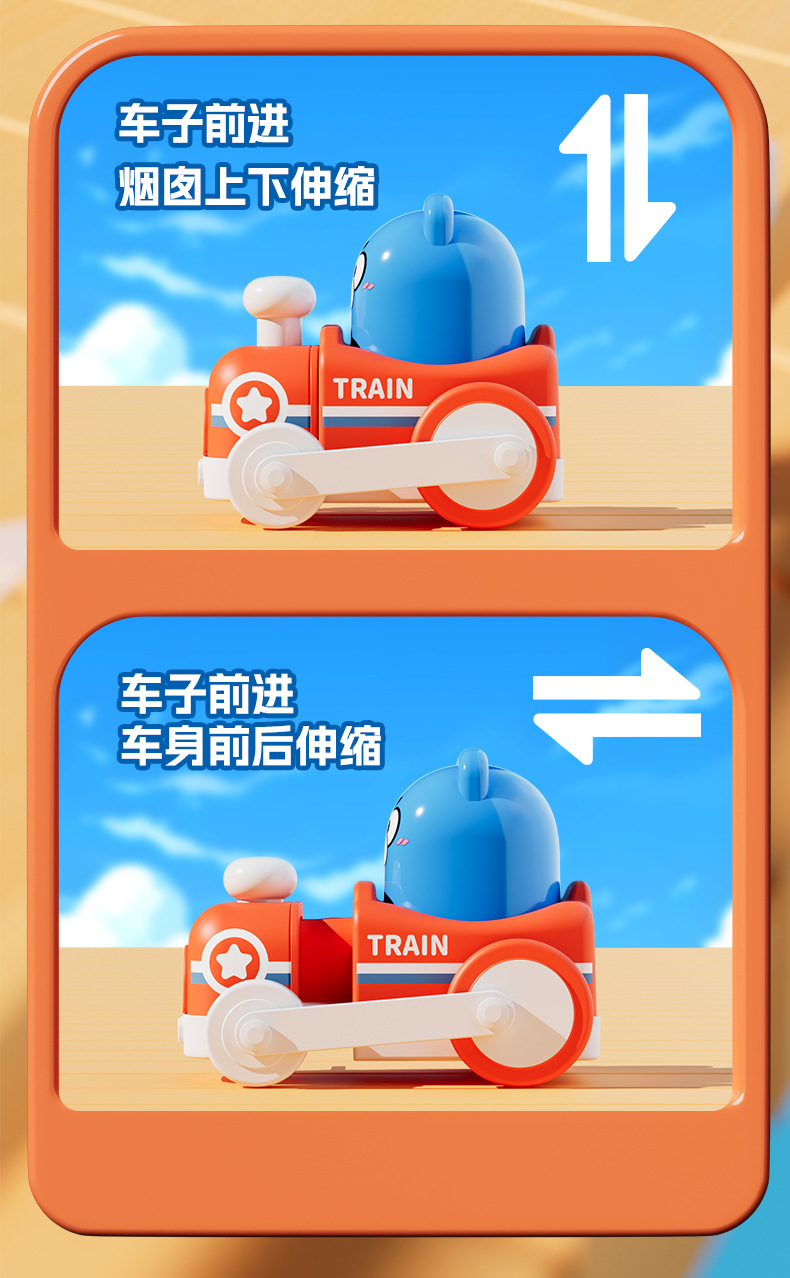어린이 관성 프레스 만화 귀여운 재미 작은 기차 동물 모델링 아기 교육 머리 운동 장난감 자동차스토어 가기