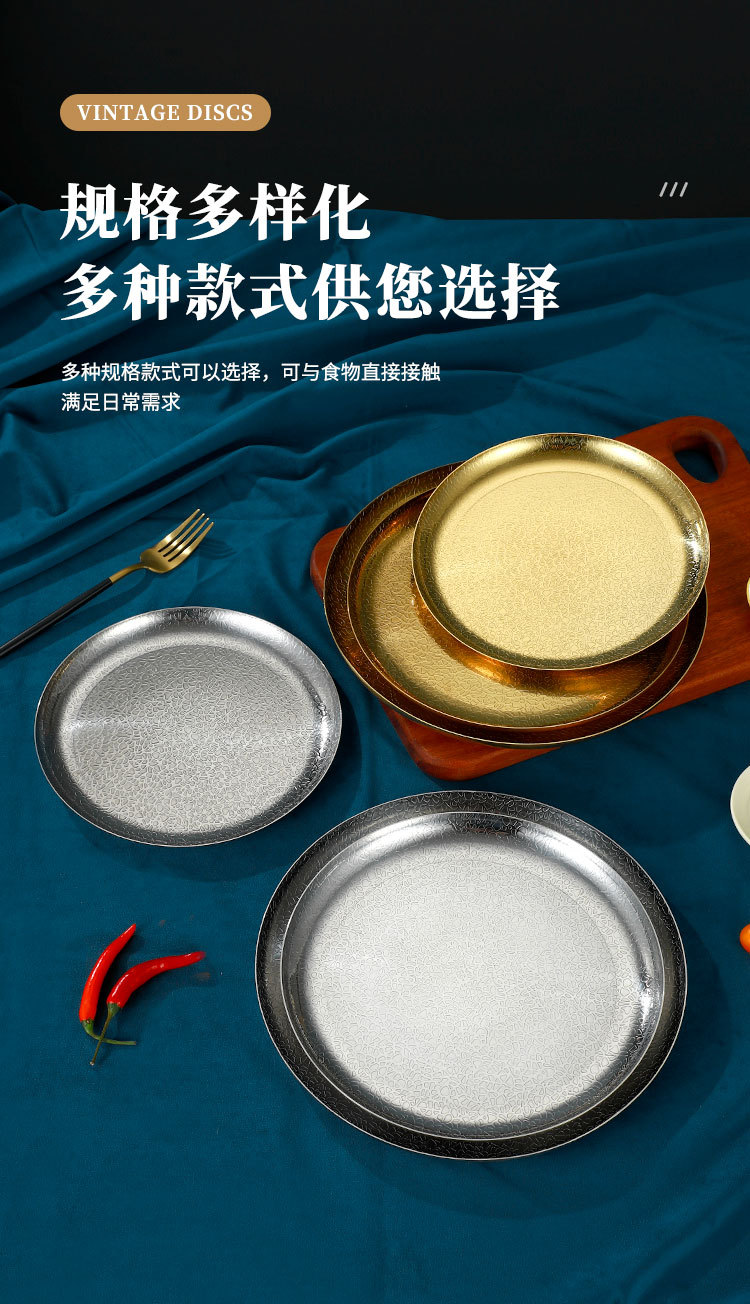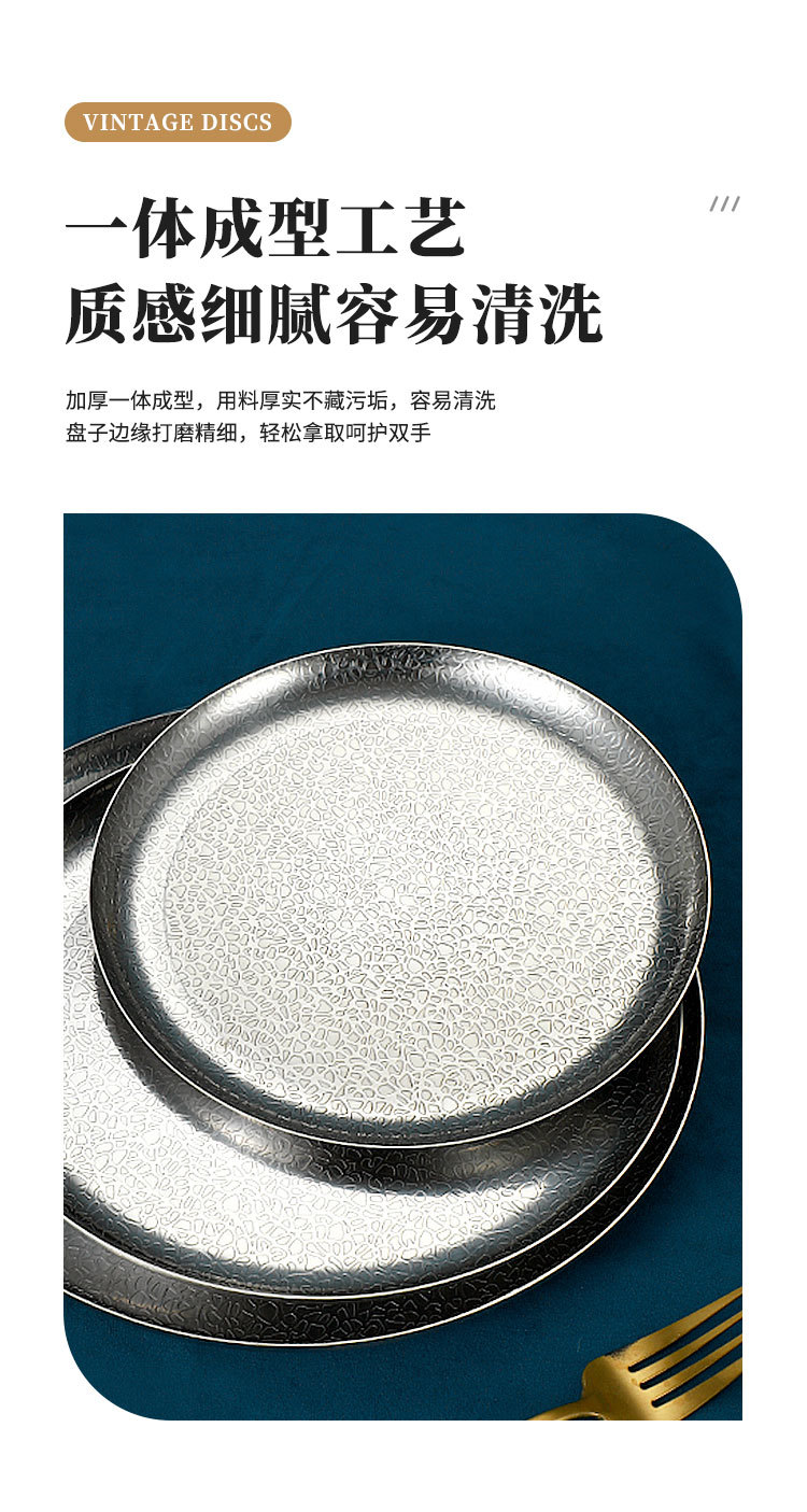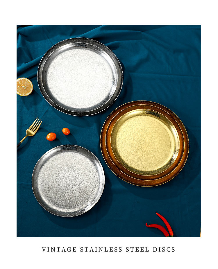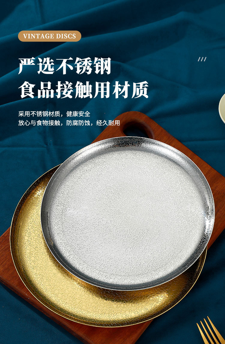 크리에이티브 레트로 한국식 해머 스테인레스 스틸 트레이 상업용 두꺼운 스낵 디저트 케이크 과일 플레이트스토어 가기