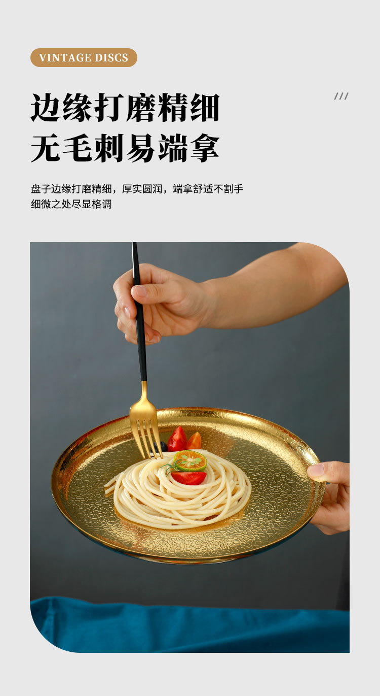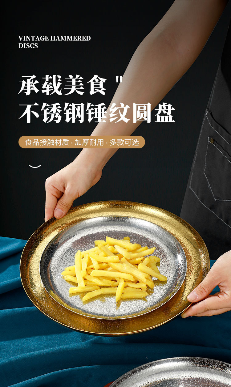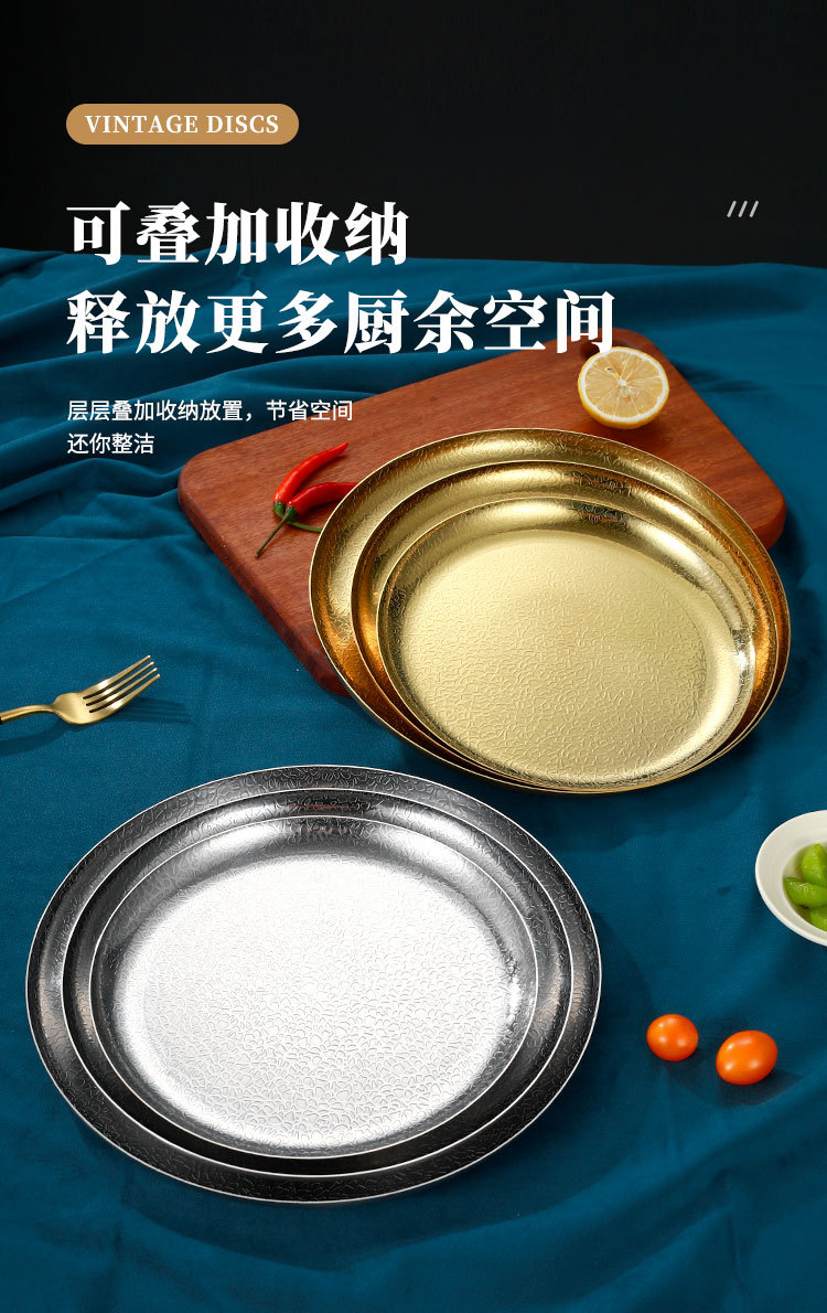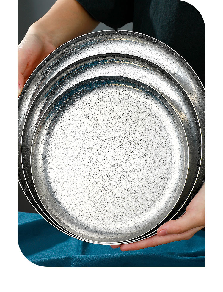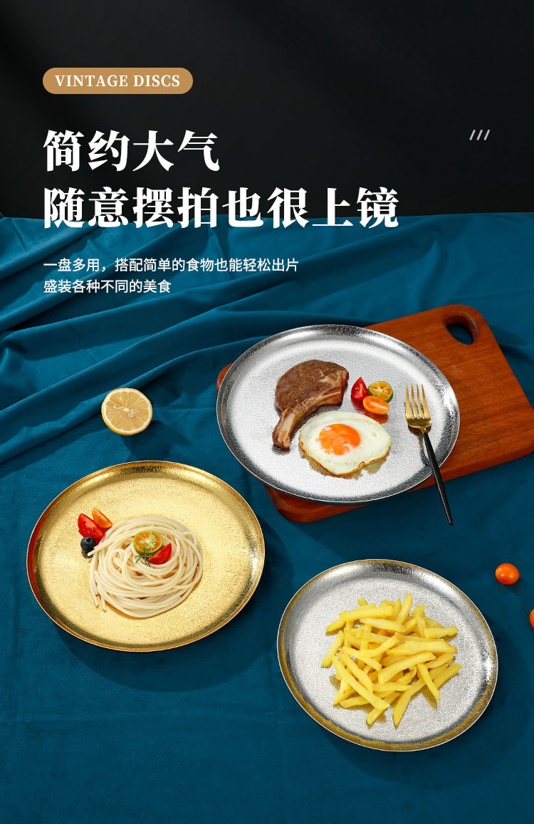 크리에이티브 레트로 한국식 해머 스테인레스 스틸 트레이 상업용 두꺼운 스낵 디저트 케이크 과일 플레이트스토어 가기