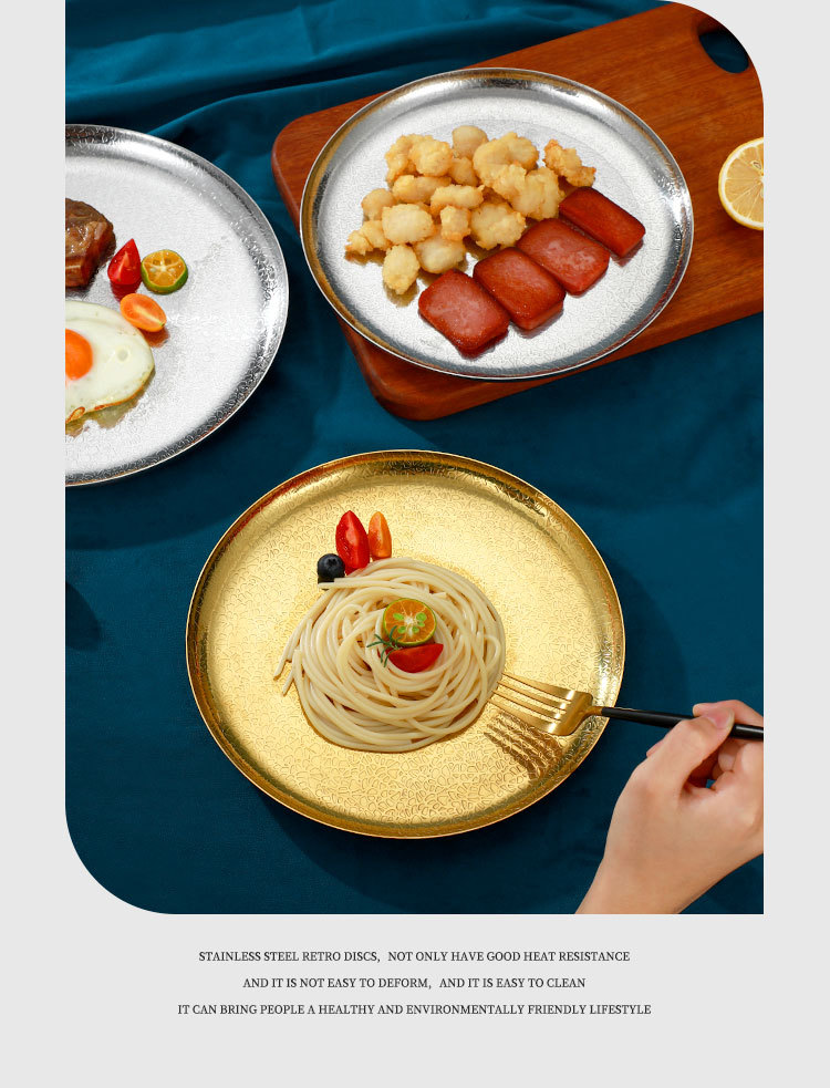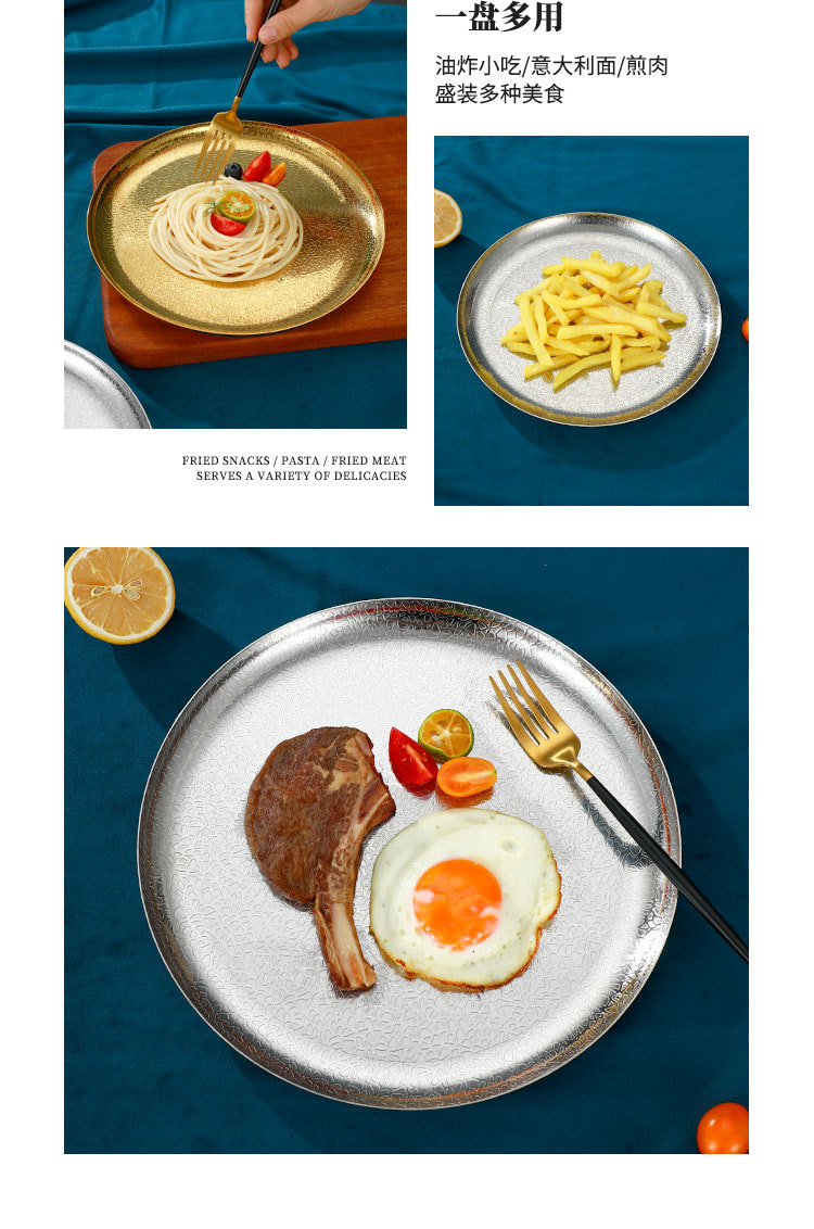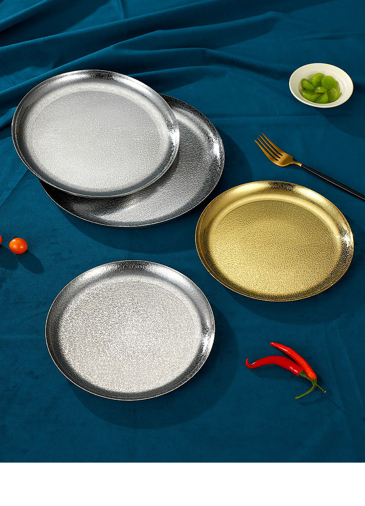 크리에이티브 레트로 한국식 해머 스테인레스 스틸 트레이 상업용 두꺼운 스낵 디저트 케이크 과일 플레이트