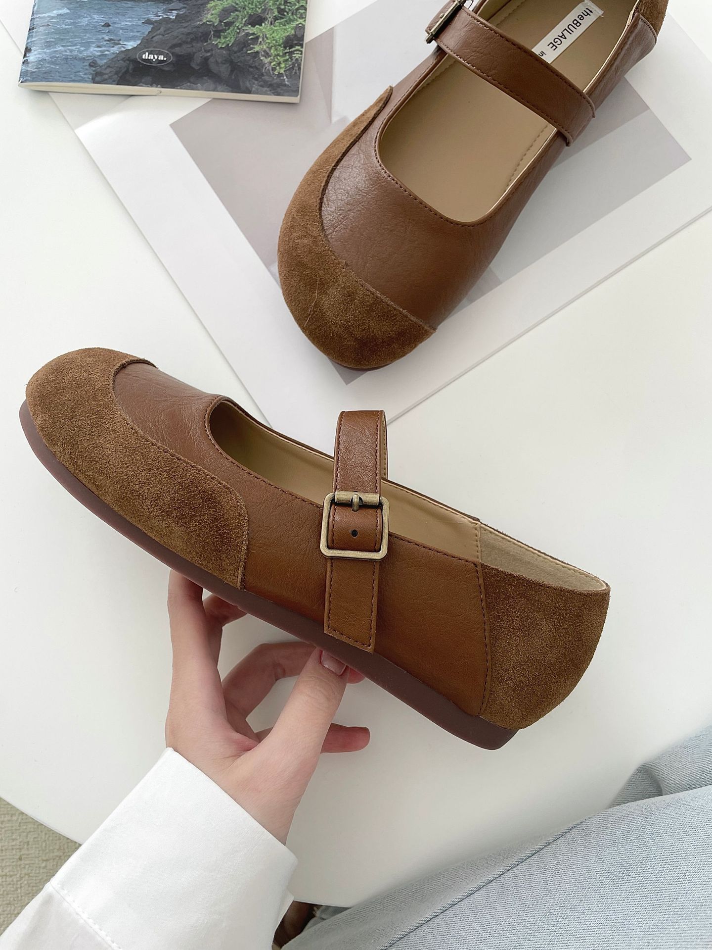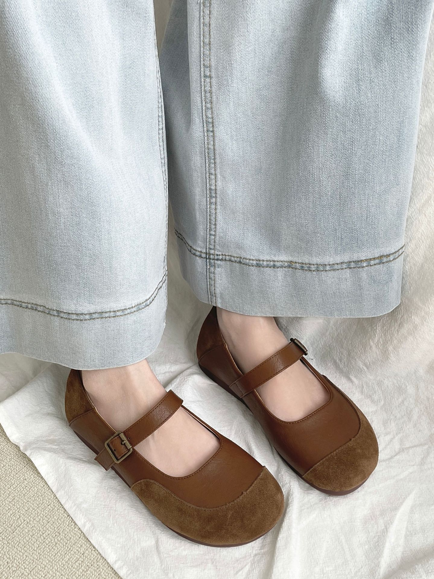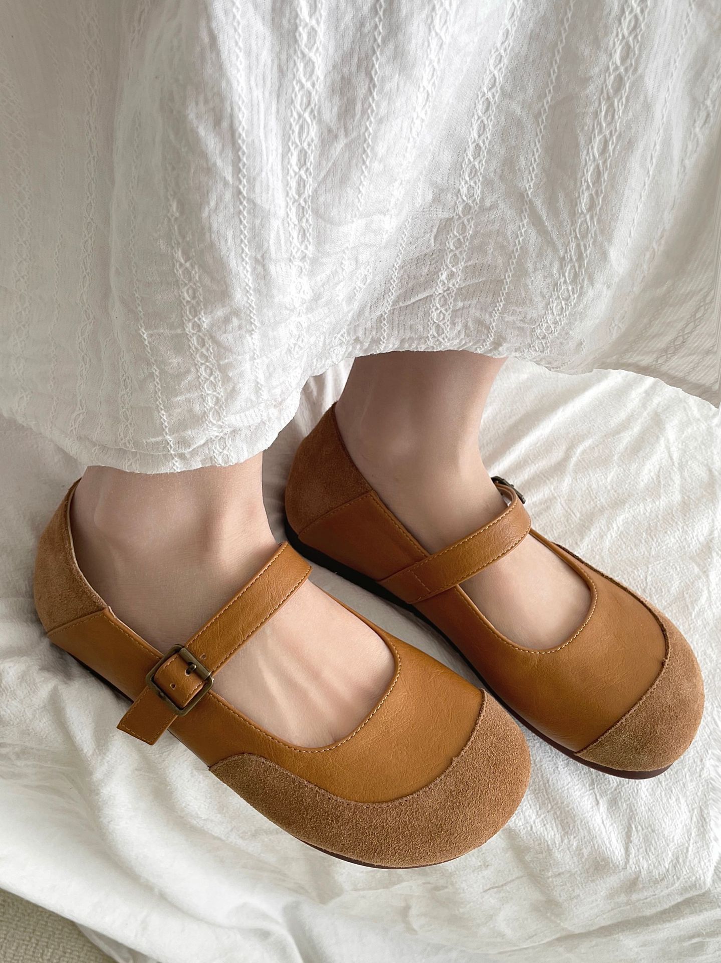 빈티지 메리 제인 신발 일본 스타일 라운드 발가락 싱글 신발 여성 2025 뉴 버칸 신발 가죽 스웨이드 소프트 하단 밀크 신발스토어 가기