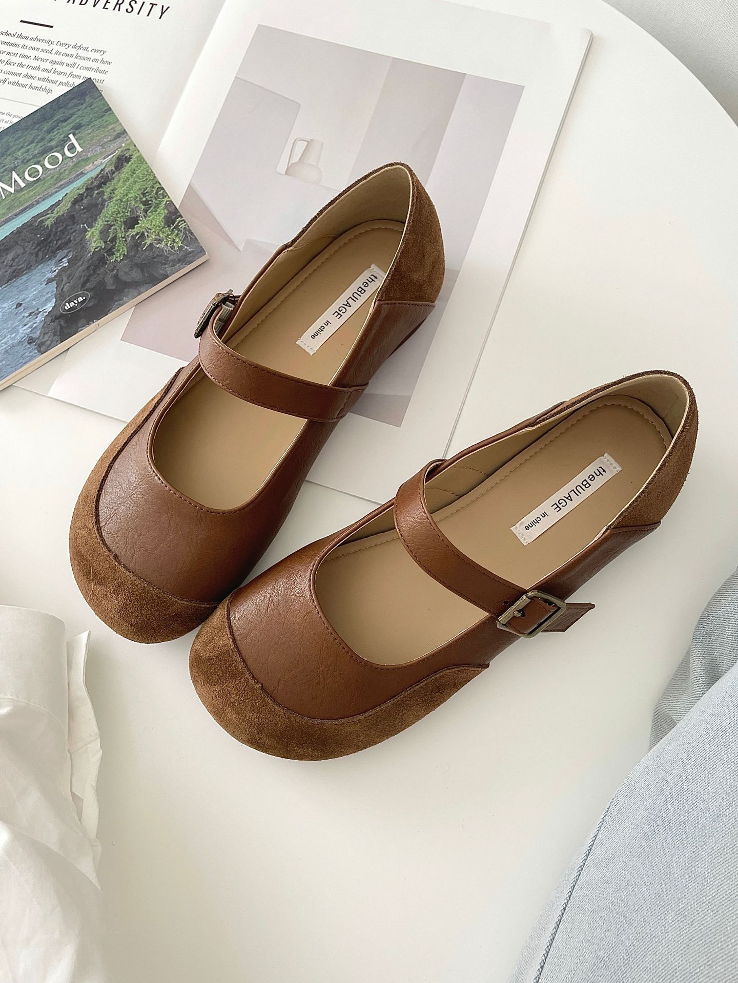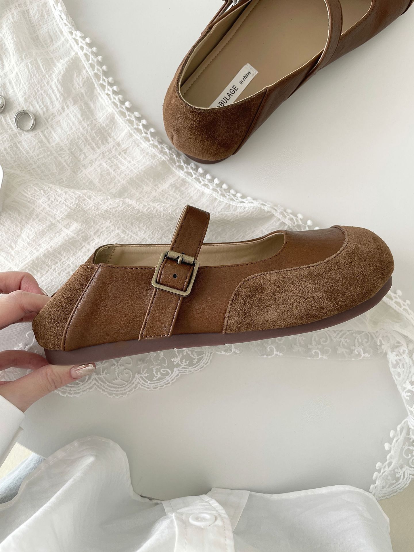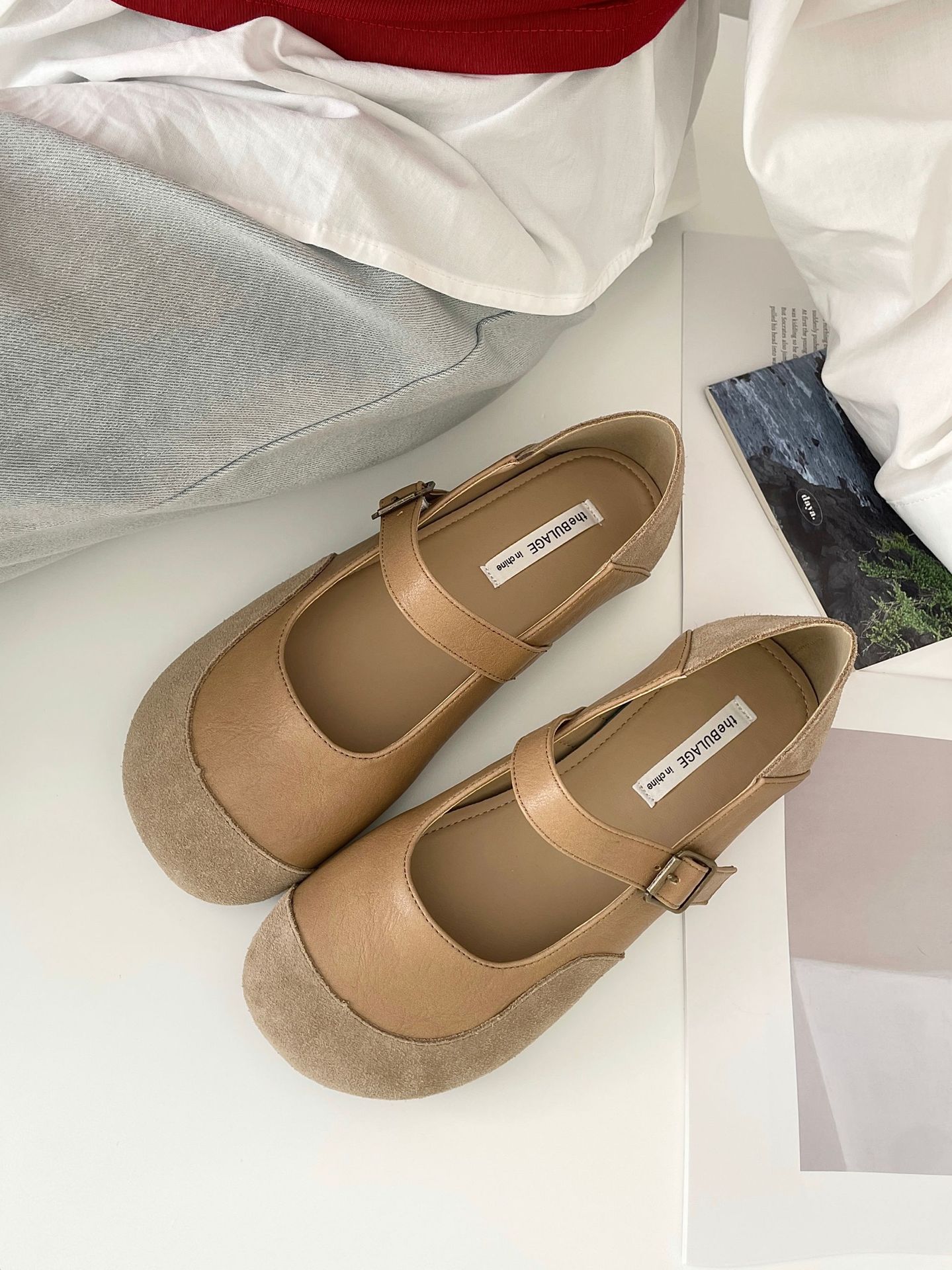 빈티지 메리 제인 신발 일본 스타일 라운드 발가락 싱글 신발 여성 2025 뉴 버칸 신발 가죽 스웨이드 소프트 하단 밀크 신발스토어 가기