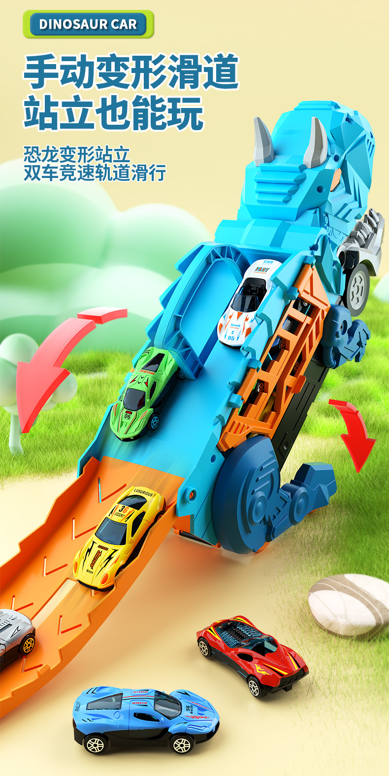 공장 직접 공급 국경 어린이 황소 용 이중 형태의 공룡 삼키기 자동차 배출 슬라이딩 트랙 합금 자동차 장난감스토어 가기