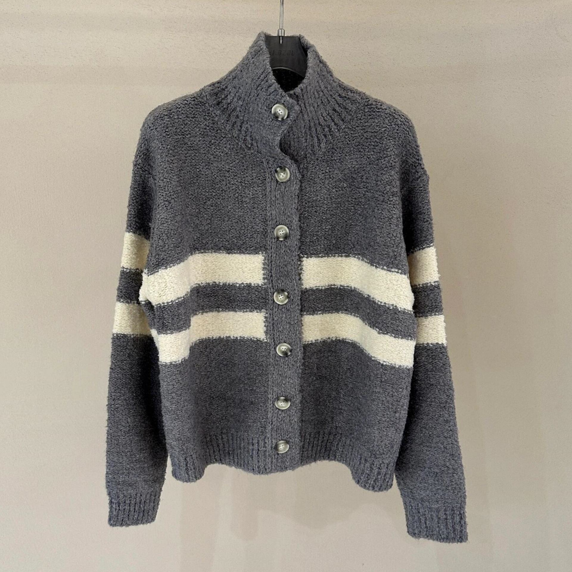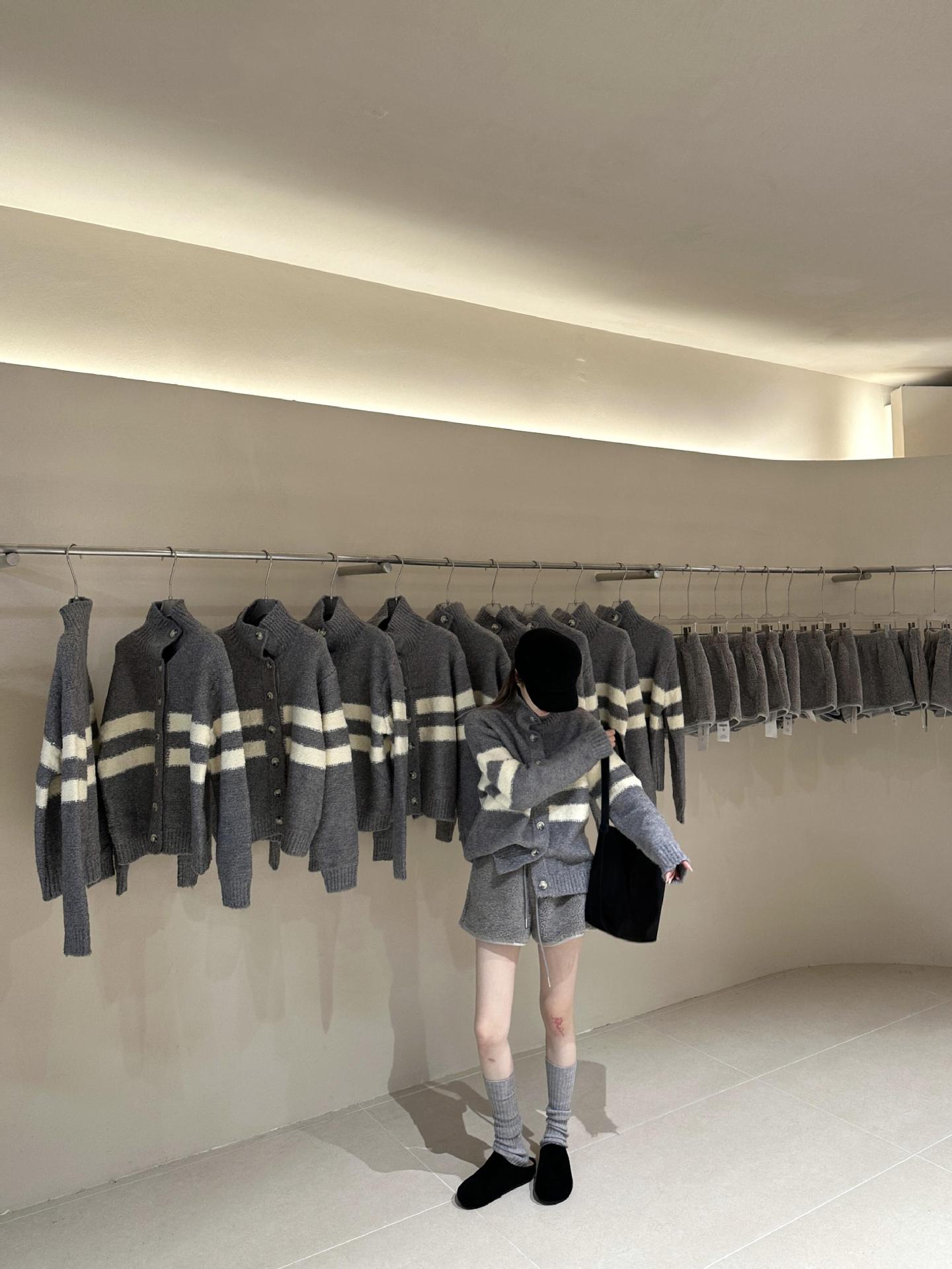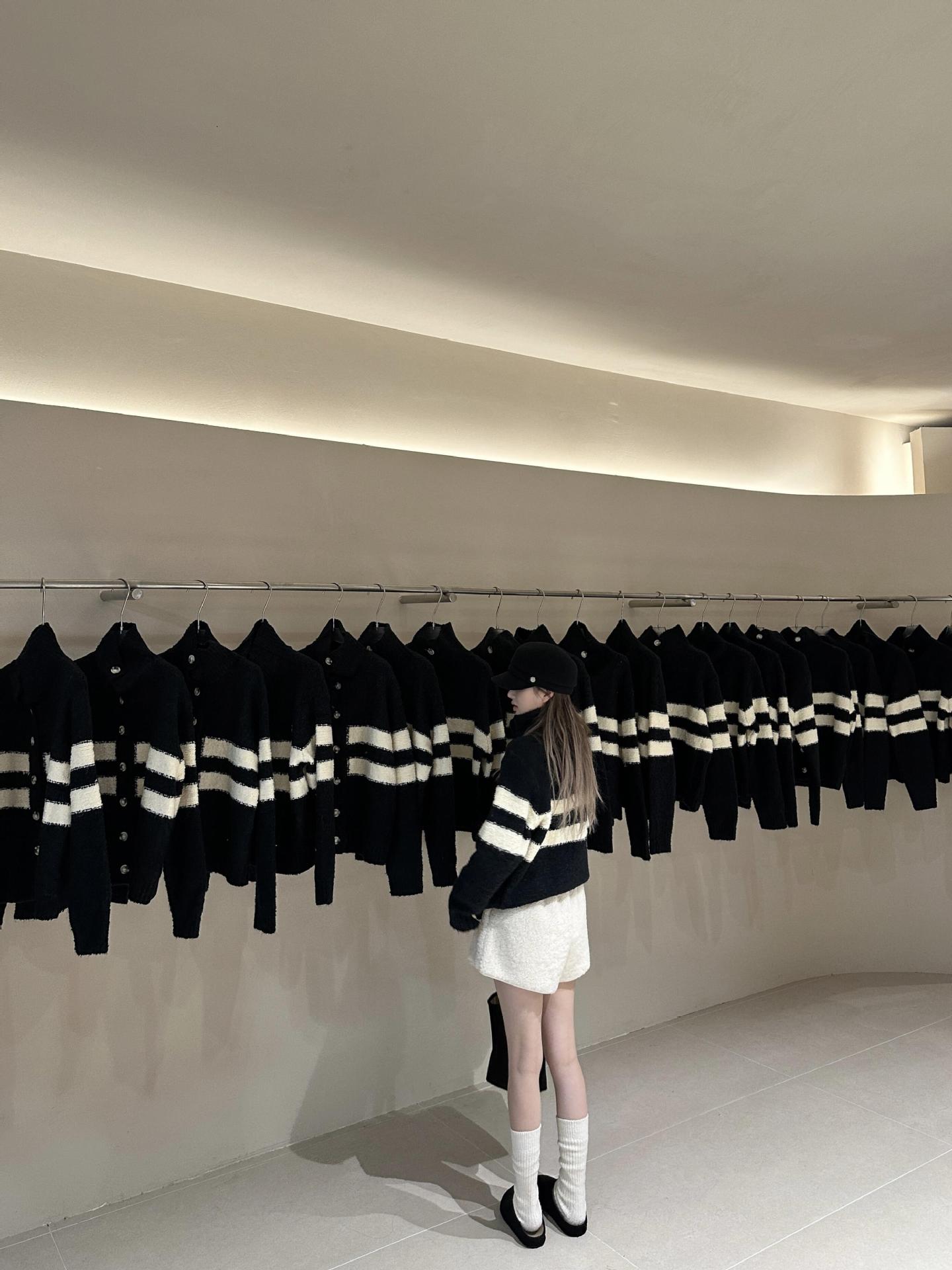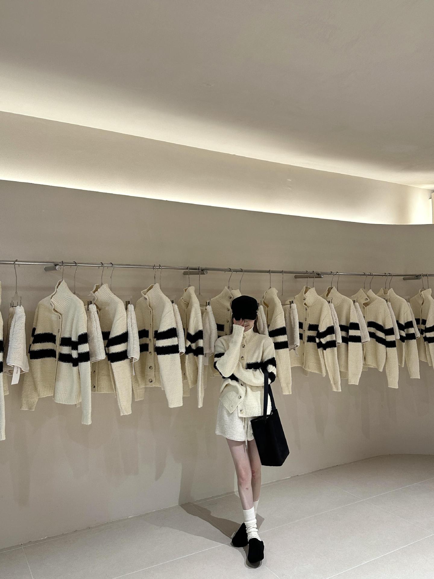 2025 봄과 가을 새로운 루프 원사 부드러운 왁스 색상 대조 줄무늬 니트 스웨터 카디건 여자 느슨한 두꺼운 올 매치 스웨터스토어 가기
