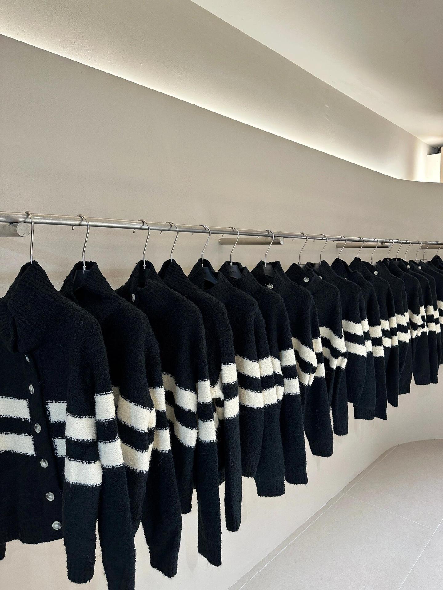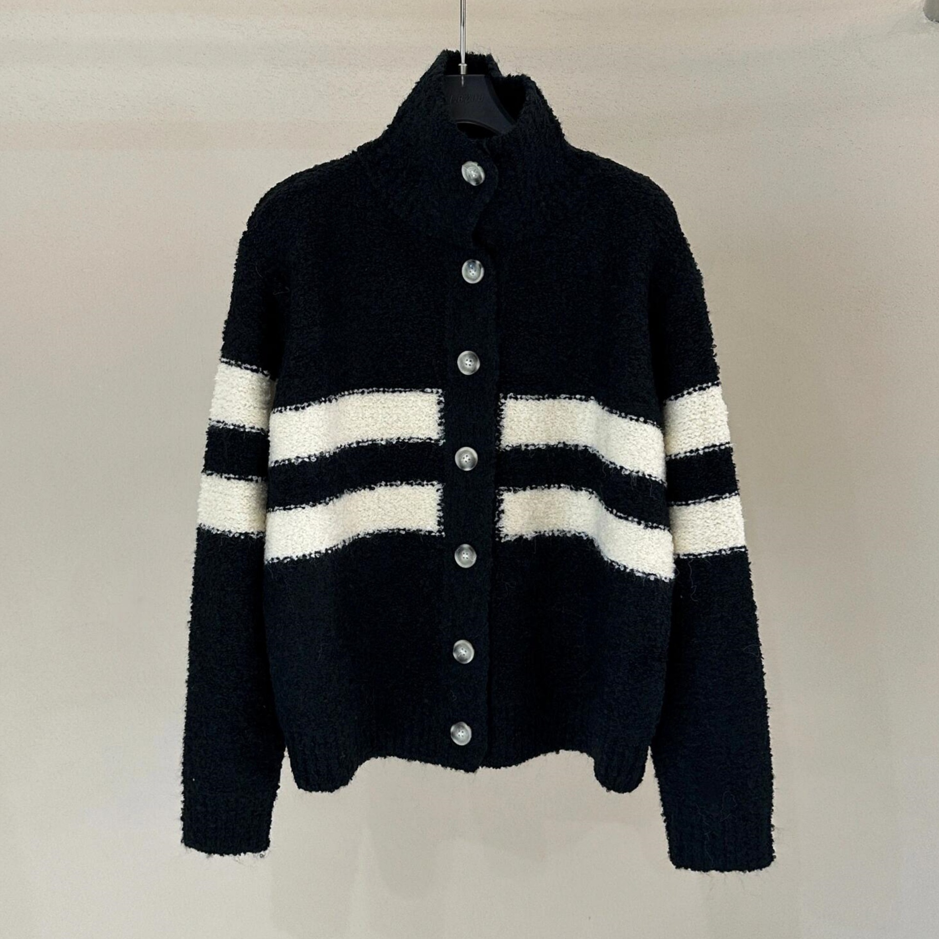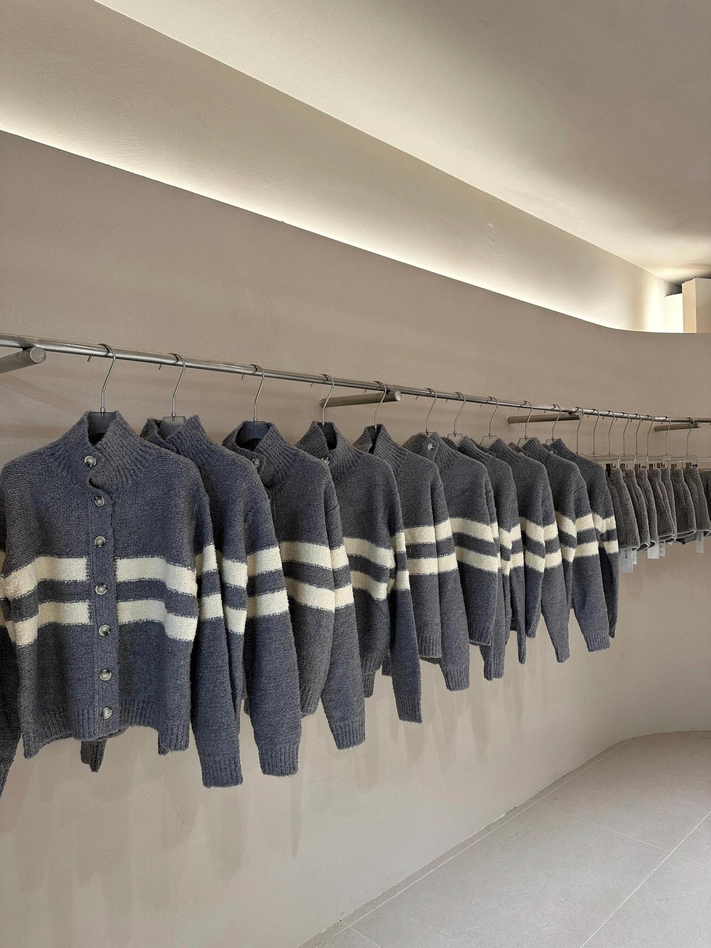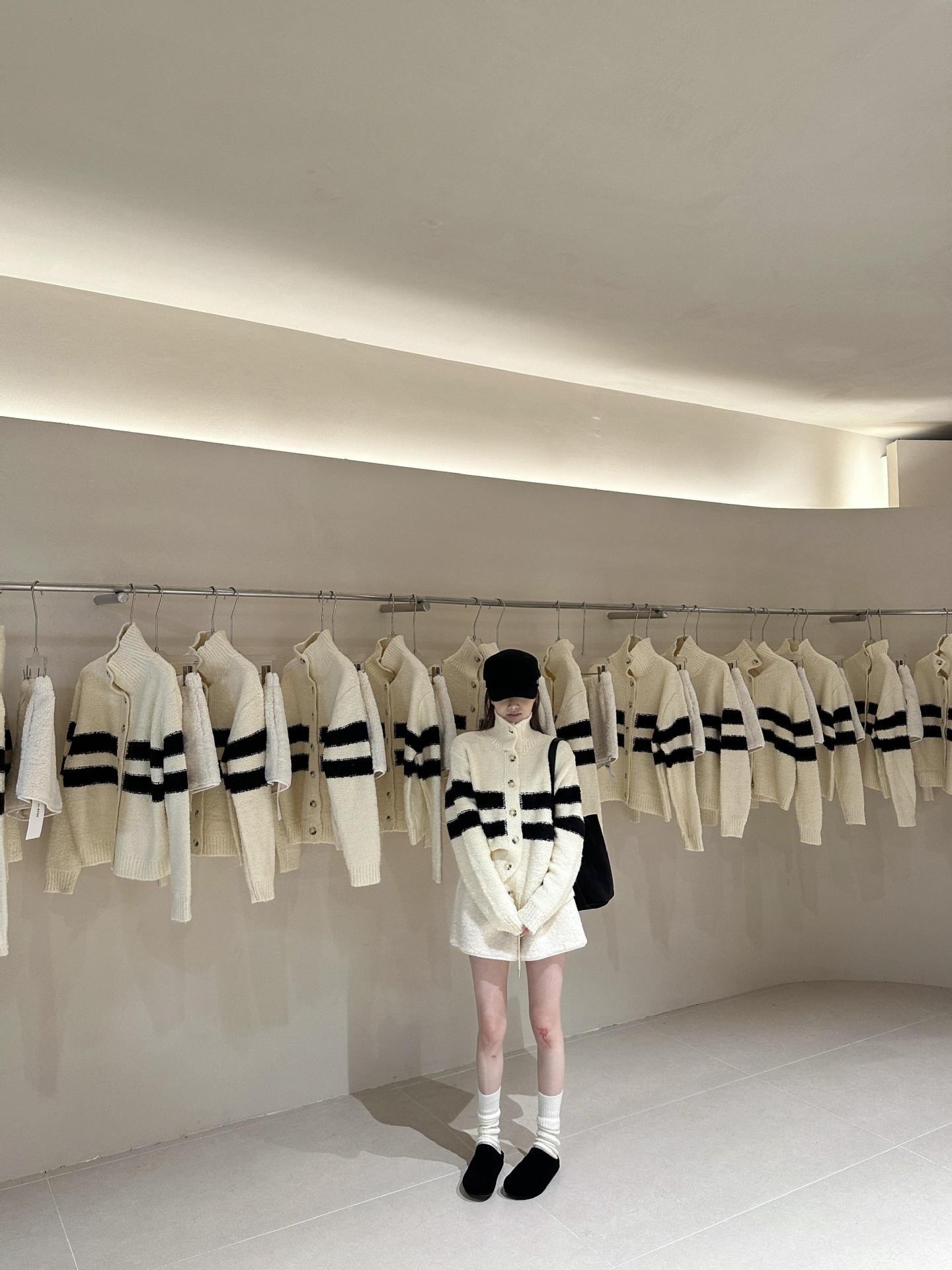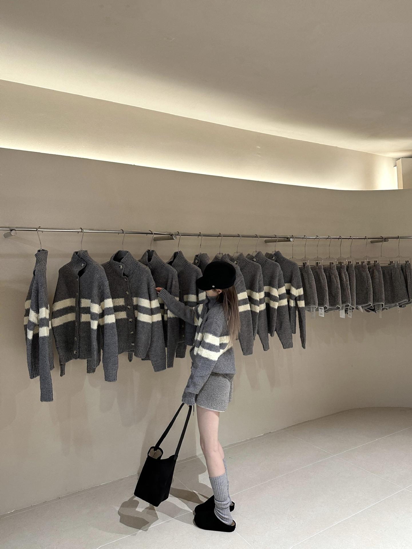 2025 봄과 가을 새로운 루프 원사 부드러운 왁스 색상 대조 줄무늬 니트 스웨터 카디건 여자 느슨한 두꺼운 올 매치 스웨터스토어 가기