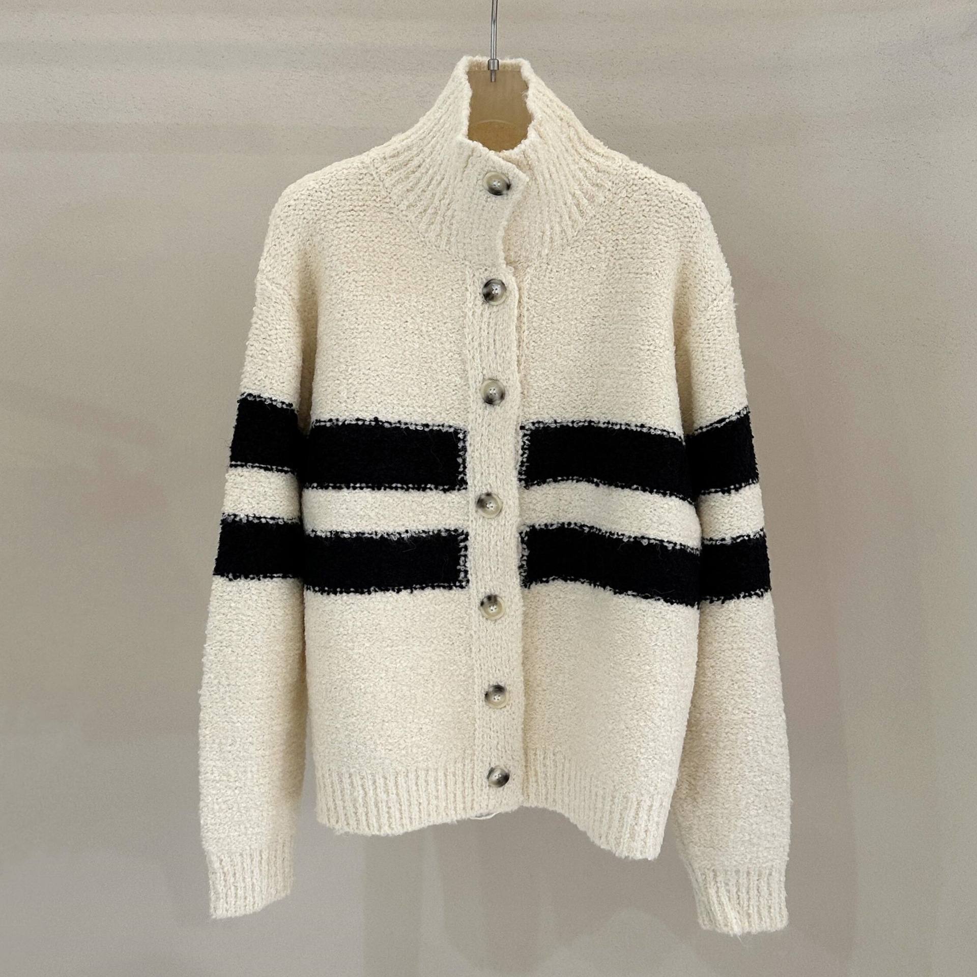 2025 봄과 가을 새로운 루프 원사 부드러운 왁스 색상 대조 줄무늬 니트 스웨터 카디건 여자 느슨한 두꺼운 올 매치 스웨터