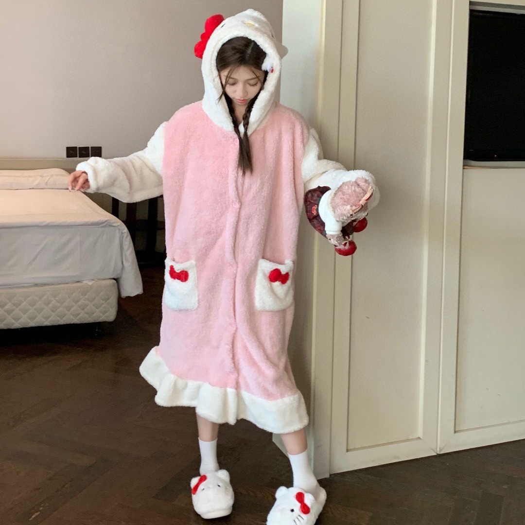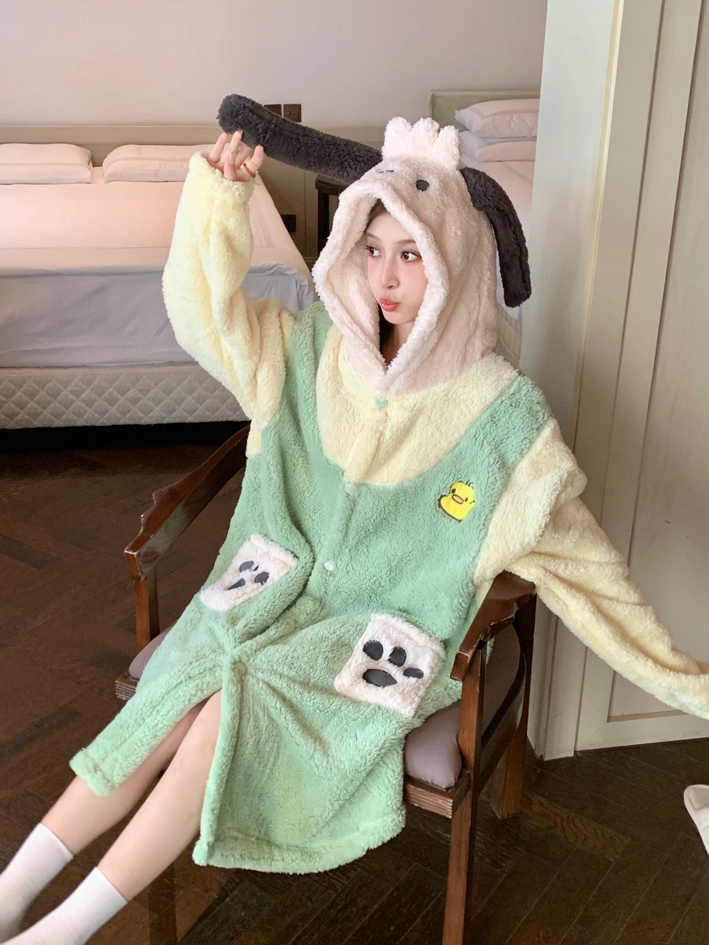 겨울 새로운 귀여운 만화 KT 고양이 잠옷 Pacha 개 두꺼운 산호 벨벳 잠옷 Yugu이 개 여성 홈웨어스토어 가기