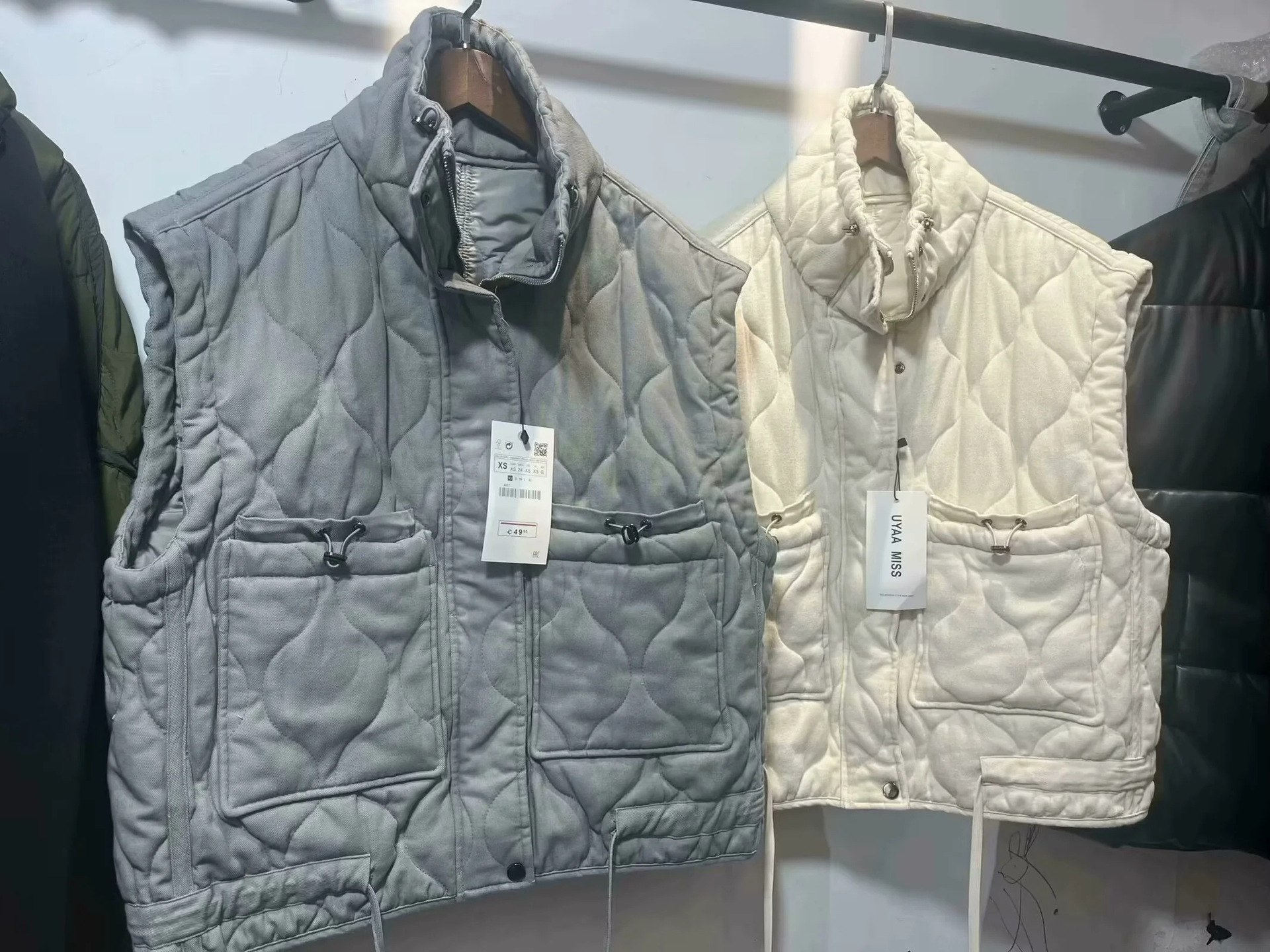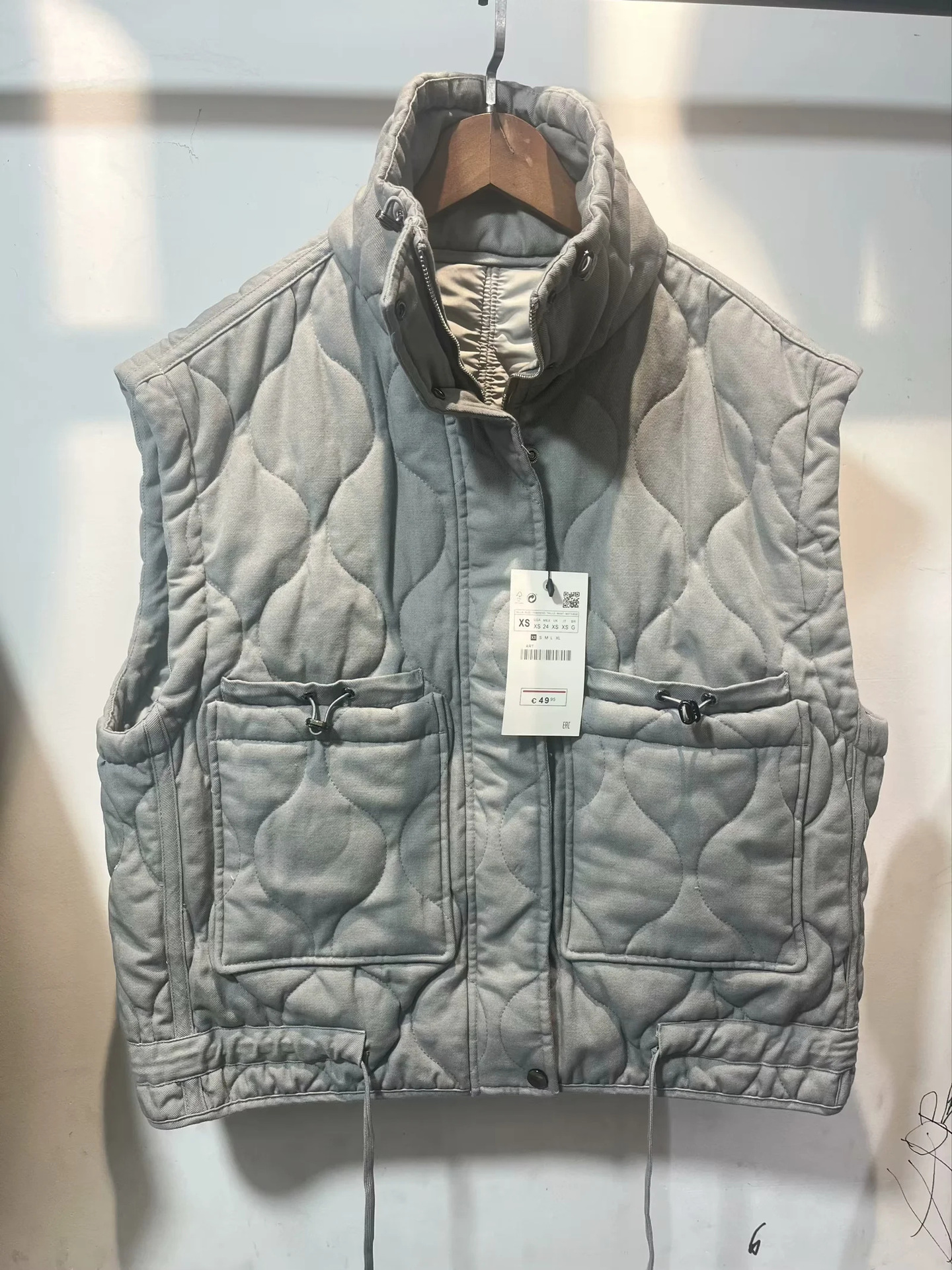 국경 간 유럽 및 미국 여성 AliExpress 폭발 캐주얼 마름모꼴 그레이 칼라 민소매 면 패딩 재킷 조끼스토어 가기