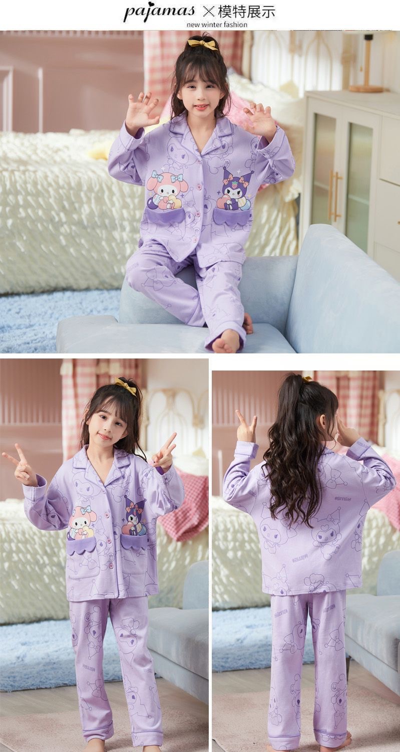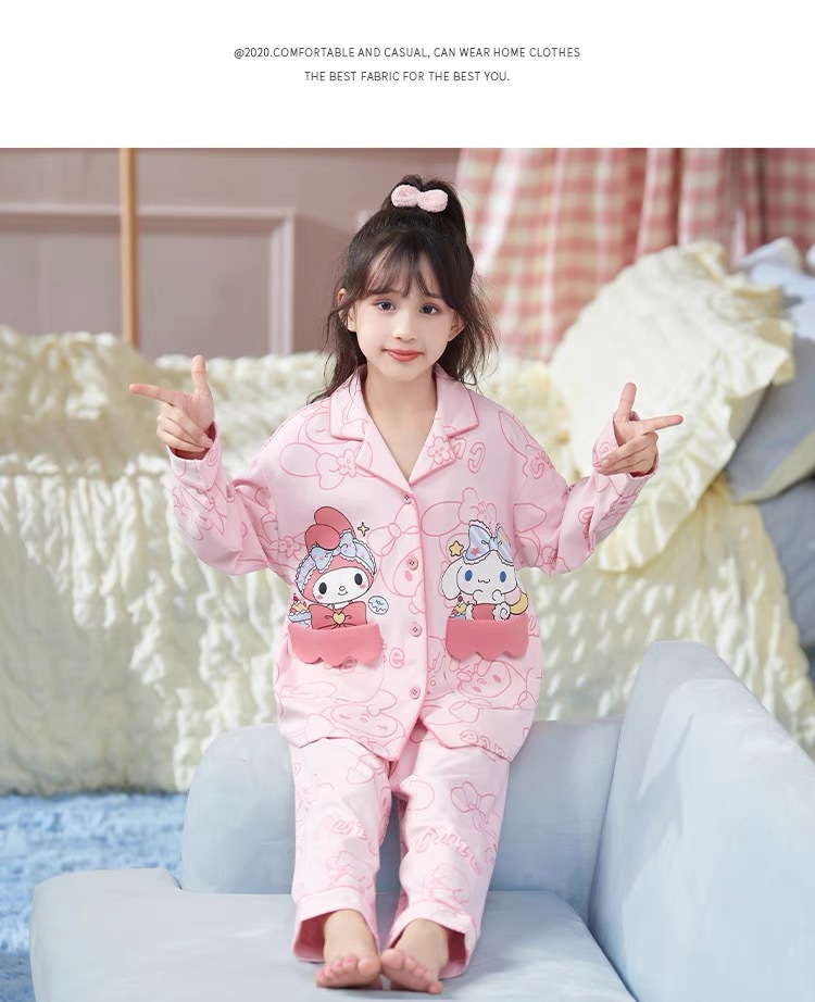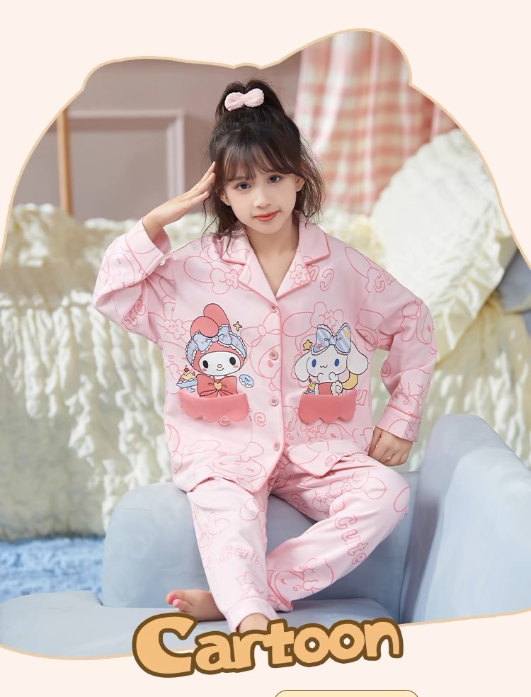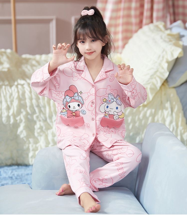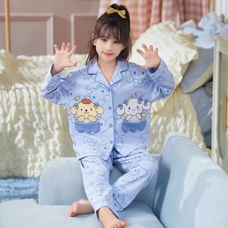 동남 아시아 어린이 잠옷 소녀의 봄과 가을 긴 소매 중대형 어린이 부모-자녀 어머니 드레스 어린이 카디건 세트 홈 옷스토어 가기