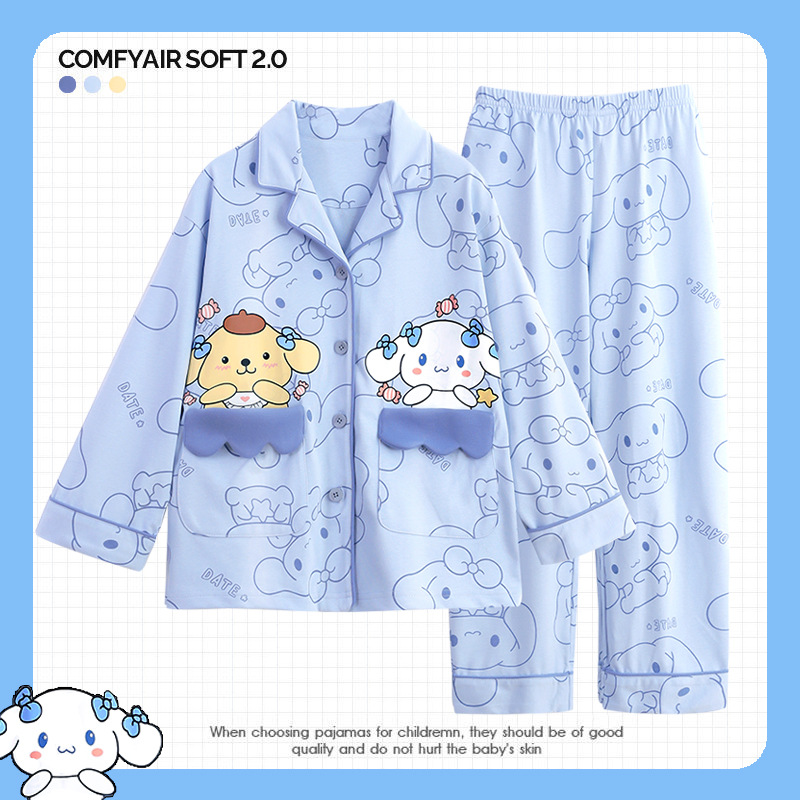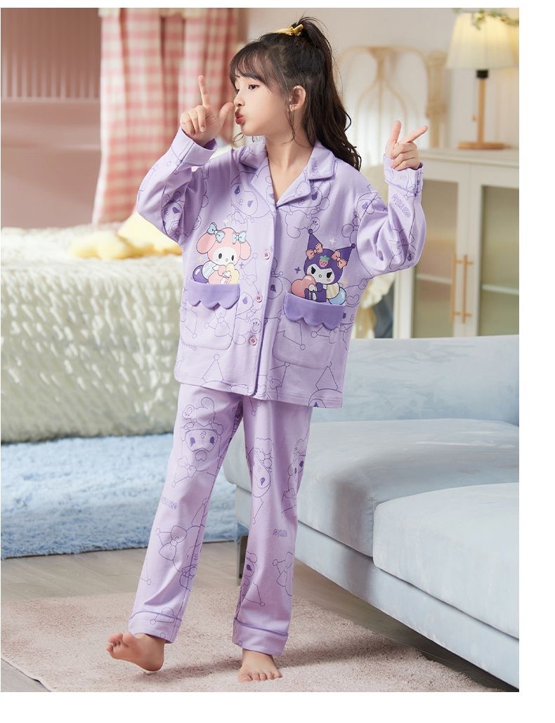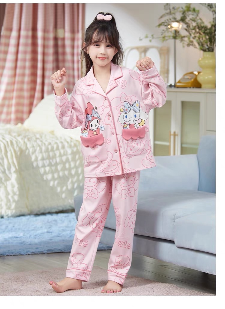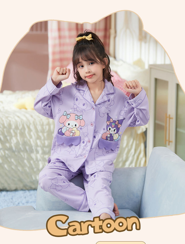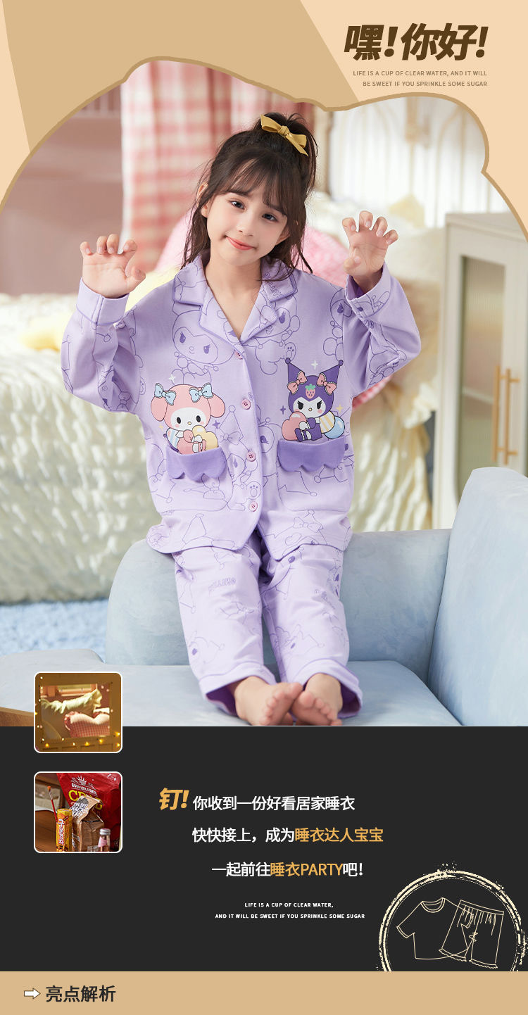 동남 아시아 어린이 잠옷 소녀의 봄과 가을 긴 소매 중대형 어린이 부모-자녀 어머니 드레스 어린이 카디건 세트 홈 옷스토어 가기