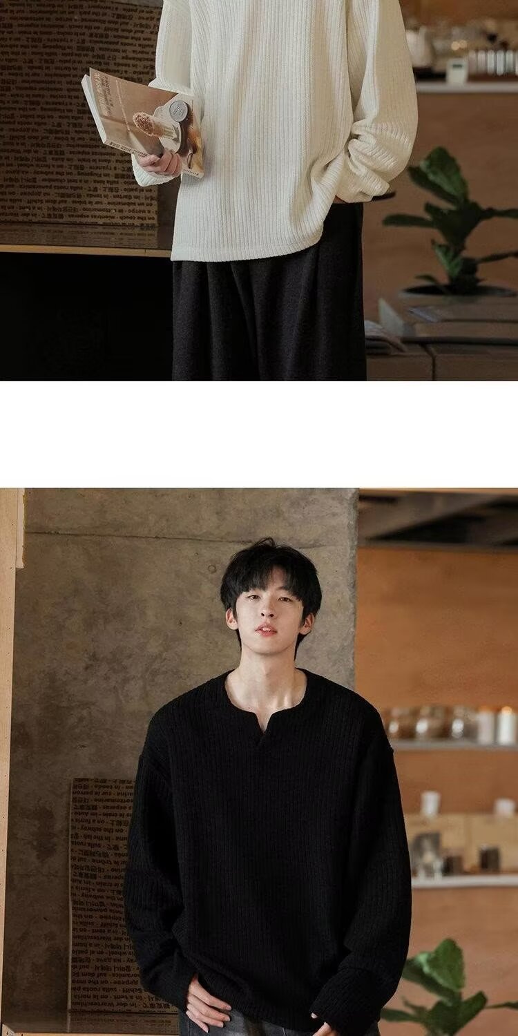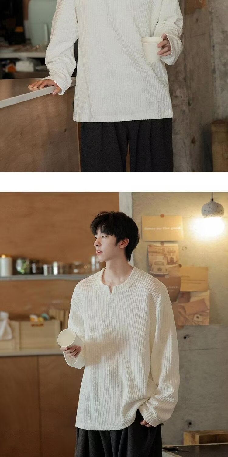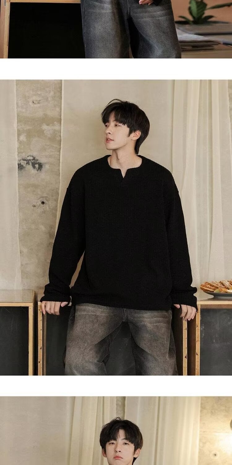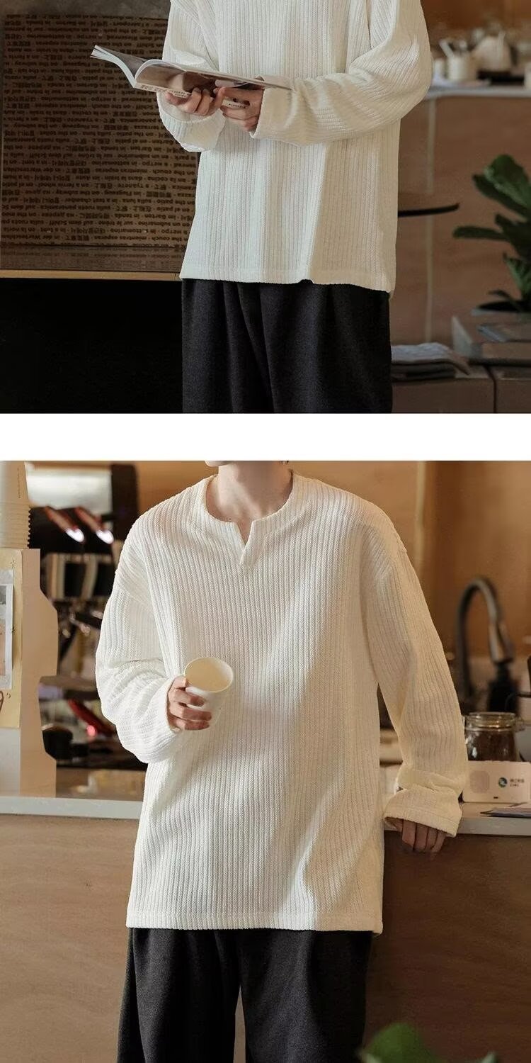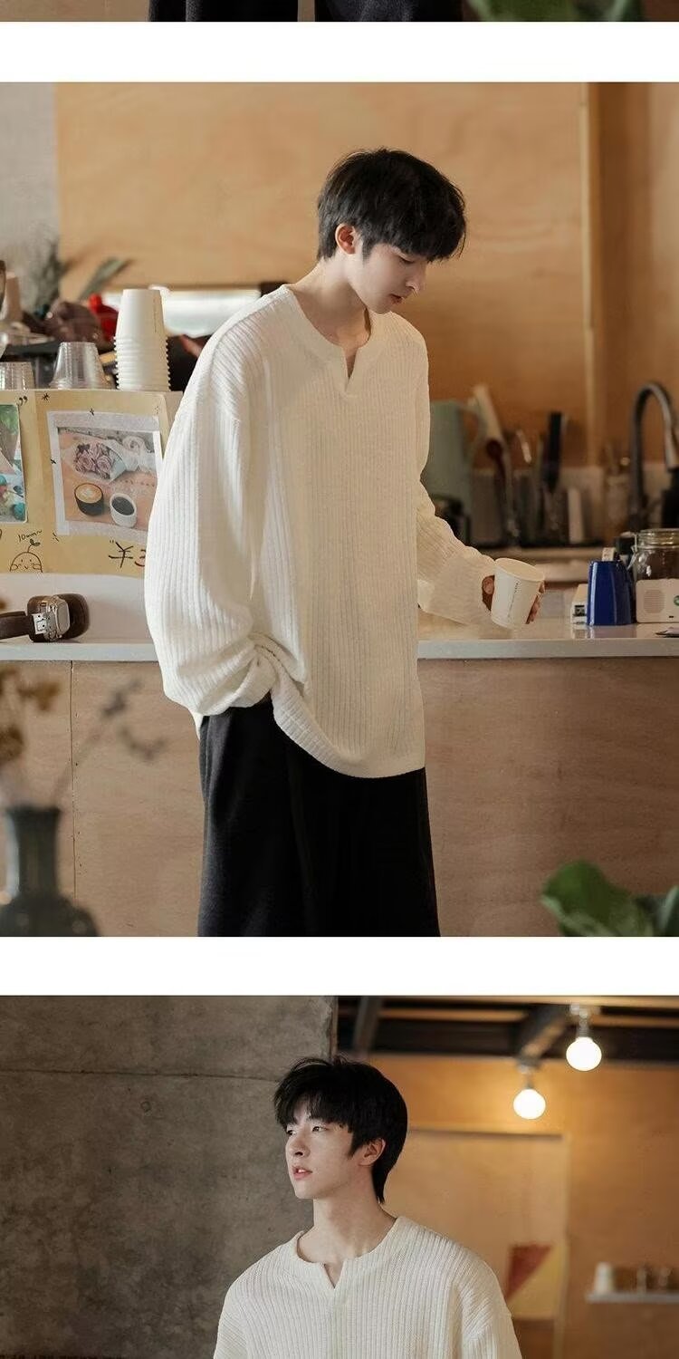 게으른 스타일 질감 감각 작은 V 넥 긴팔 티셔츠 남성 봄과 가을 내베이스 셔츠 웨이 옷 미국 스타일 유행 브랜드 루즈