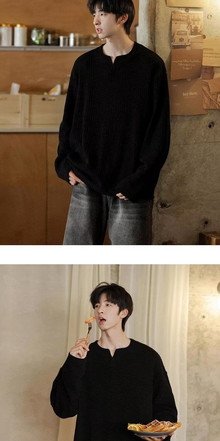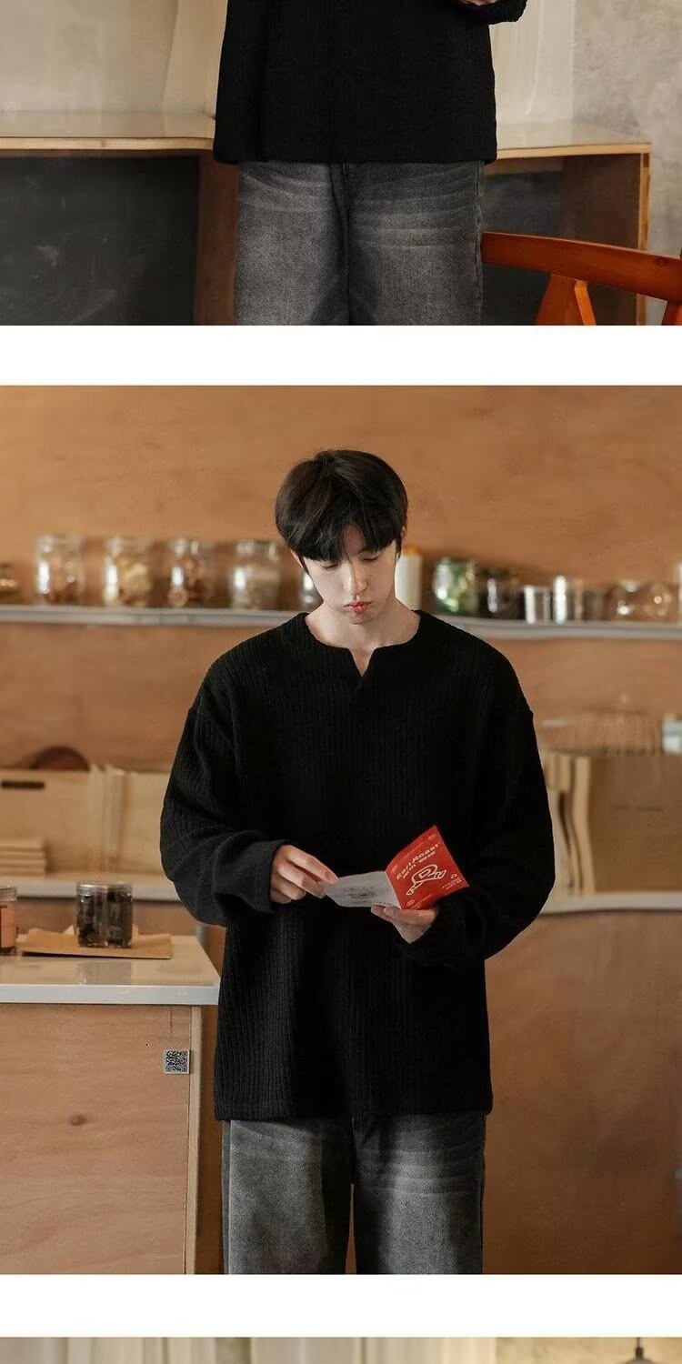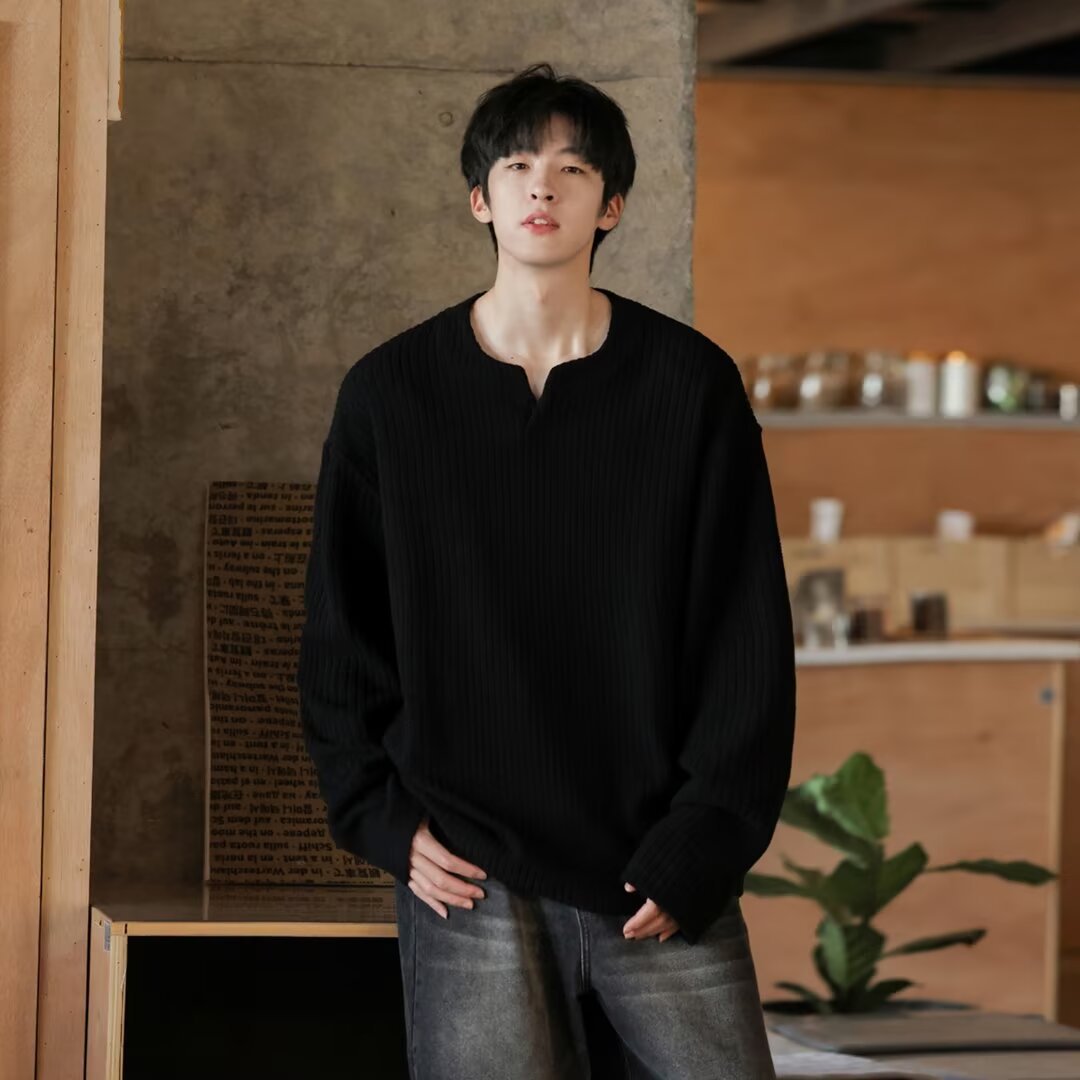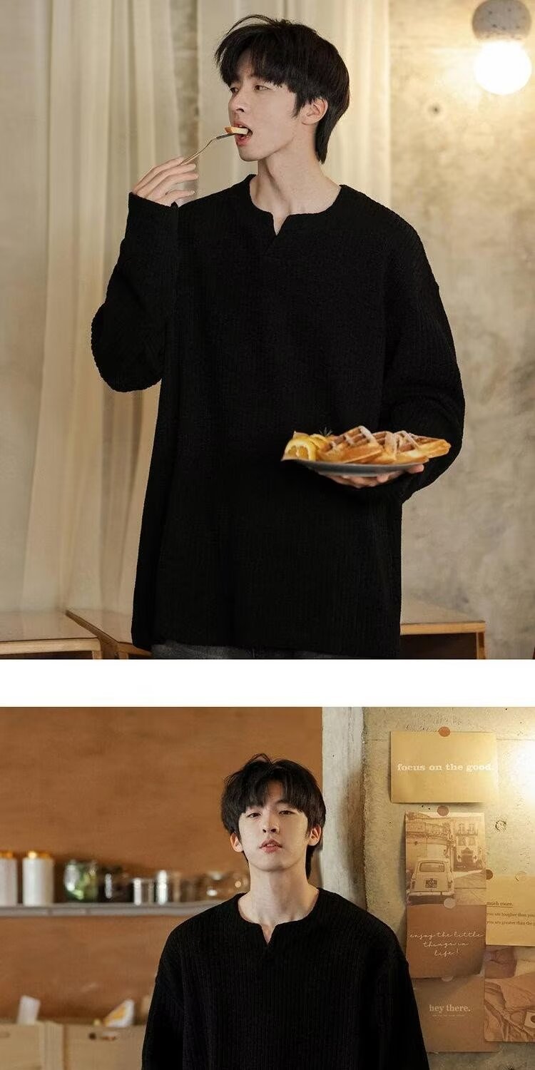 게으른 스타일 질감 감각 작은 V 넥 긴팔 티셔츠 남성 봄과 가을 내베이스 셔츠 웨이 옷 미국 스타일 유행 브랜드 루즈