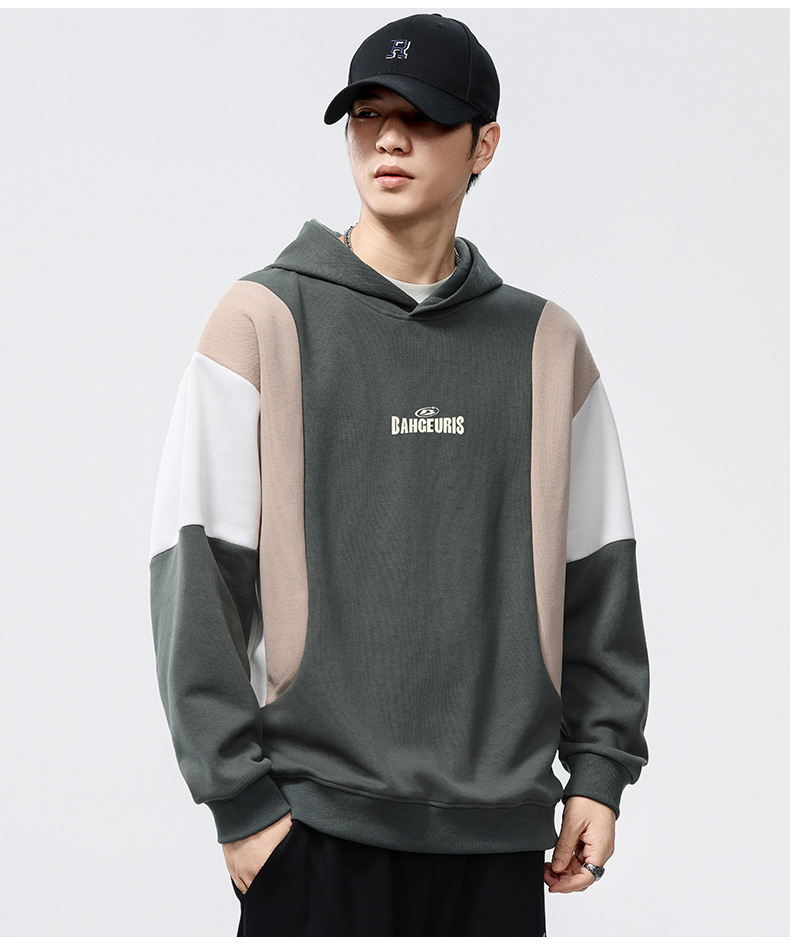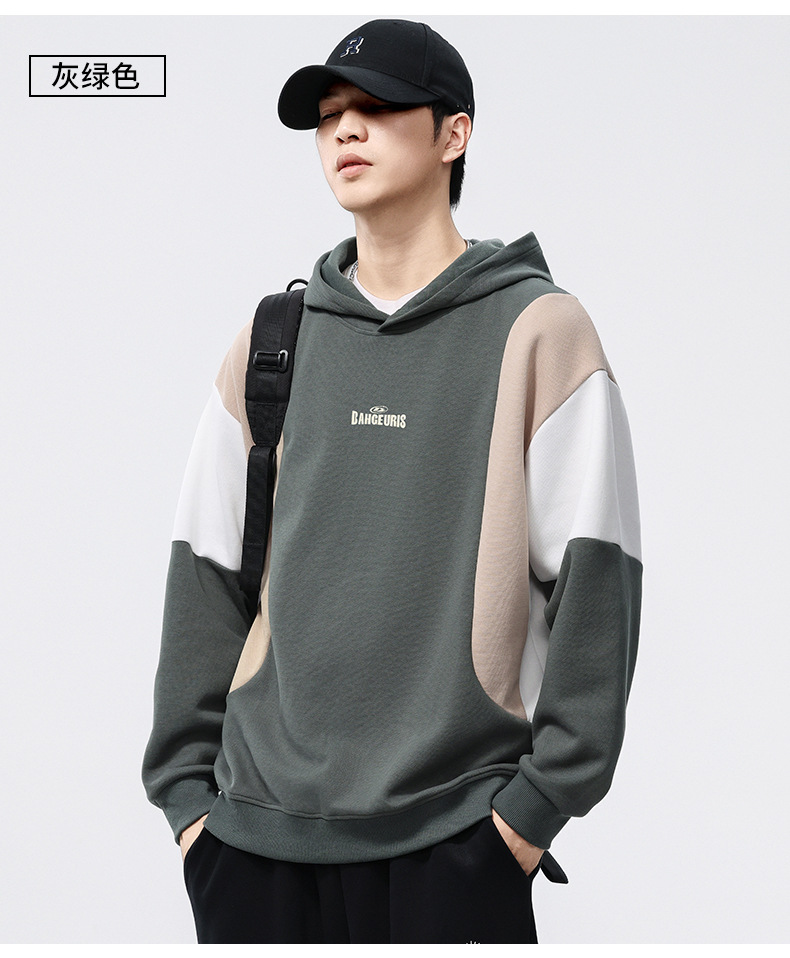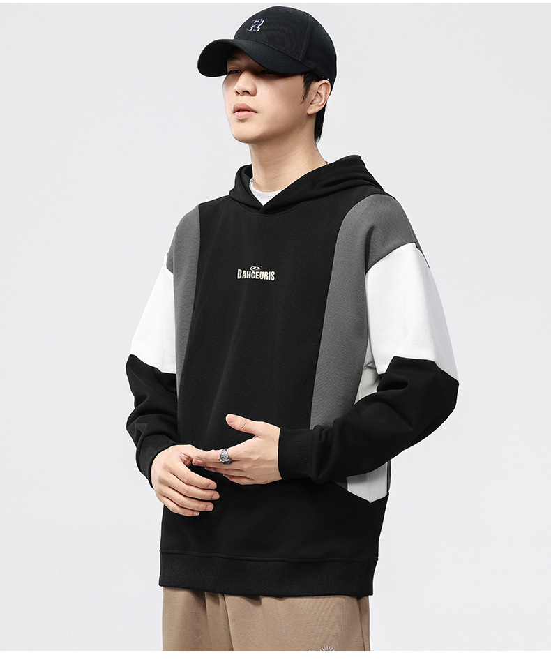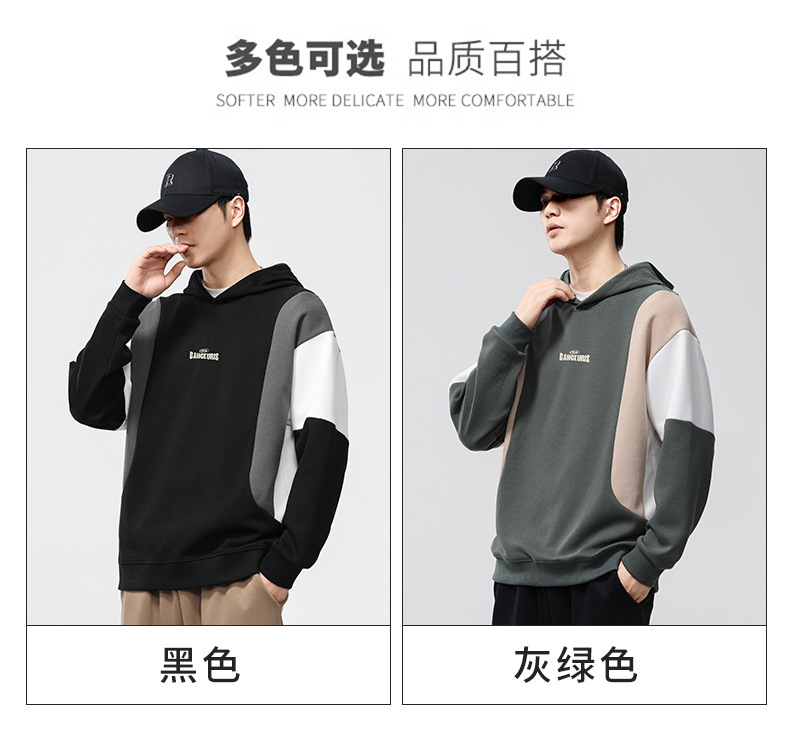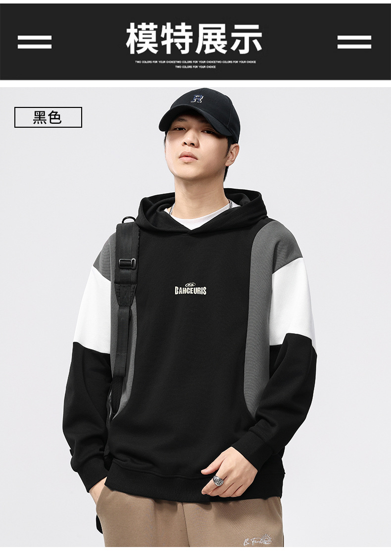F5920 # 플러스 사이즈 남성용 봄 새 330G 헤비 후드 착용 남성용 단순 루즈 콘트라스트 컬러 프린트 재킷스토어 가기