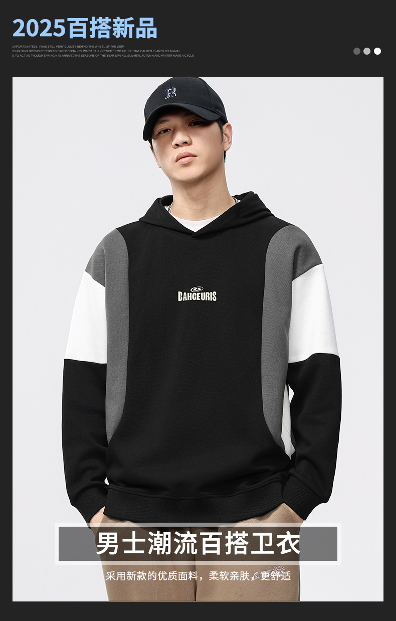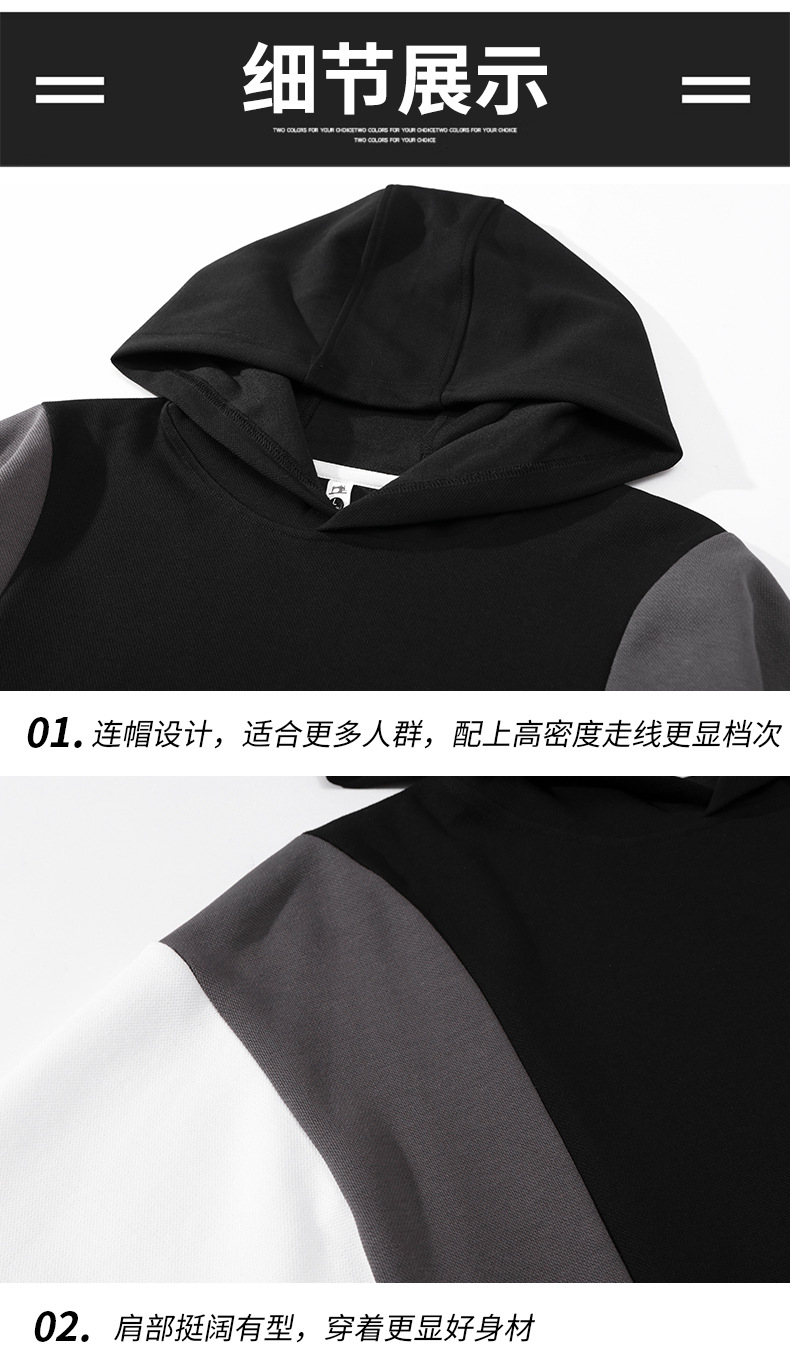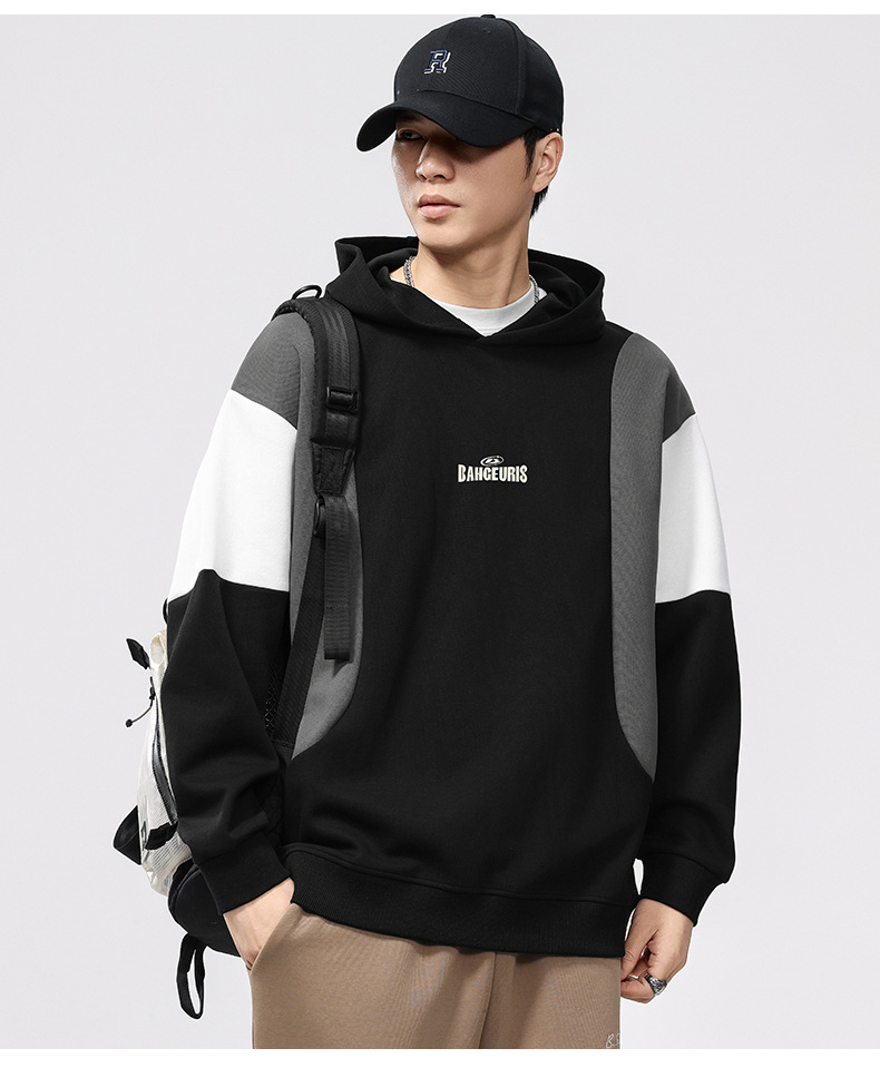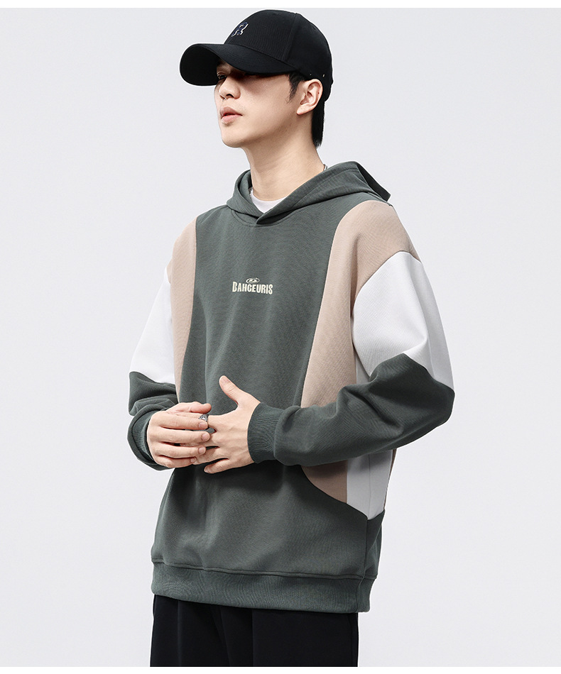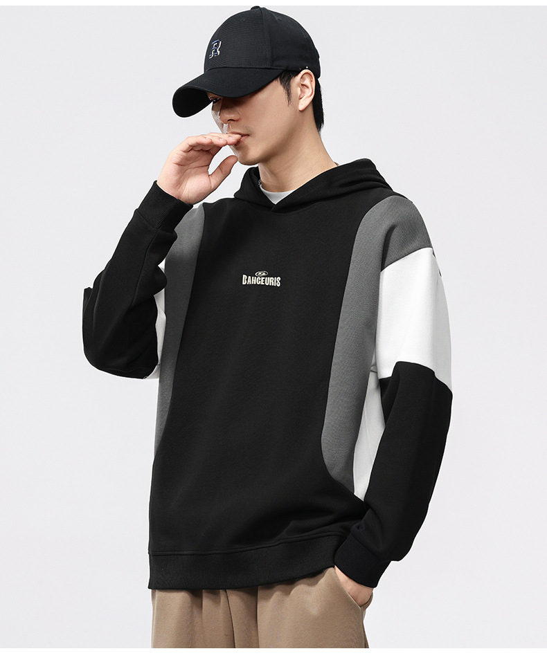 F5920 # 플러스 사이즈 남성용 봄 새 330G 헤비 후드 착용 남성용 단순 루즈 콘트라스트 컬러 프린트 재킷스토어 가기