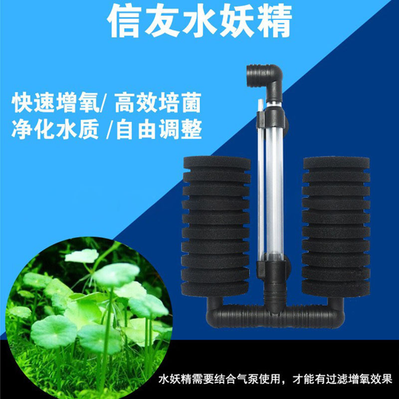 本系列产品,为挂式滤器,吸附于鱼缸壁,采用环保的高级海棉作为滤材,与气泵联用,达到增氧与过滤的双重果功效。