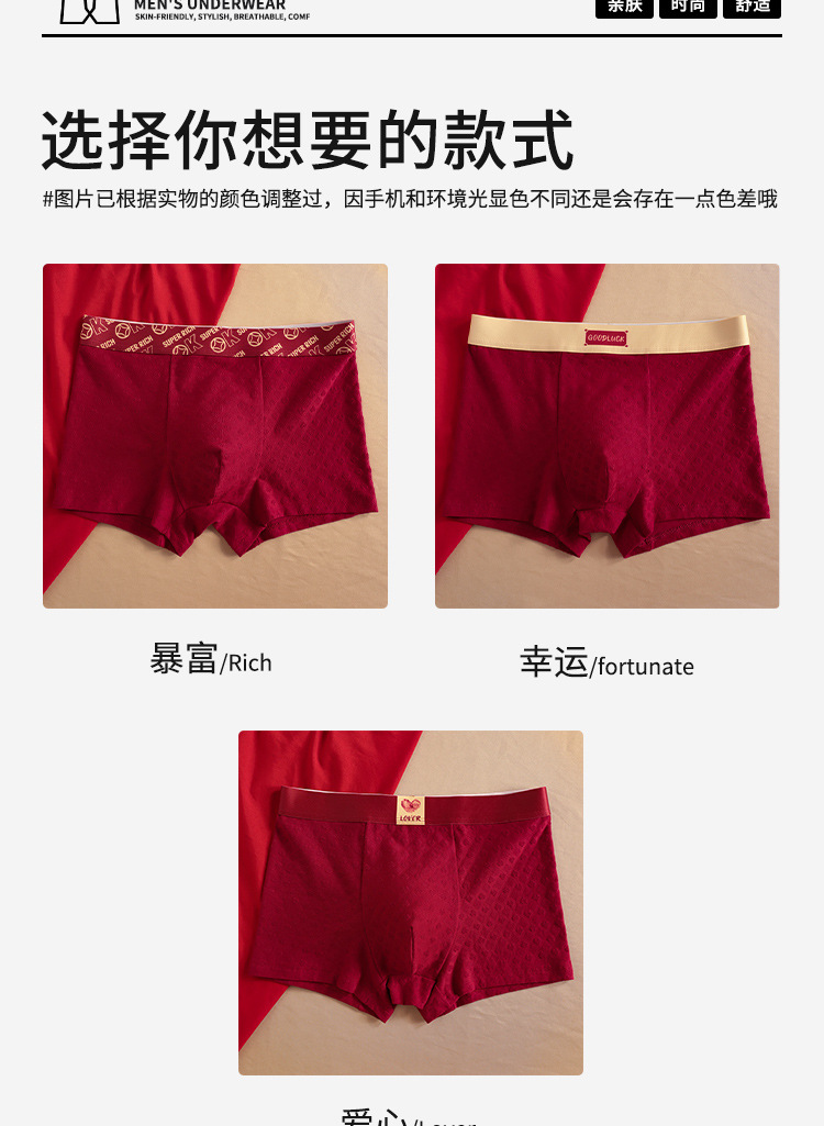 포춘 사랑의 도매 새해 남자 자카드 코튼 레드 속옷 통기성 편안한 권투 선수가 톤 폭발을 흔든다스토어 가기