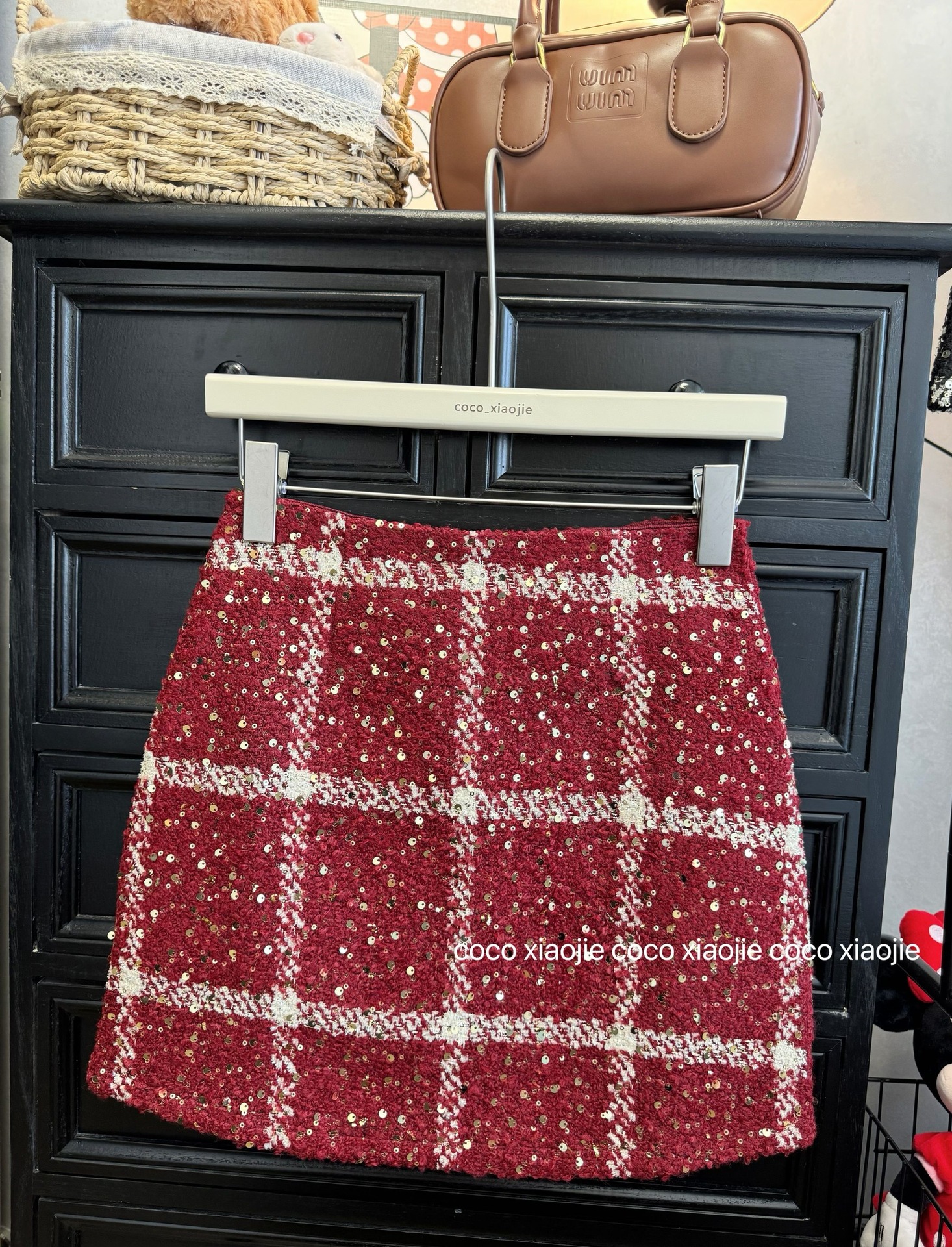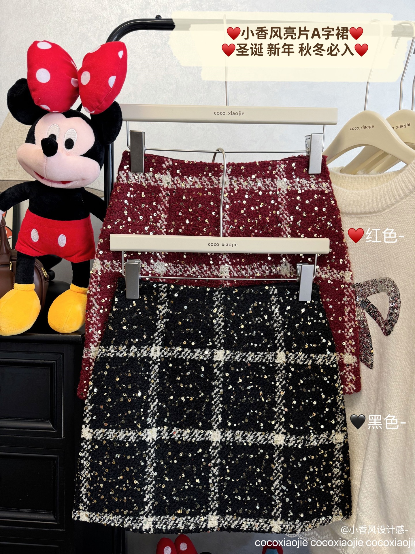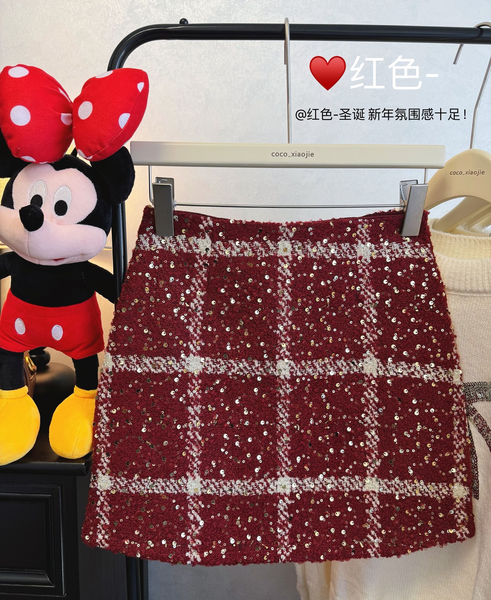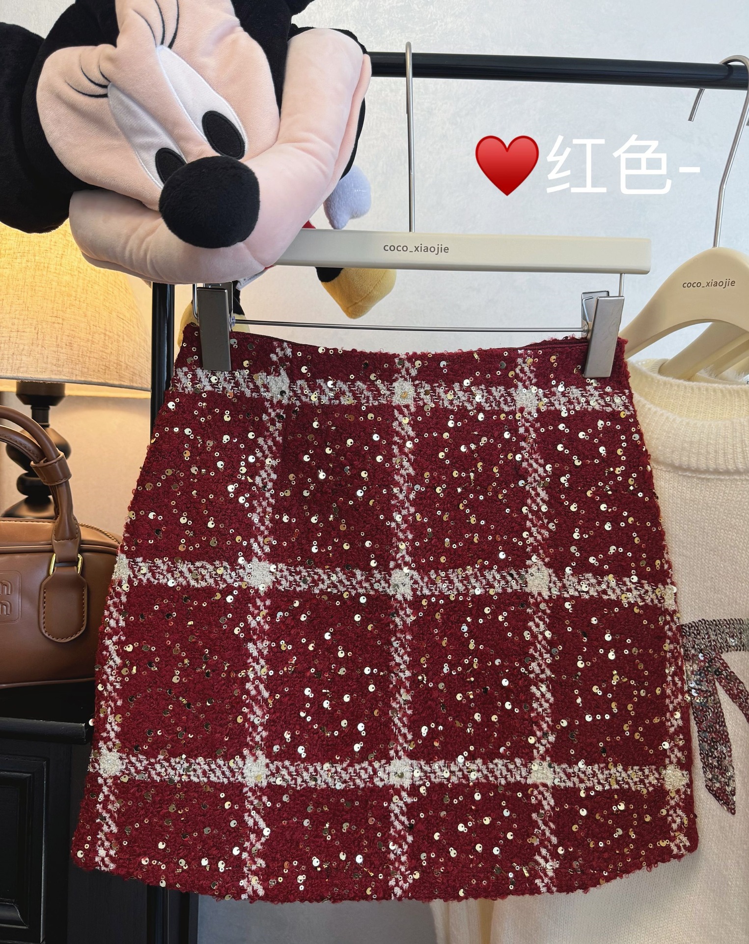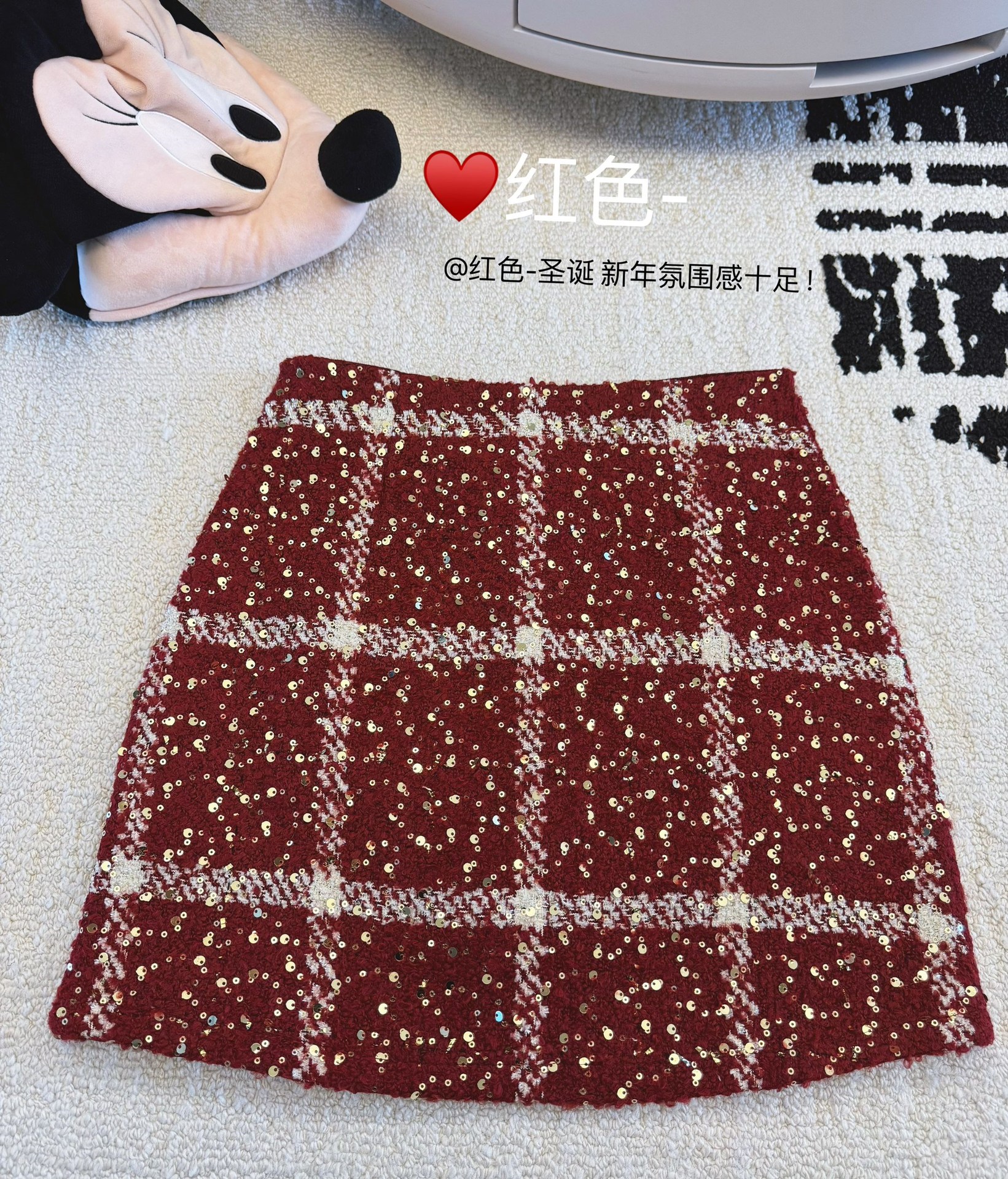 실제 사진 2025~달콤한 레드 색상의 고급스러운 스커트, 새해 분위기, 축제적이고 다재다능한 짧은 A라인 스커트스토어 가기