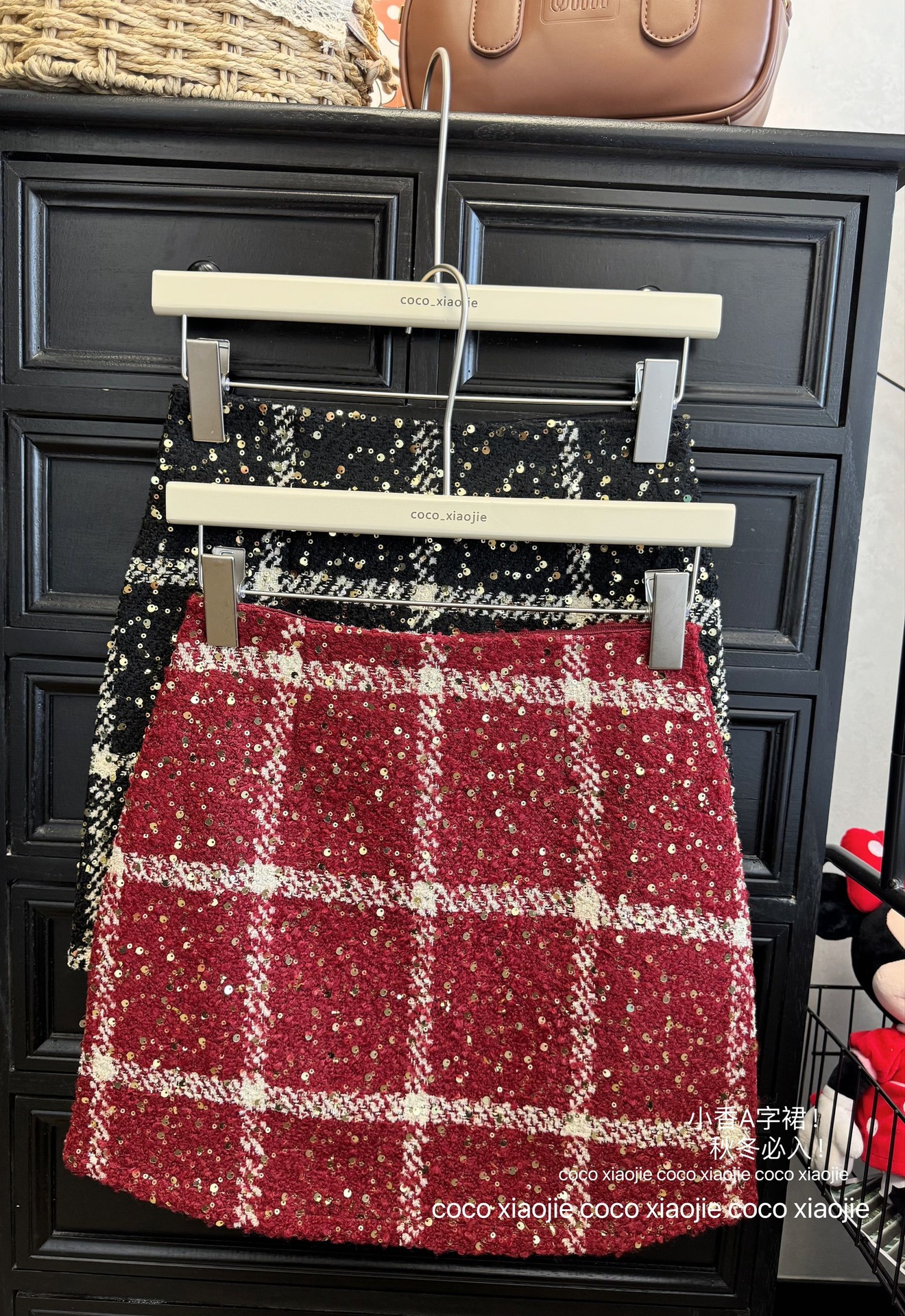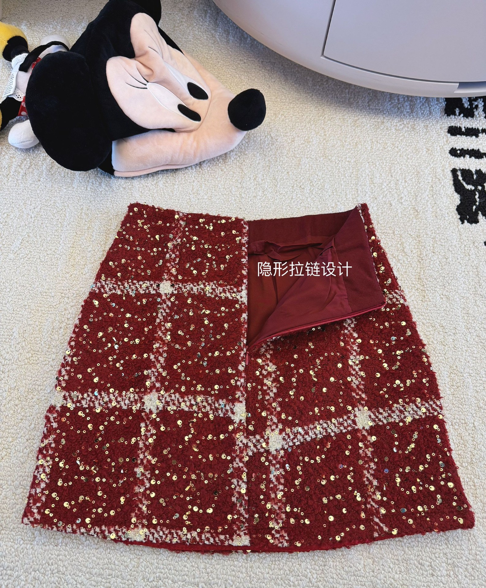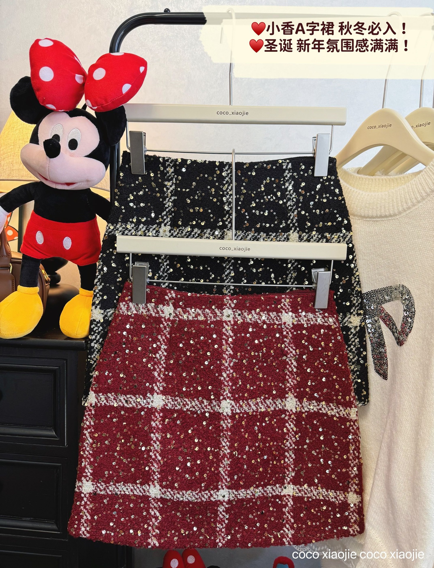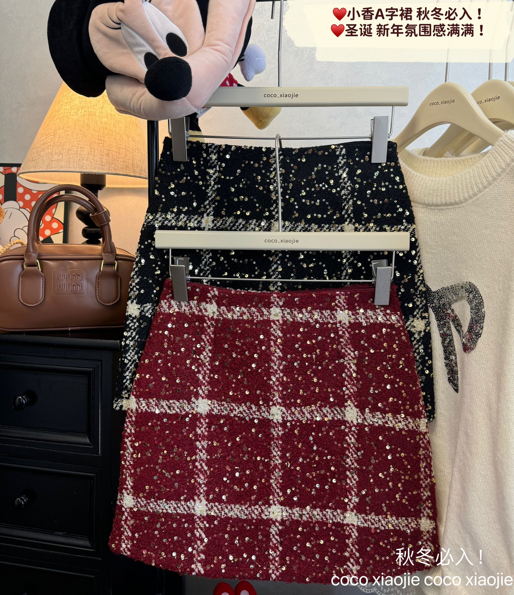 실제 사진 2025~달콤한 레드 색상의 고급스러운 스커트, 새해 분위기, 축제적이고 다재다능한 짧은 A라인 스커트스토어 가기