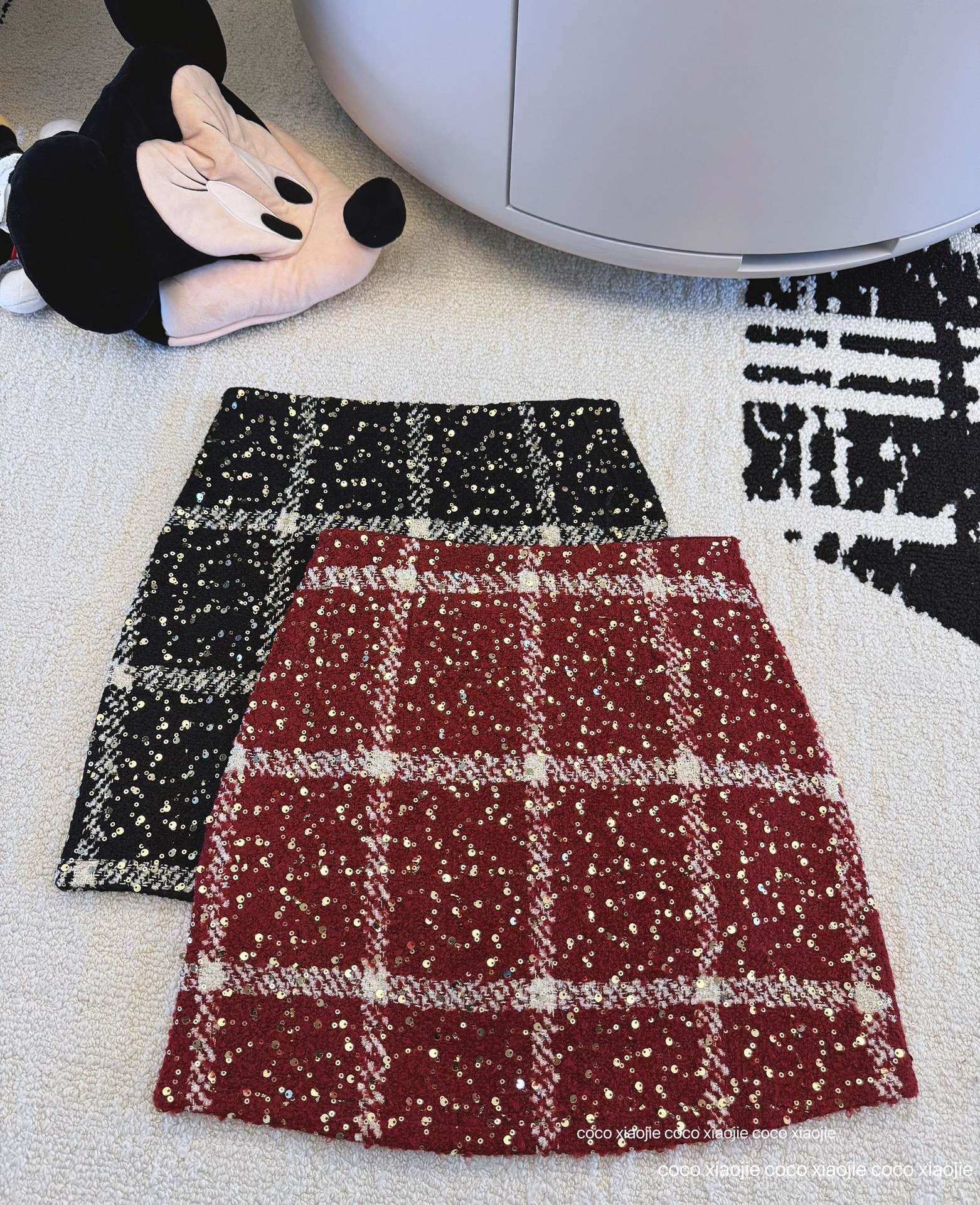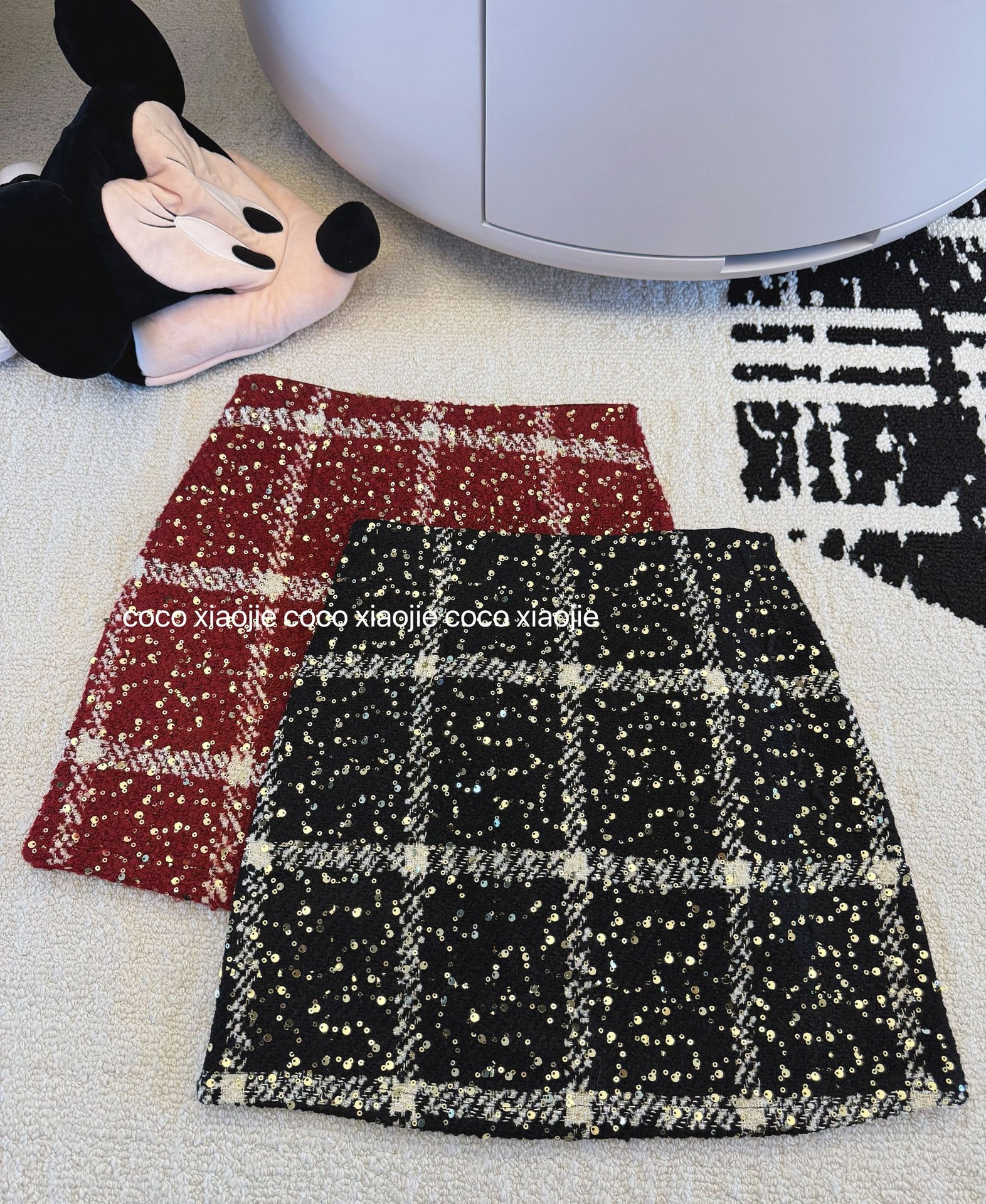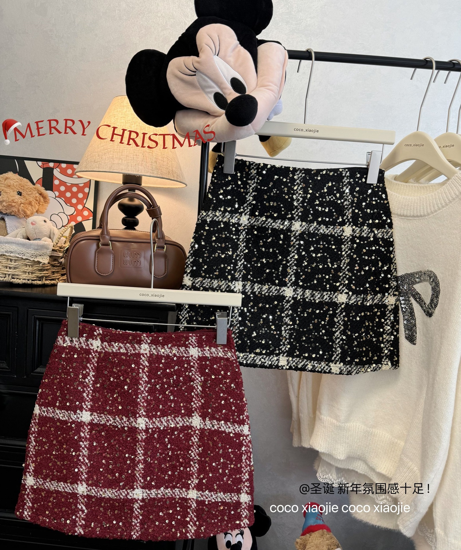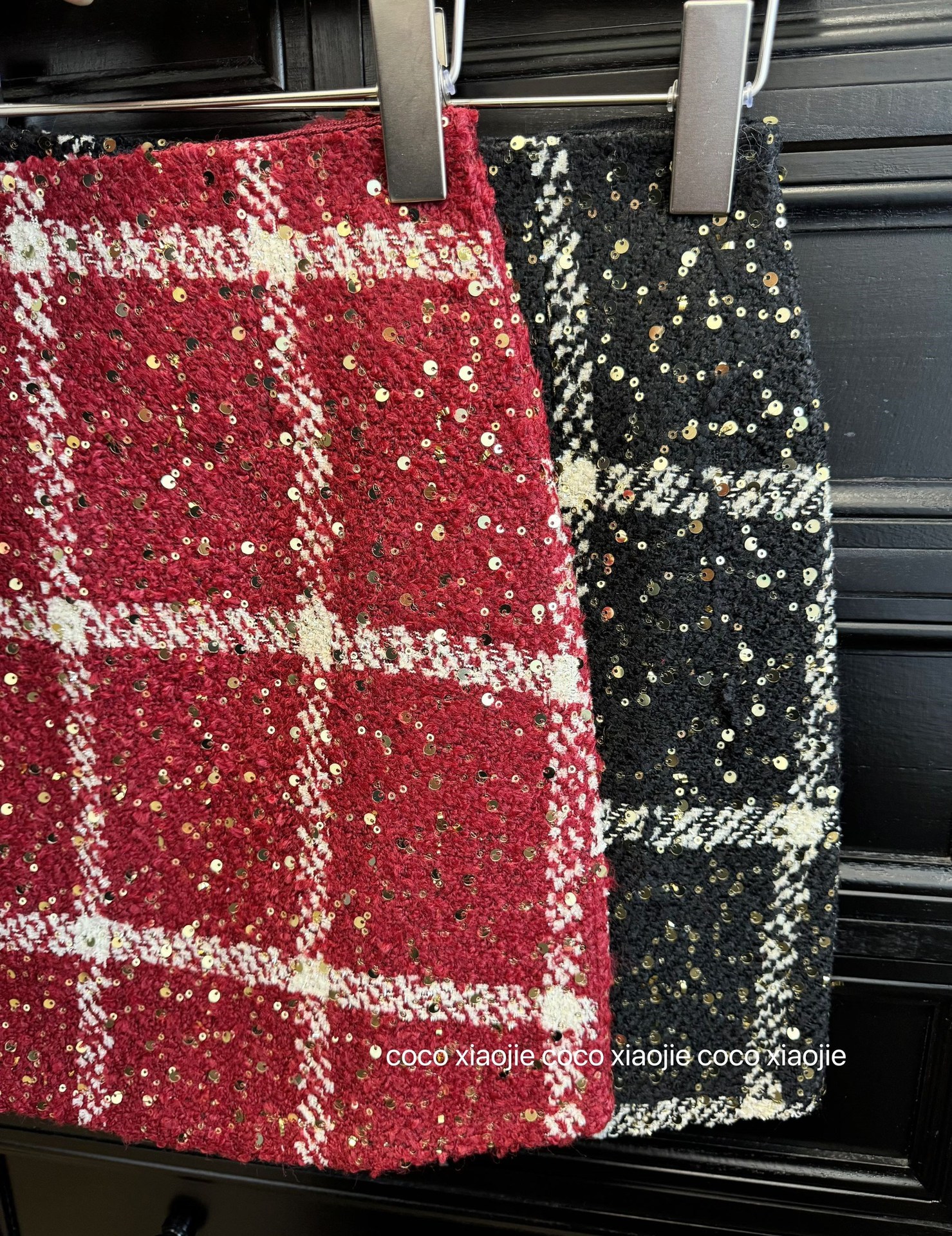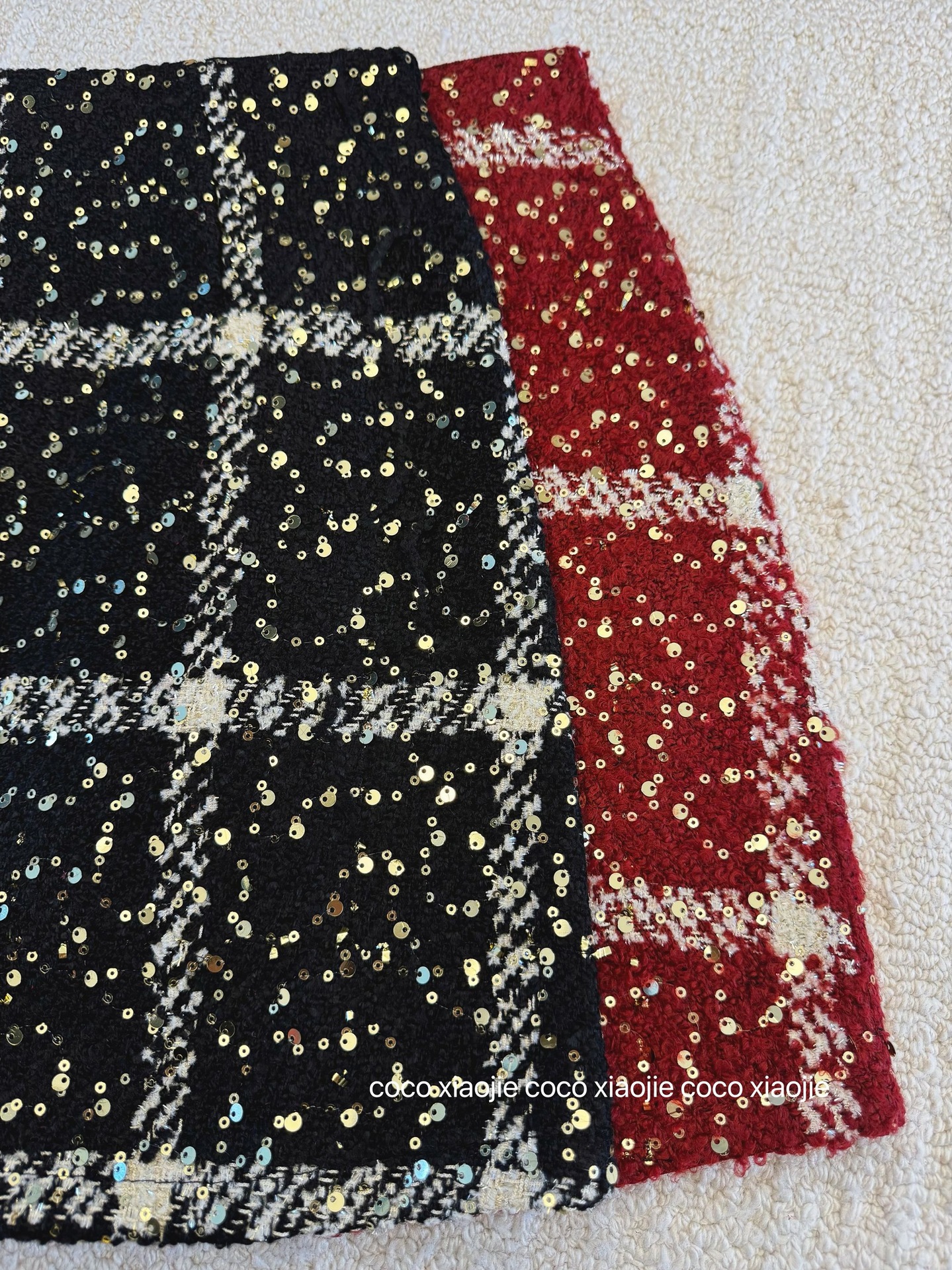 실제 사진 2025~달콤한 레드 색상의 고급스러운 스커트, 새해 분위기, 축제적이고 다재다능한 짧은 A라인 스커트스토어 가기