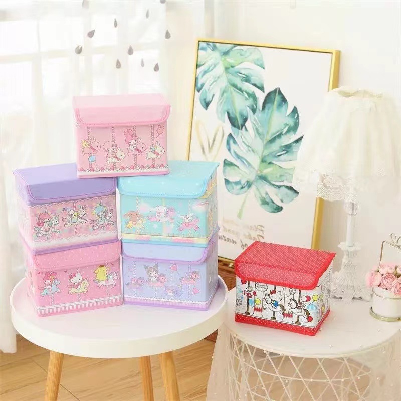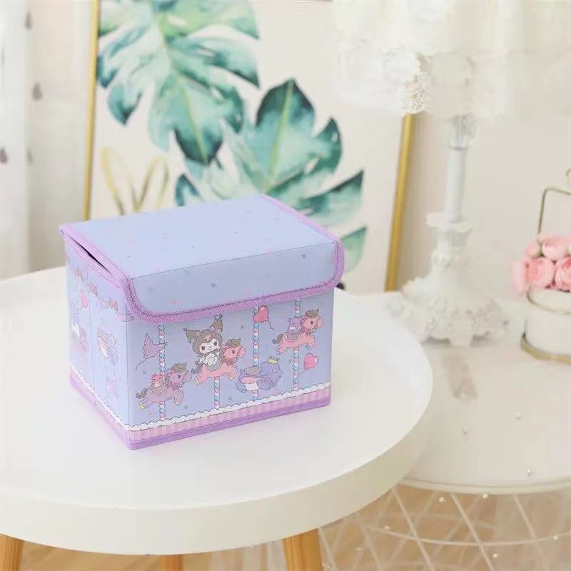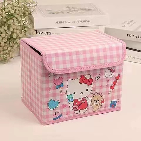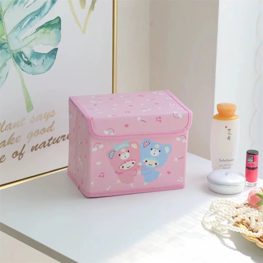 만화 PU 스퀘어 시리즈 플립 데스크탑 작은 저장 상자 사무실 침실 옷장 드레싱 테이블 접이식스토어 가기
