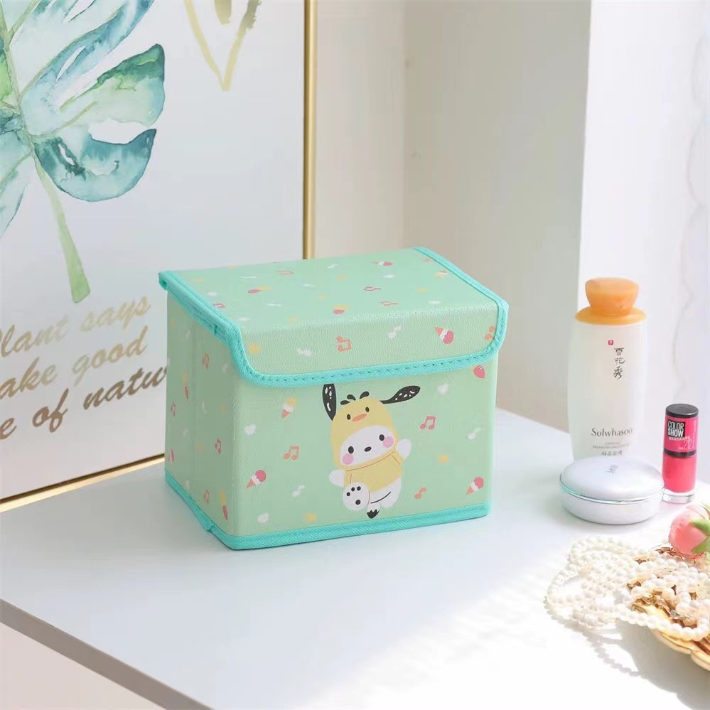 만화 PU 스퀘어 시리즈 플립 데스크탑 작은 저장 상자 사무실 침실 옷장 드레싱 테이블 접이식