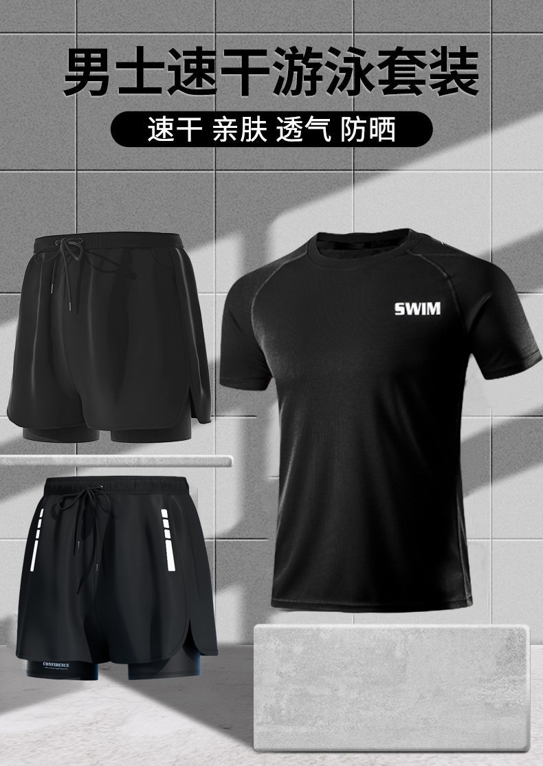 남자 수영 트렁크 수영복 세트 풀 스파 전문 수영 훈련 빠른 건조 다이빙 세트 2025 새로운 서핑 세트