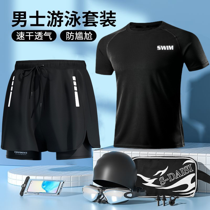 남자 수영 트렁크 수영복 세트 풀 스파 전문 수영 훈련 빠른 건조 다이빙 세트 2025 새로운 서핑 세트스토어 가기