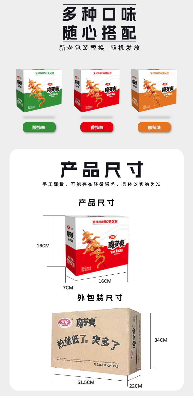 Wei Long konjac 시원한 15g * 20 봉지 박스와 매운 채식 트립 캐주얼 매운 간식 도매스토어 가기