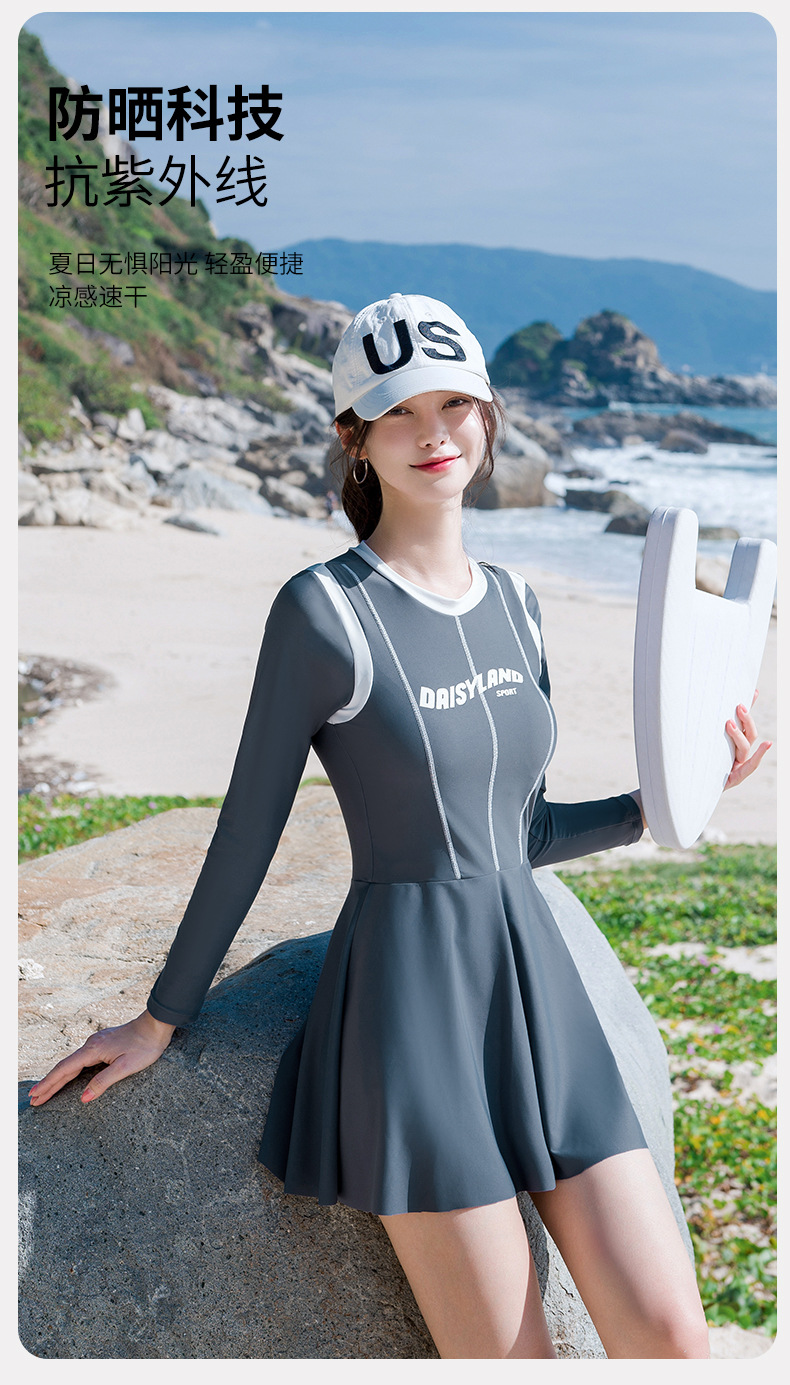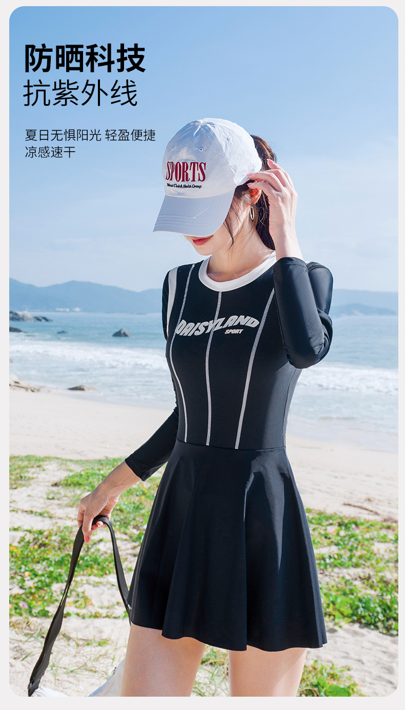 2025 새로운 선 스크린 긴팔 슬림 핏 슬림 핏 보수적 인 스커트 원피스 수영복 복서 통통한 플러스 사이즈 수영복스토어 가기