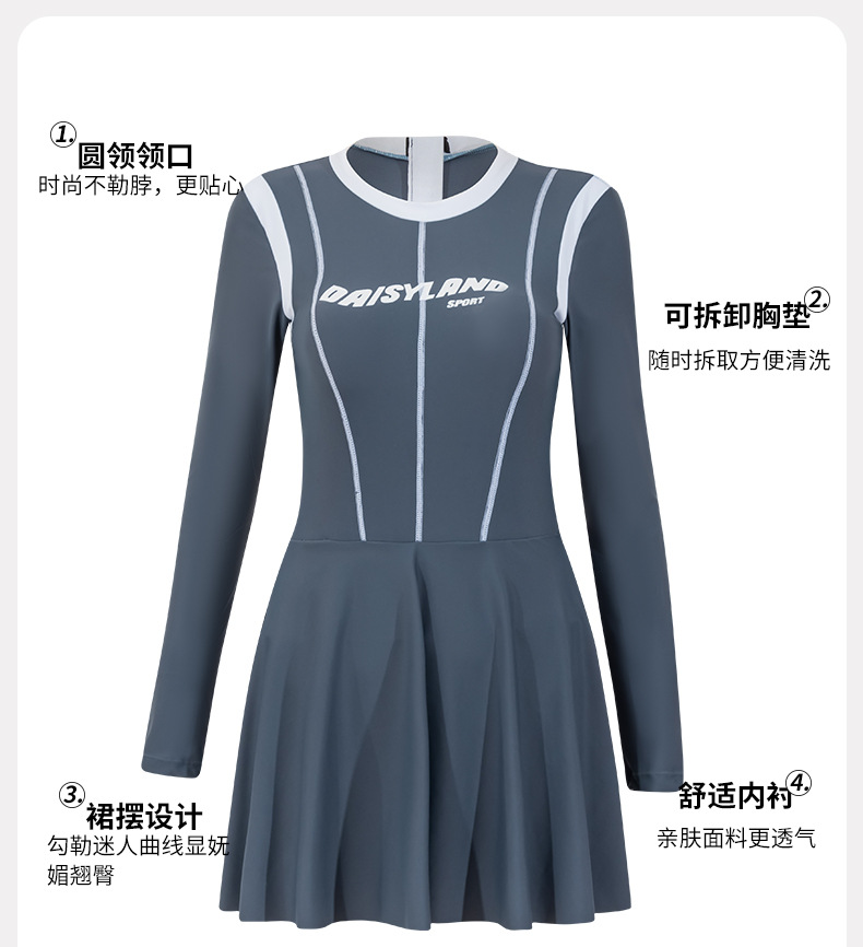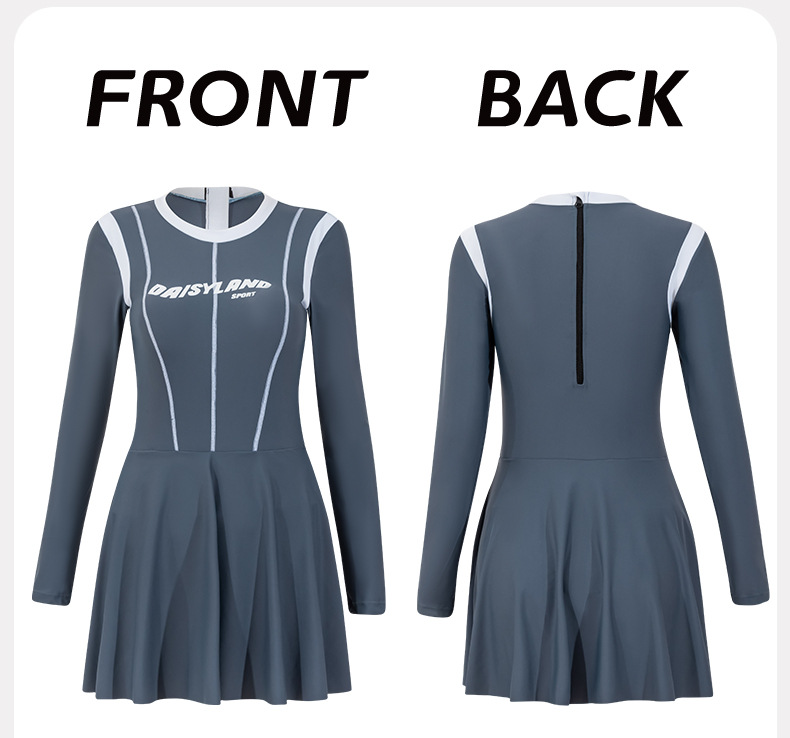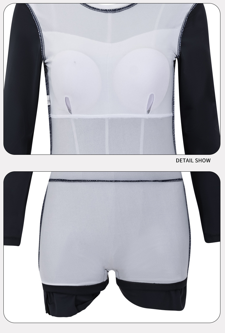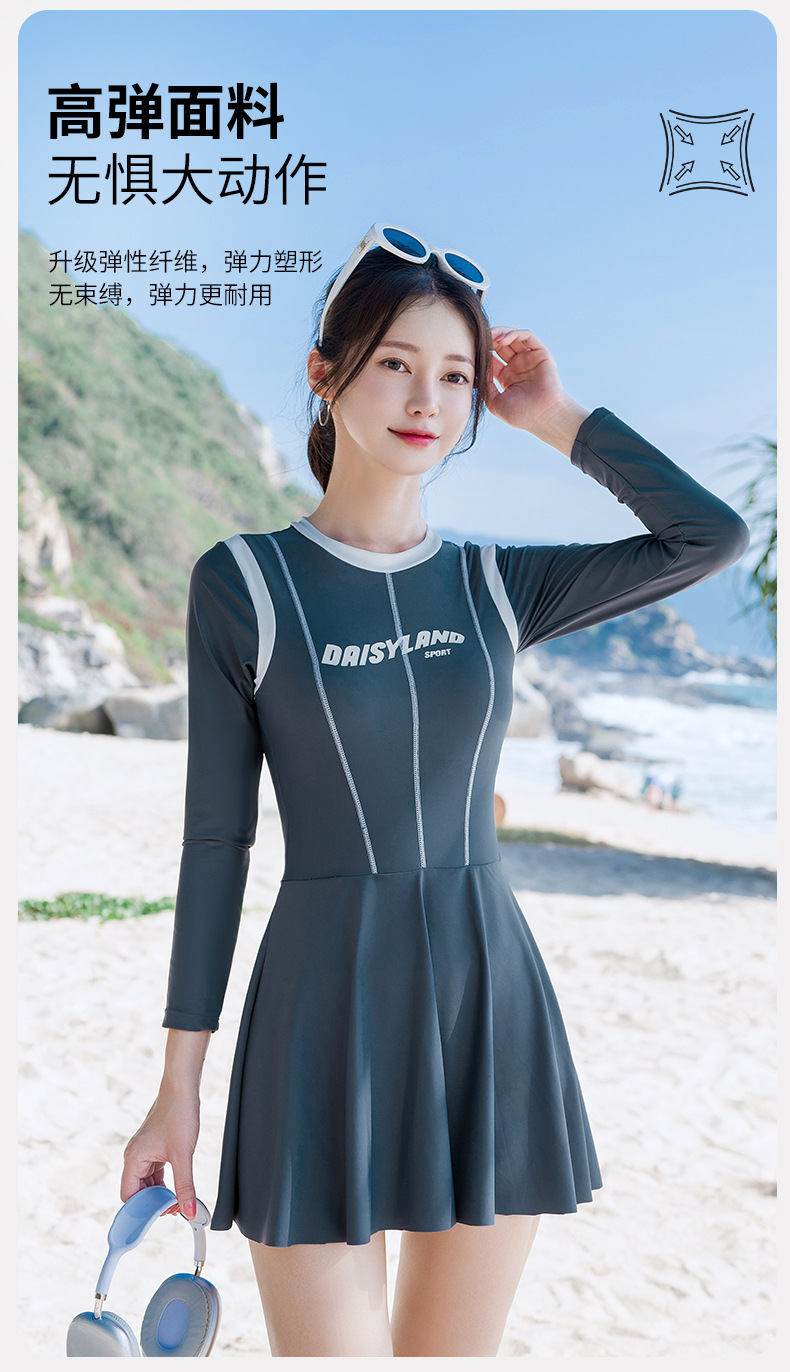 2025 새로운 선 스크린 긴팔 슬림 핏 슬림 핏 보수적 인 스커트 원피스 수영복 복서 통통한 플러스 사이즈 수영복
