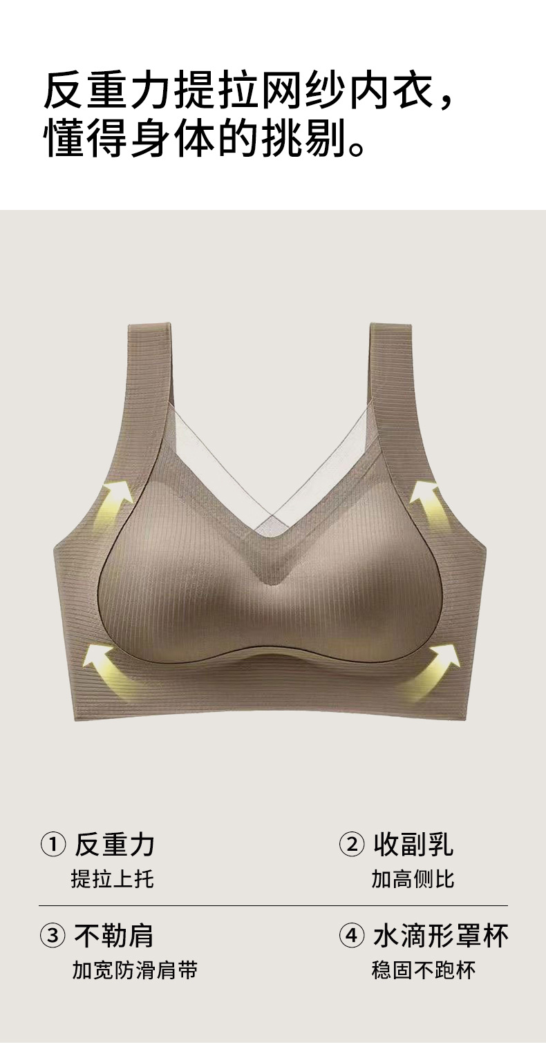 새로운 원활한 안티 중력 리프팅 메쉬 속옷 여성용 푸시 업 조정 가능한 스틸 링 브라