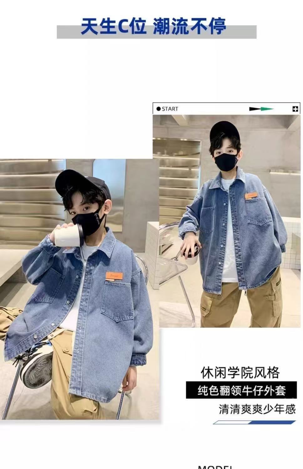 소년의 봄과 가을 데님 재킷 어린이 2025 새로운 스타일 빅 보이 가을 프라이드 스트리트 가을 패션 재킷스토어 가기