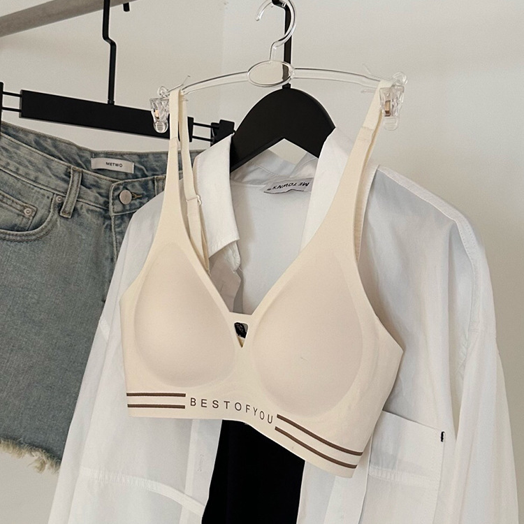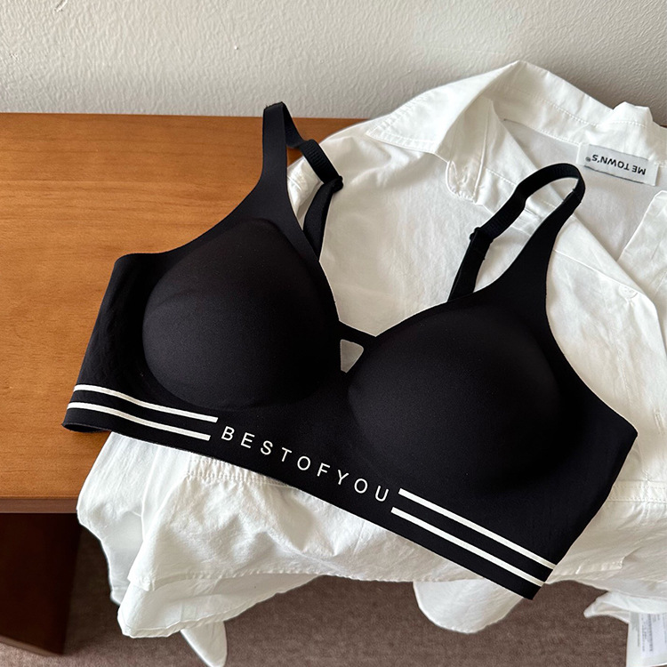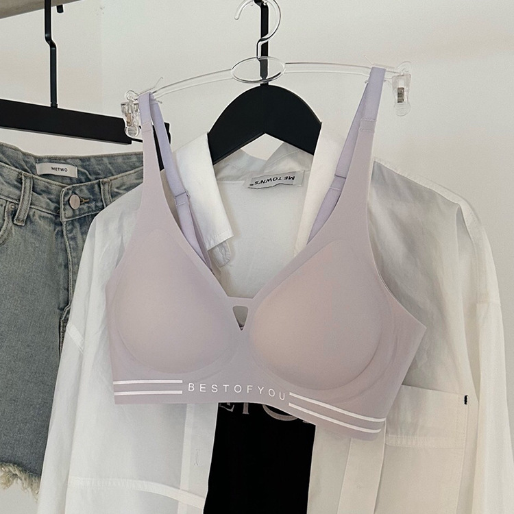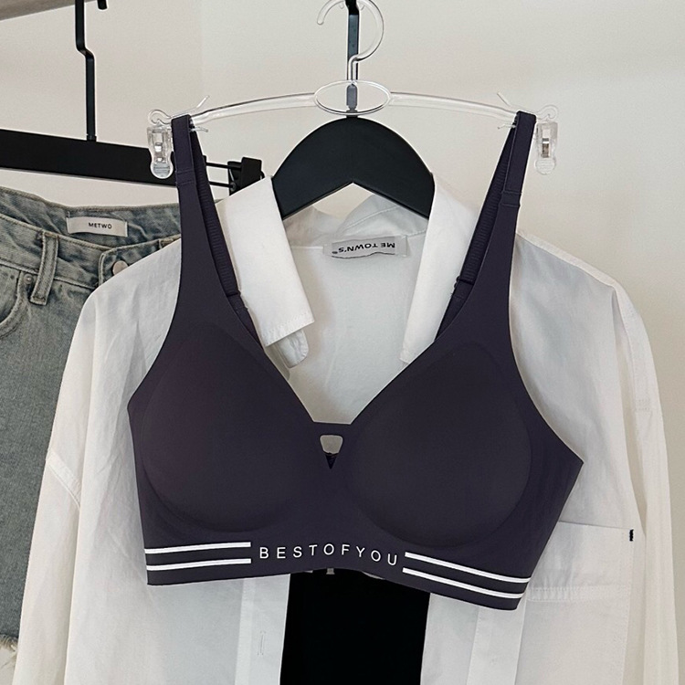 2025 새로운 글로우 마크 레터 스포츠 속옷 여성의 편안한 젤리 스트립 작은 가슴 푸시 업 스틸 링 브라스토어 가기