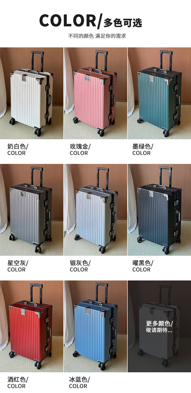 도매 세대 헤어 알루미늄 프레임 트롤리 케이스 남성과 여성의 보편적 인 휠 가방 패션 아침 암호 상자 학생 비밀번호 가방스토어 가기