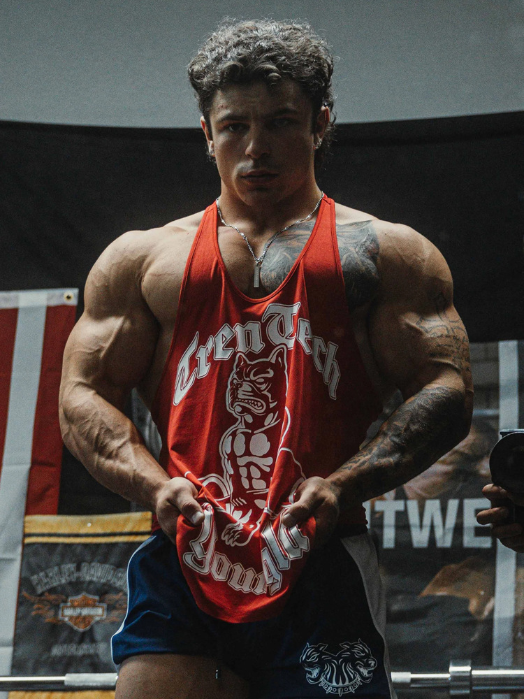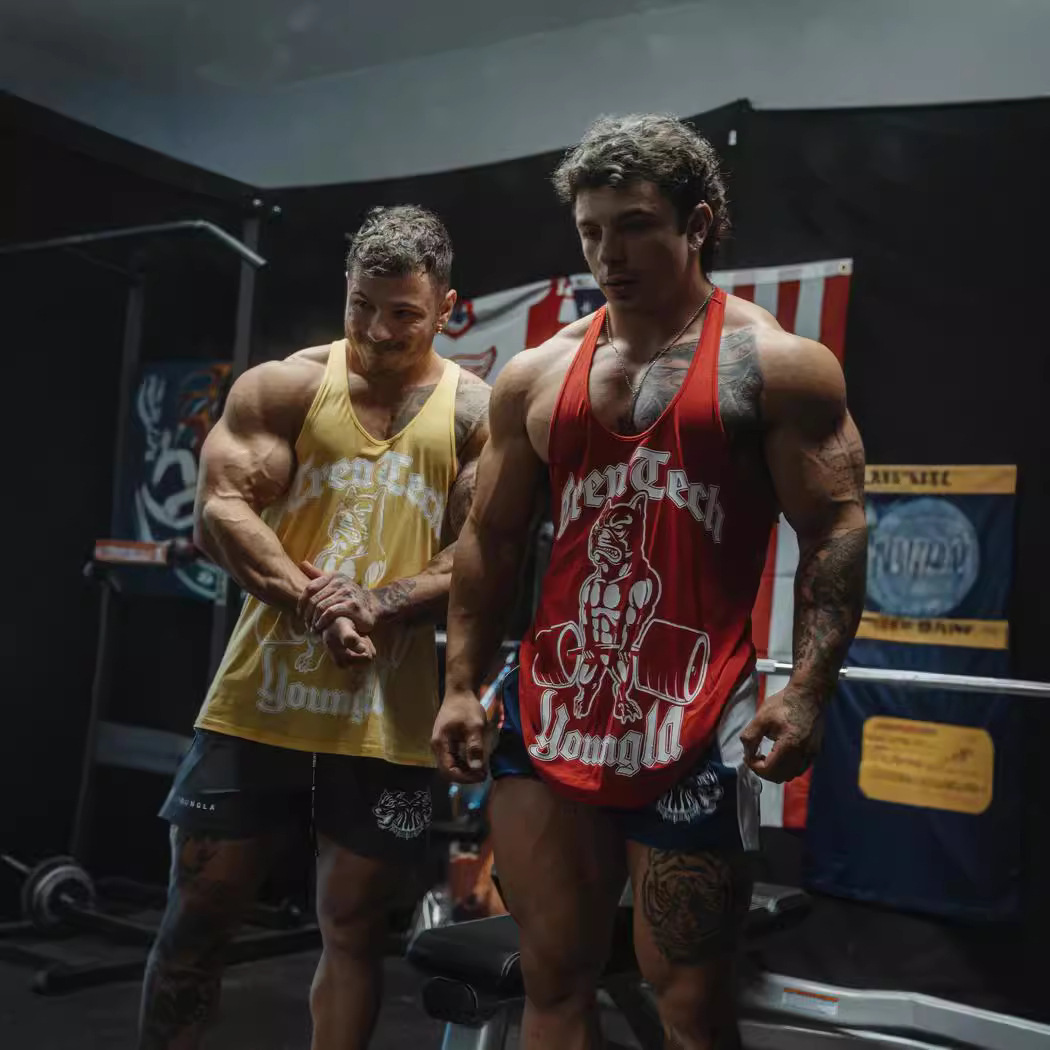 YOUNGLA 미국 뉴 남성 I 자형 조끼 스포츠 피트니스 허들 민소매 코튼 루즈 러닝 웨이스트 코트